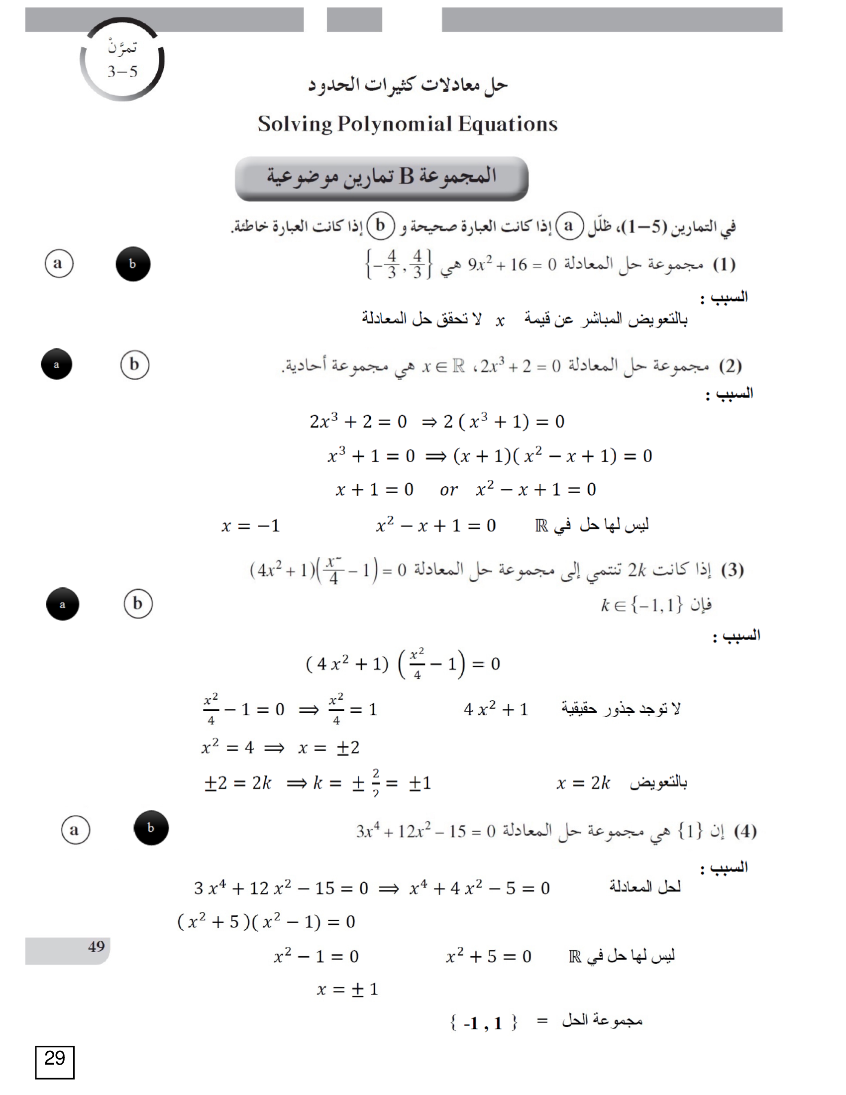 حل معادلات كثيرات الحدود