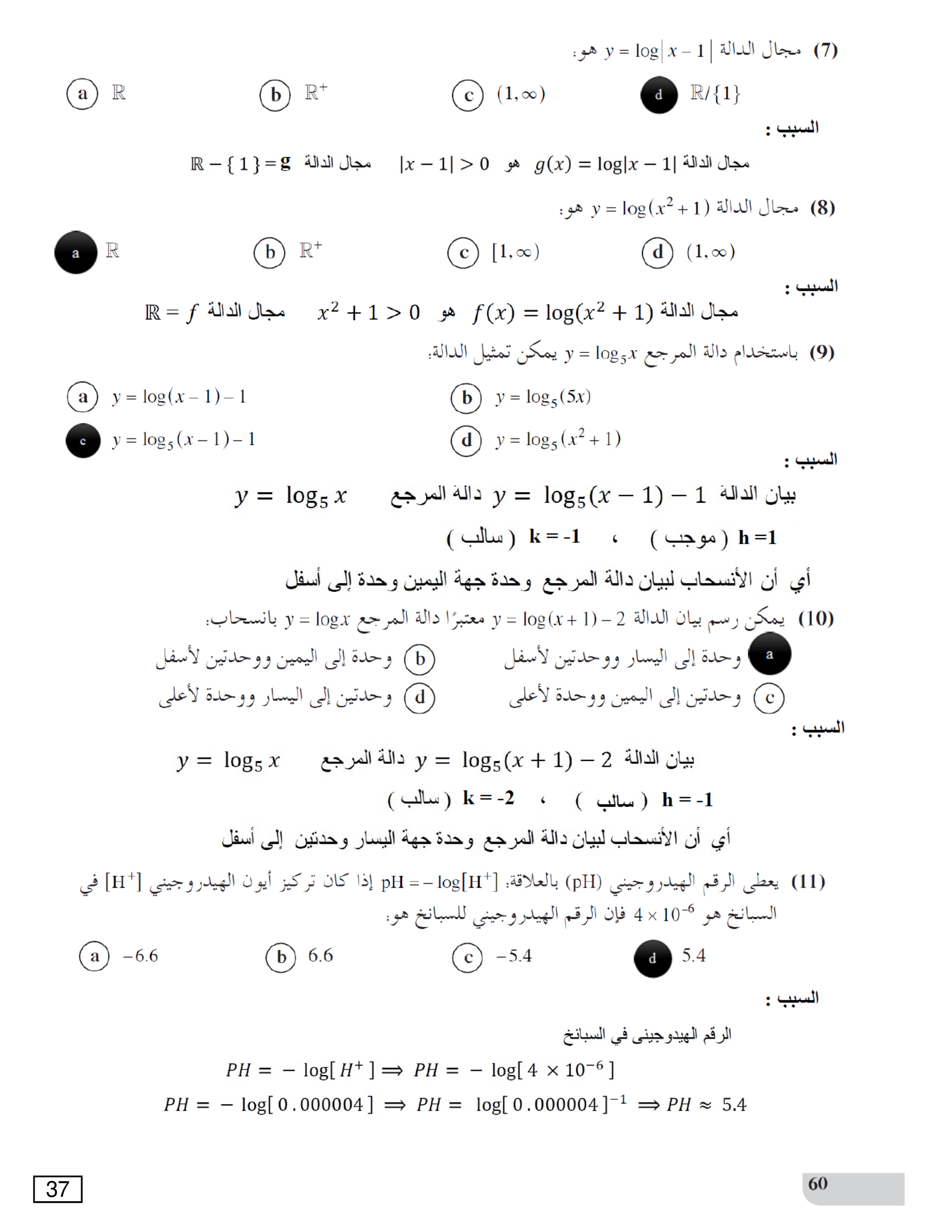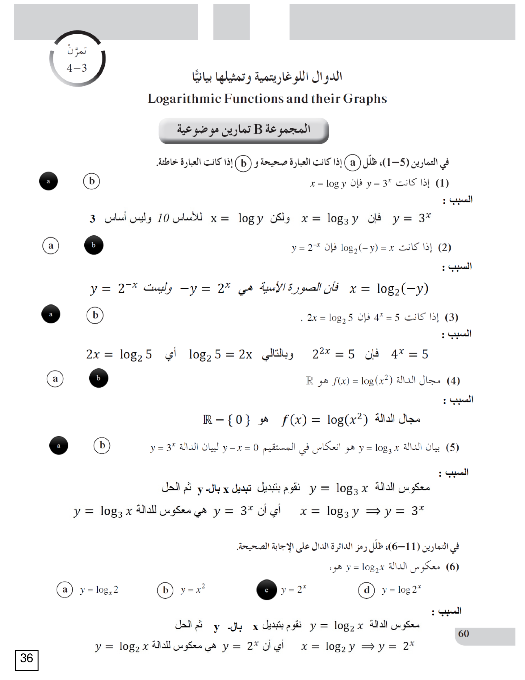 الدوال اللوغاريتمية وتمثيلها بيانياً