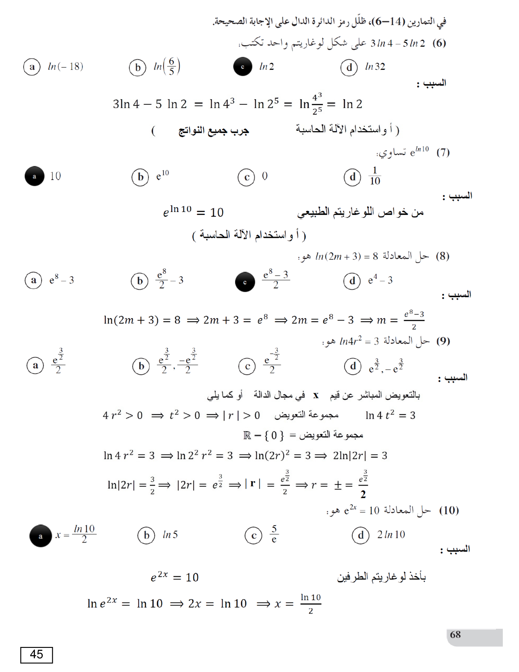 المعادلات الأسية واللوغاريتمية