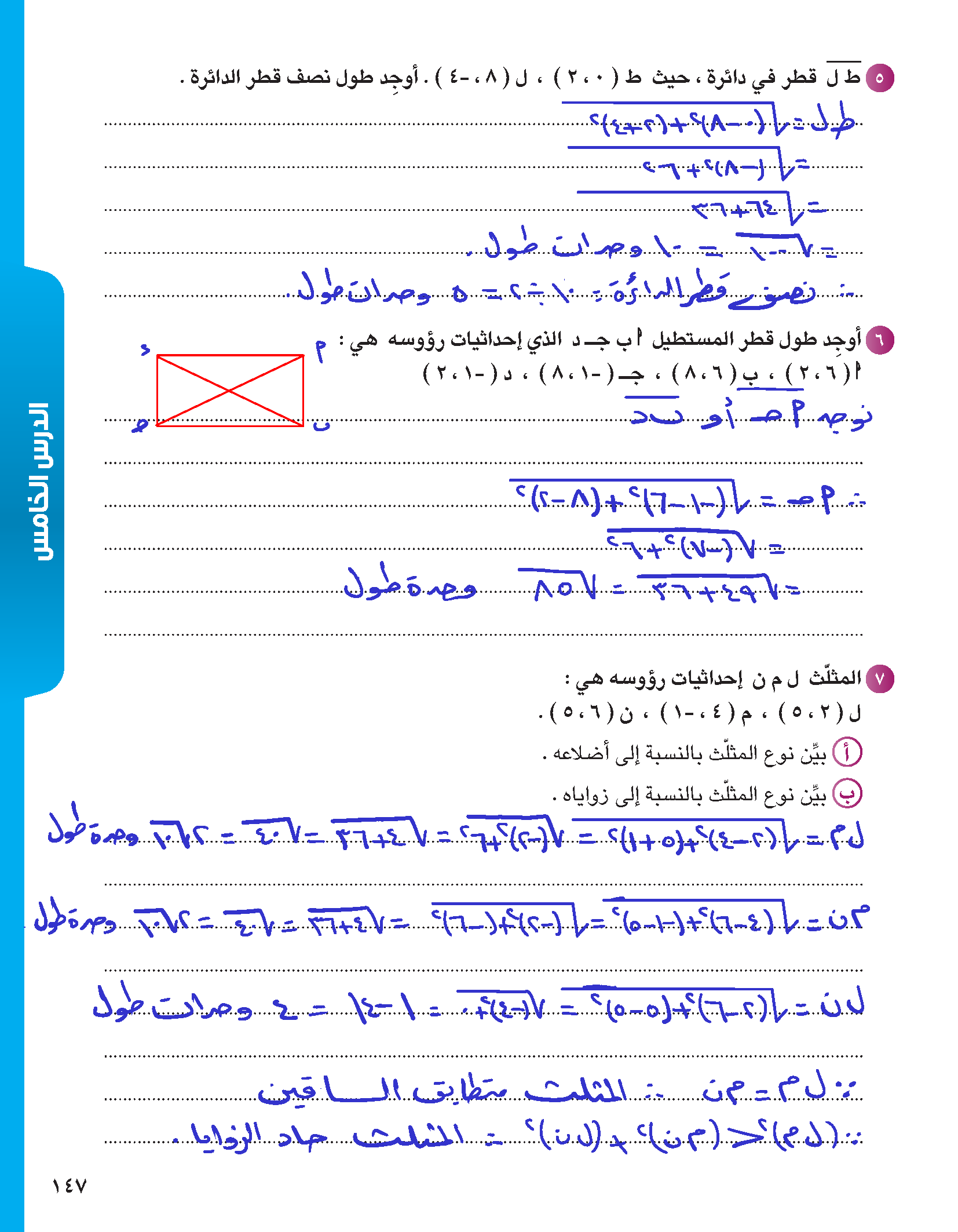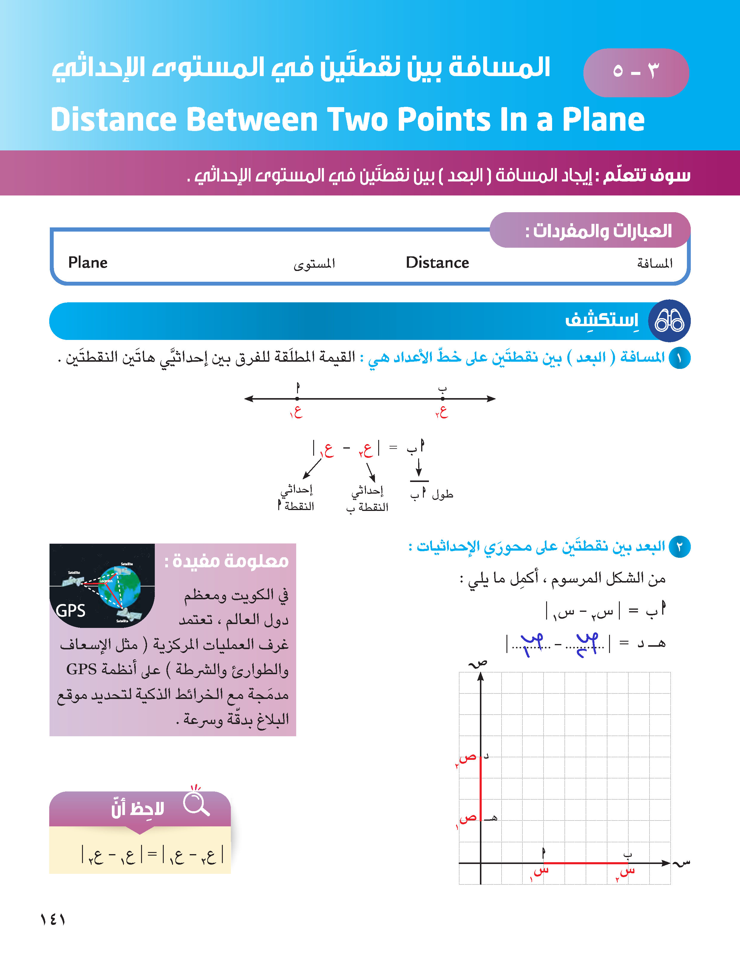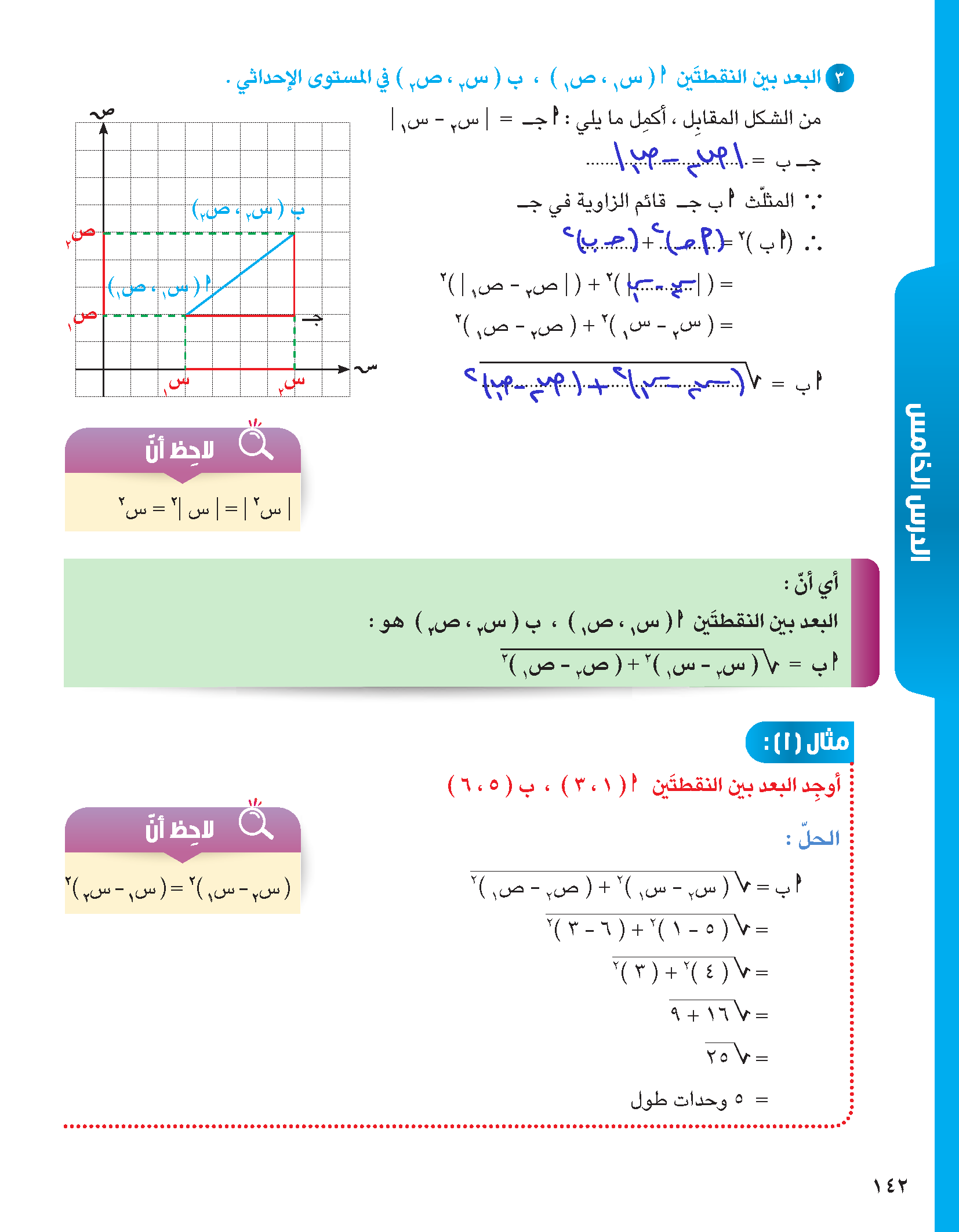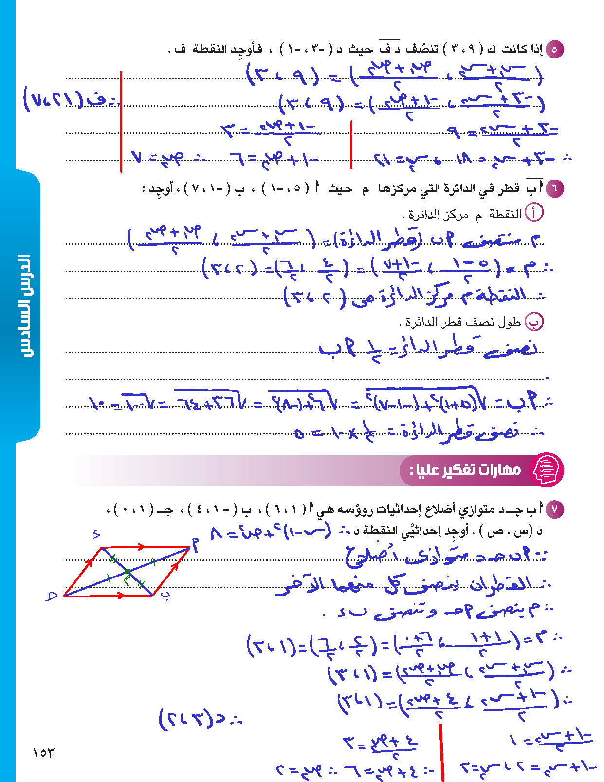 احداثيا نقطة منتصف قطعة مستقيمة في المستوى الاحداثي