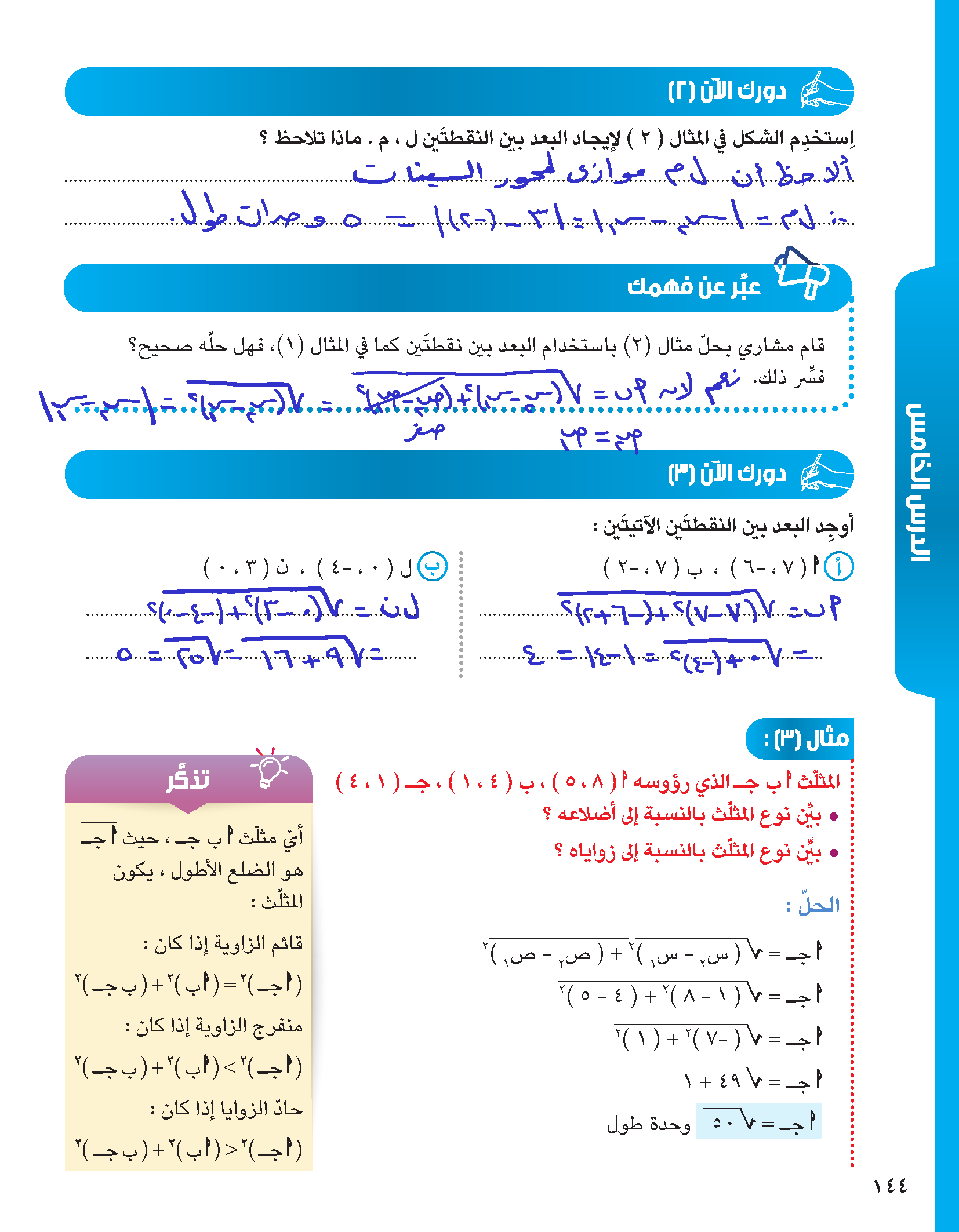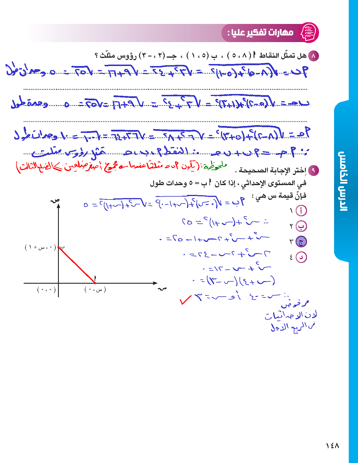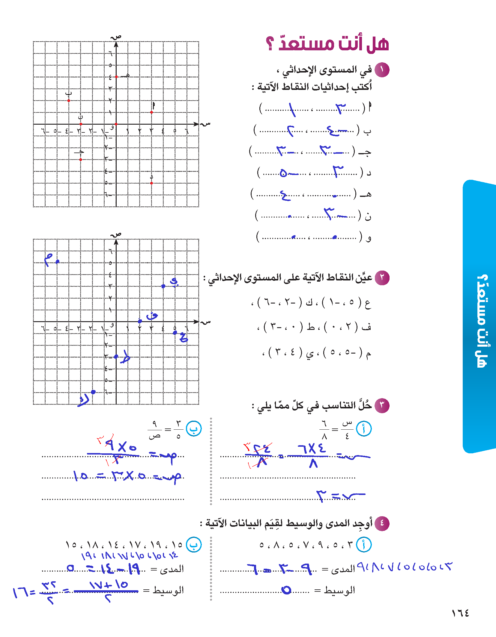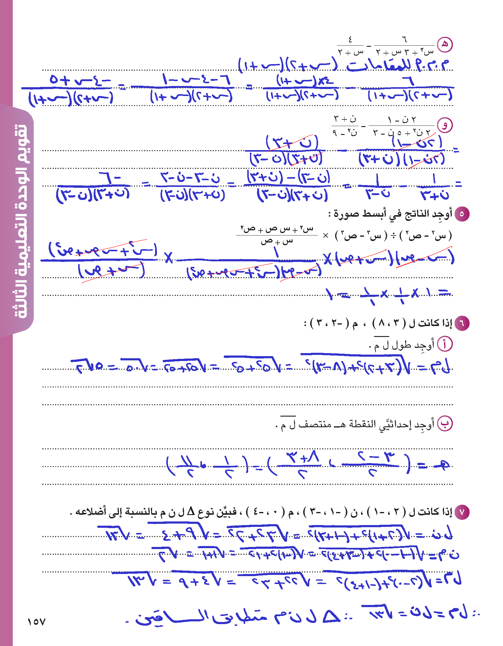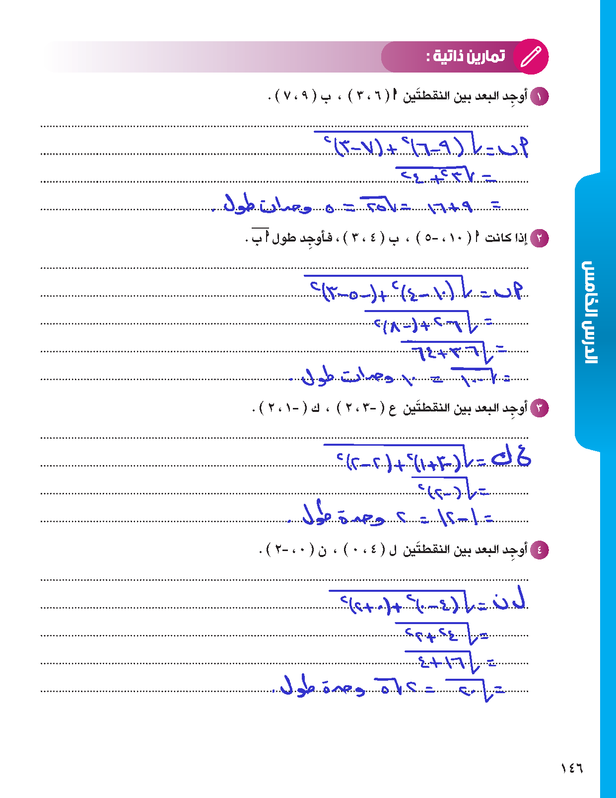احداثيا نقطة منتصف قطعة مستقيمة في المستوى الاحداثي