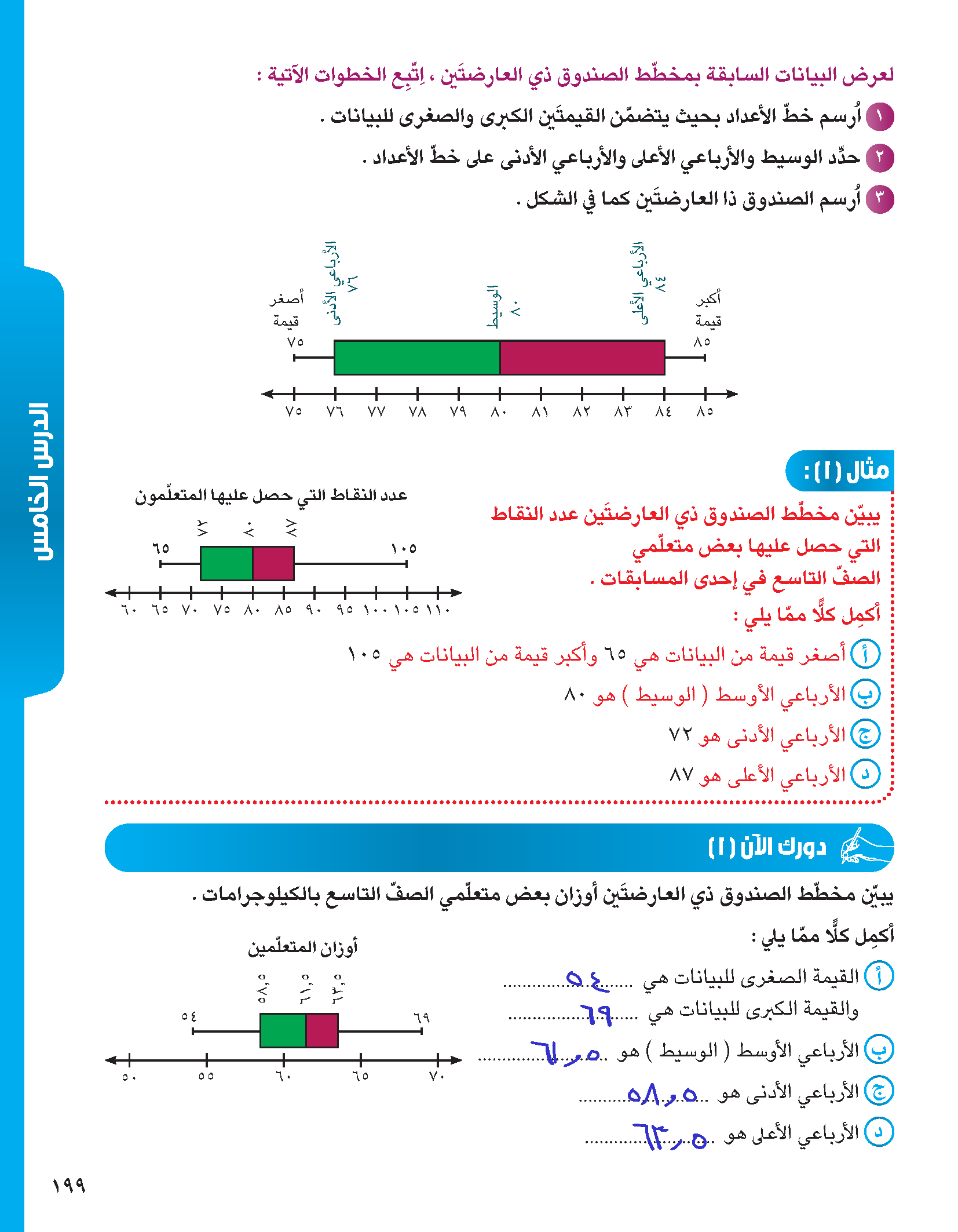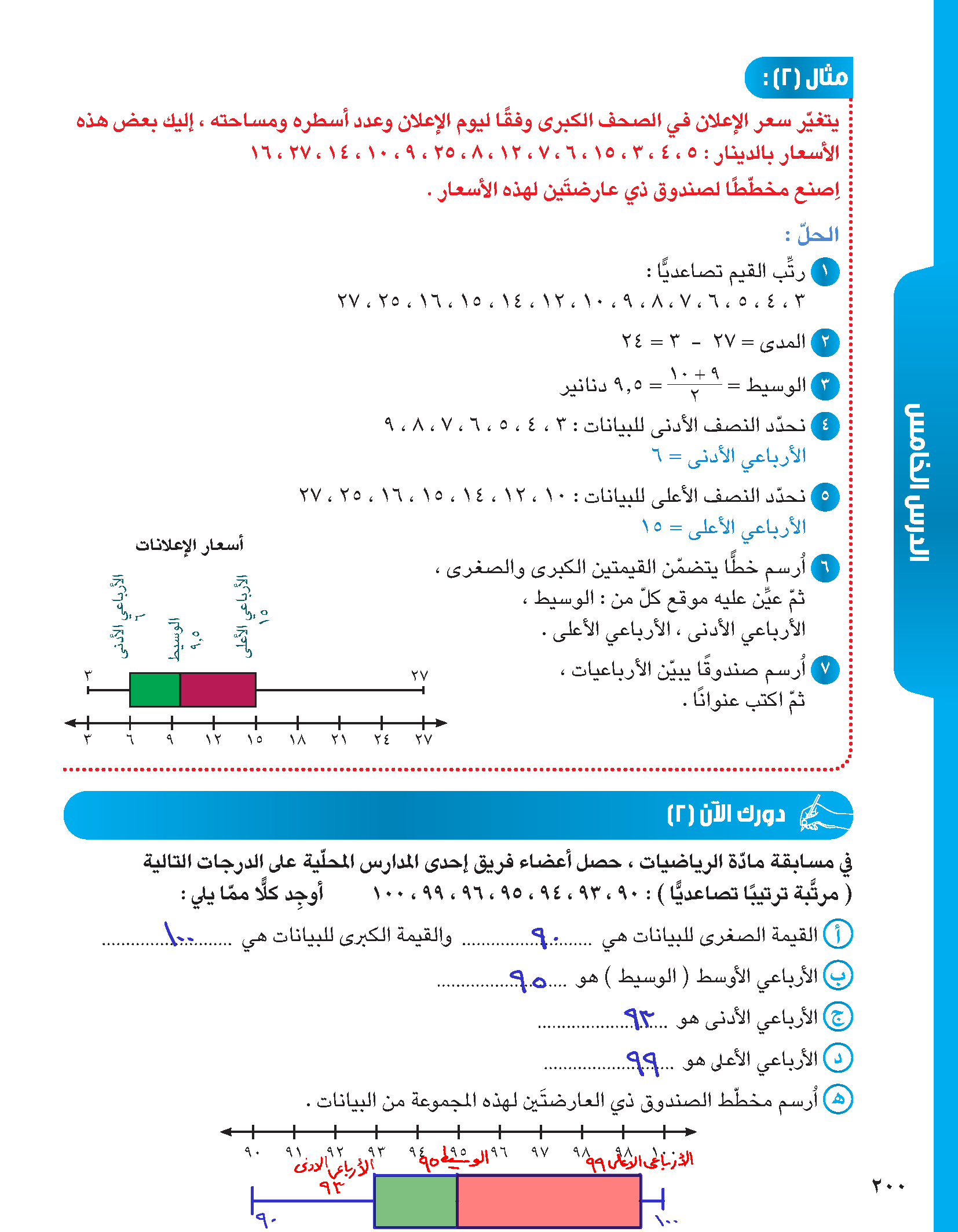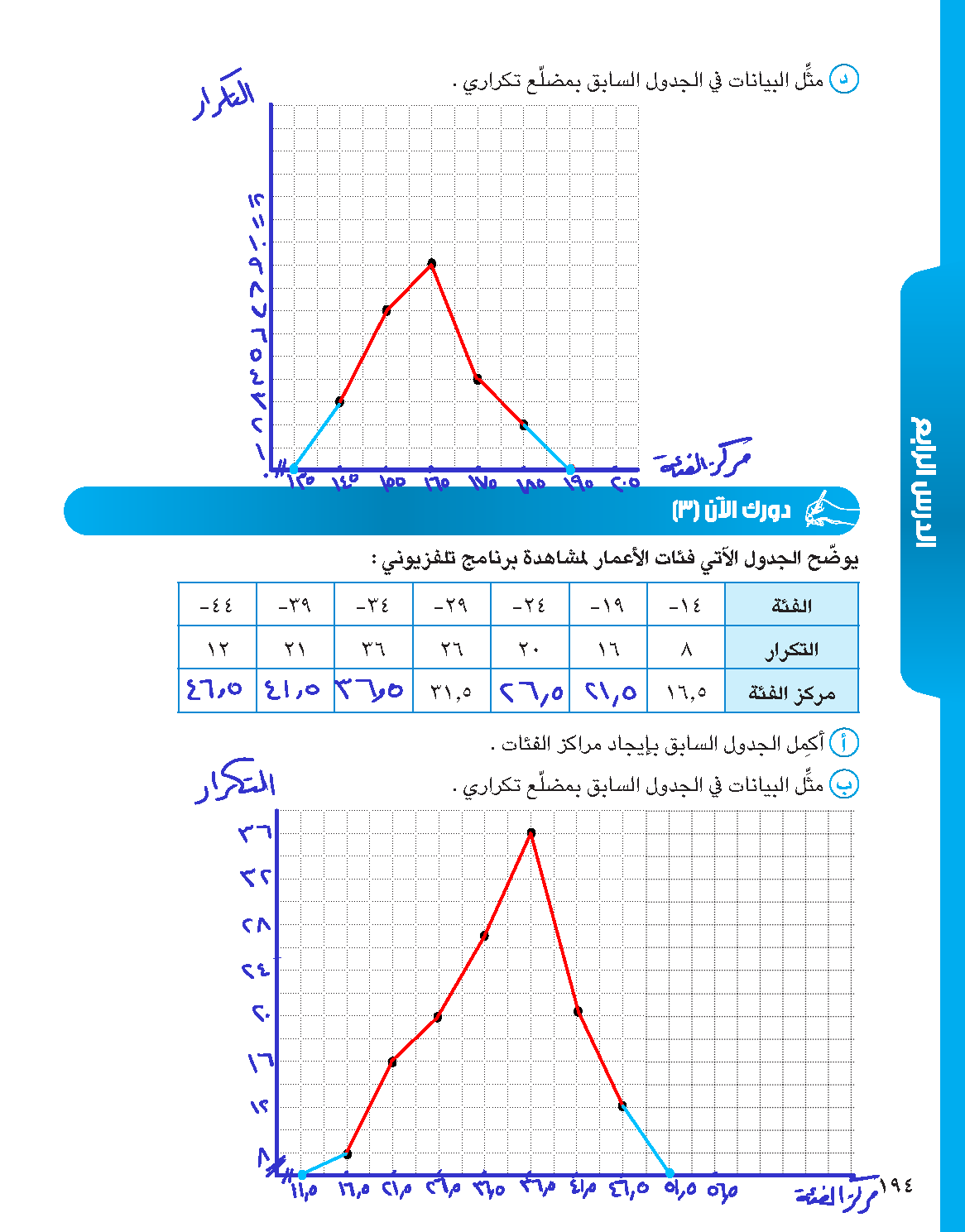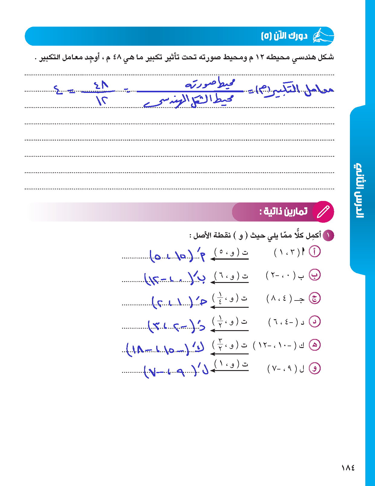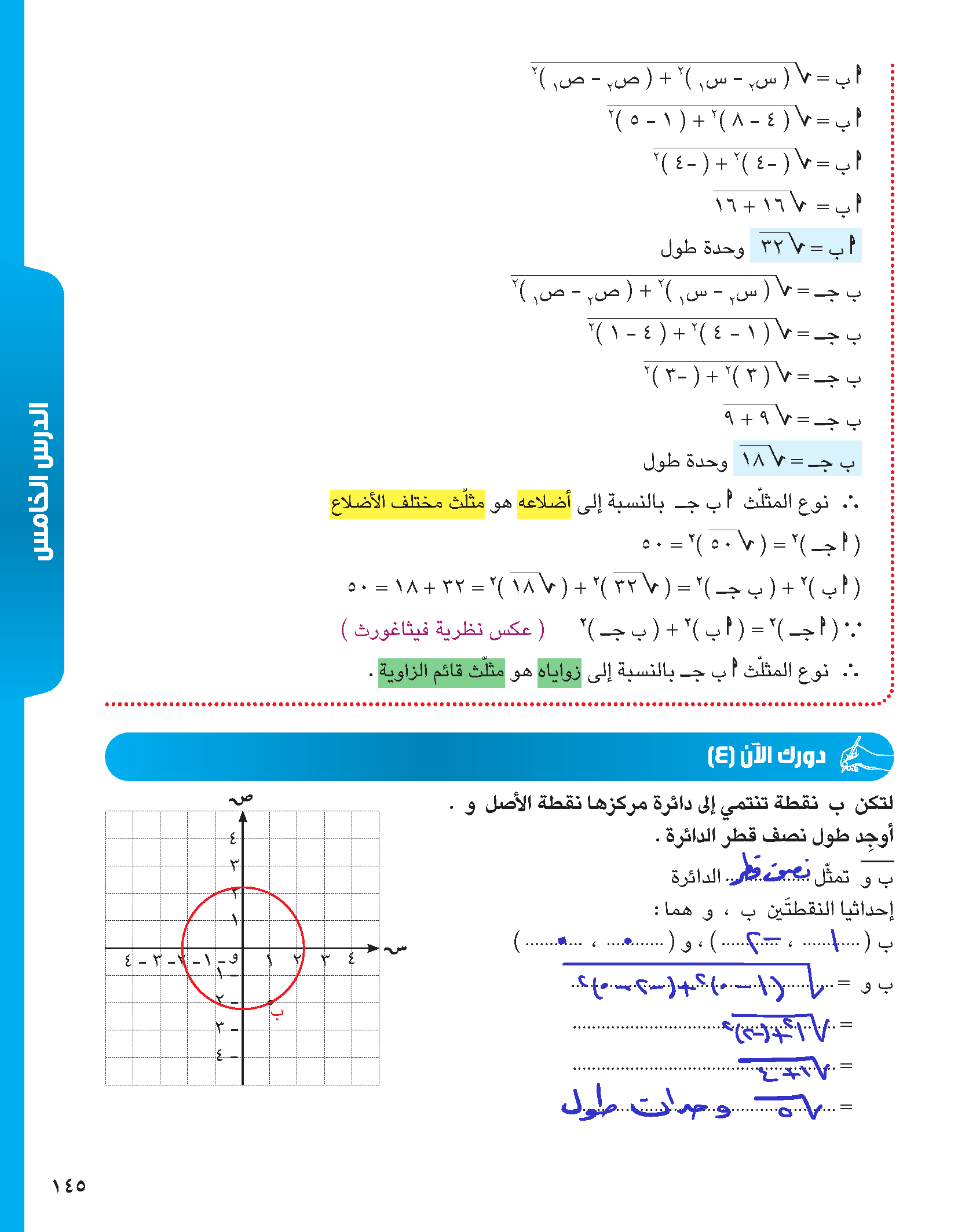 احداثيا نقطة منتصف قطعة مستقيمة في المستوى الاحداثي