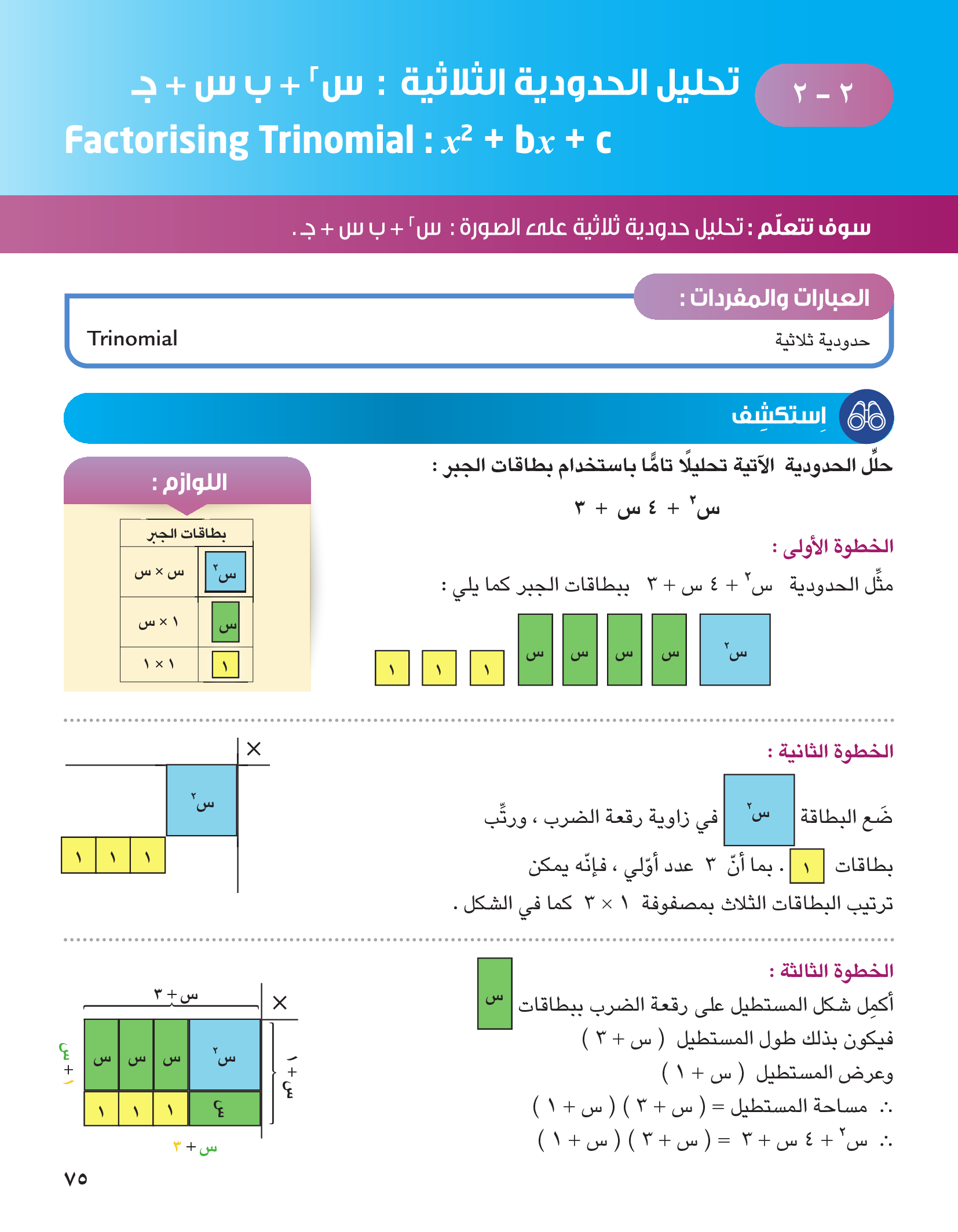 تحليل الحدودية الثلاثية: س2 + ب س + جـ