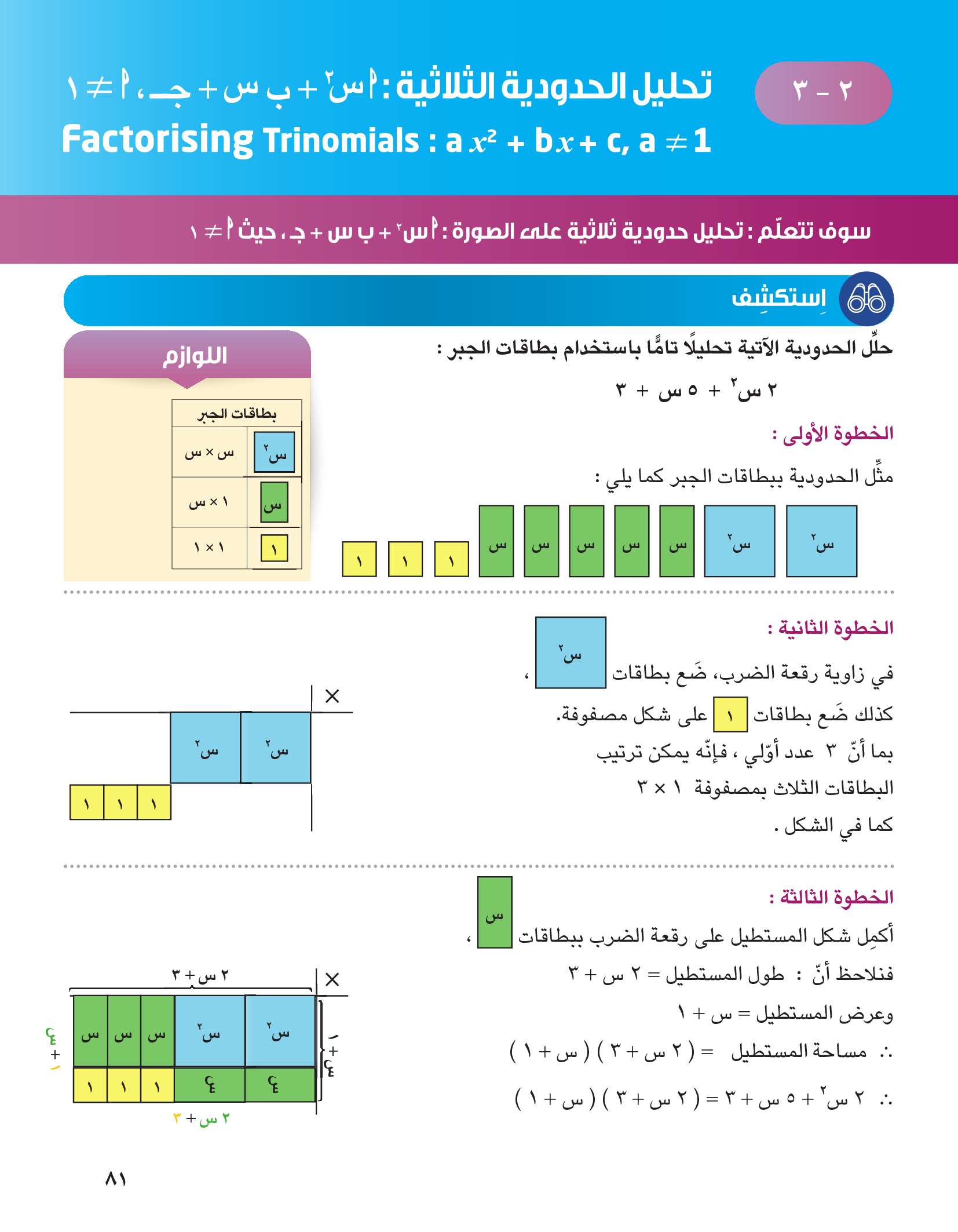 تحليل الحدودية الثلاثية: أ س2 + ب س + جـ ، أ ≠ 1