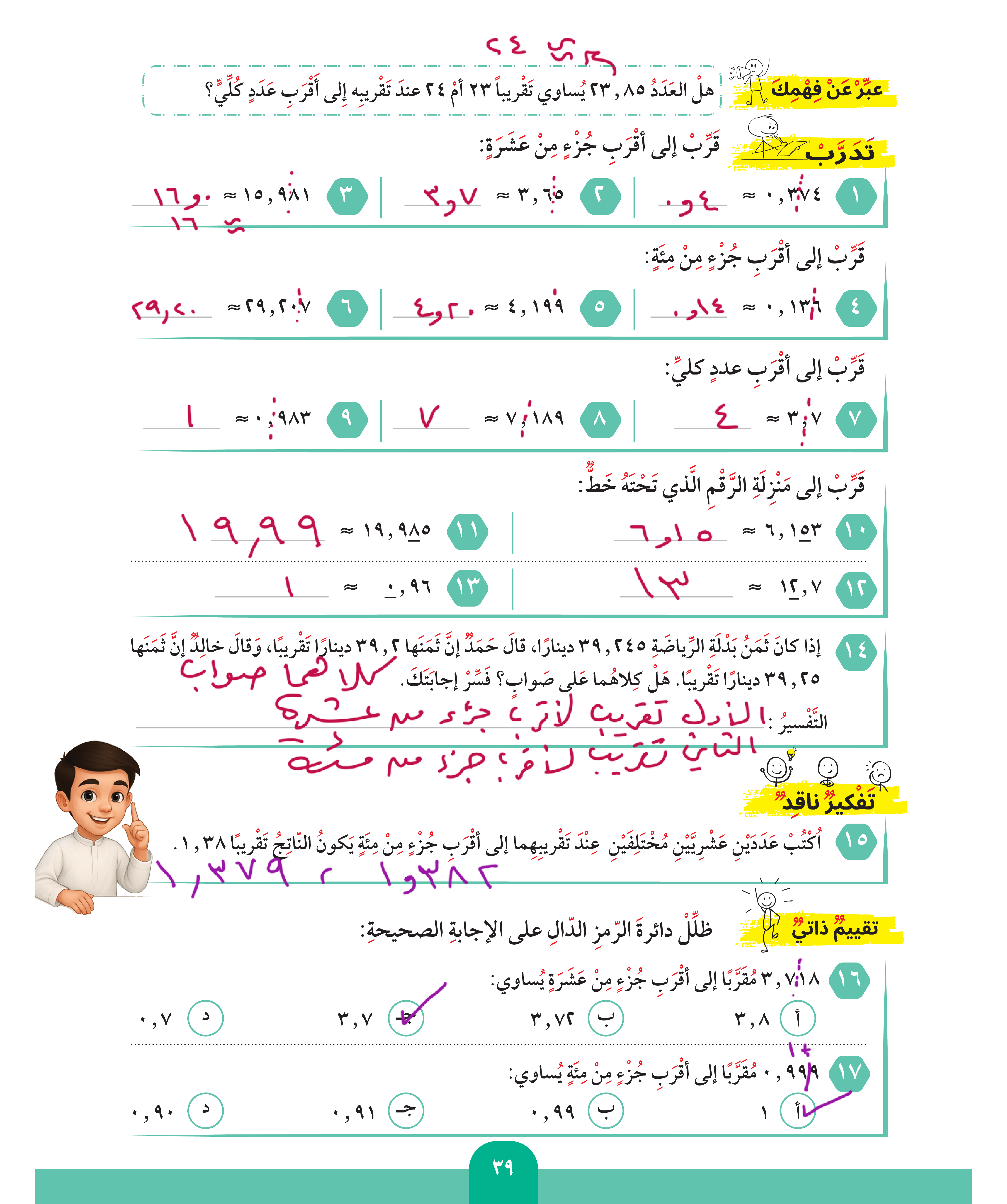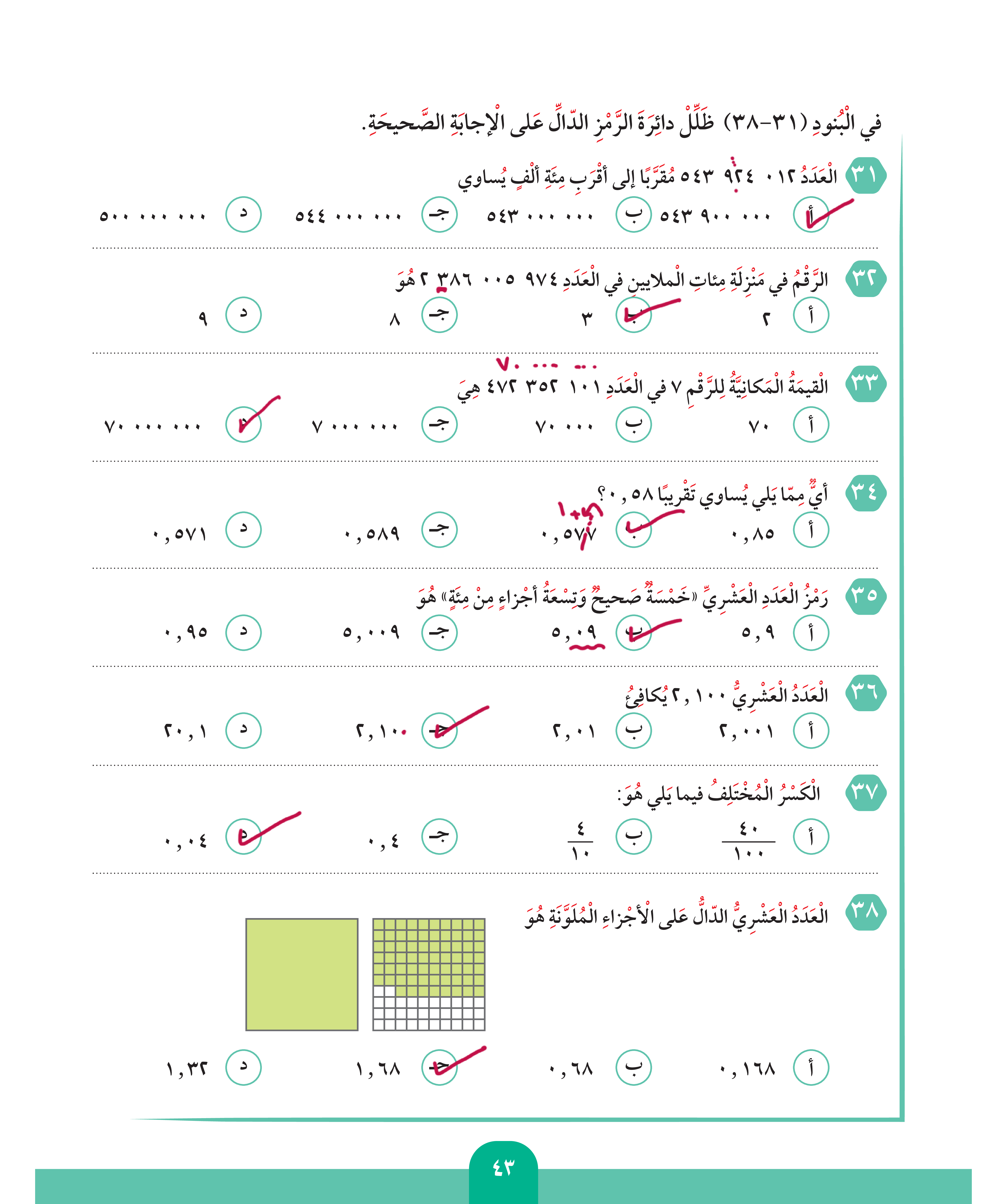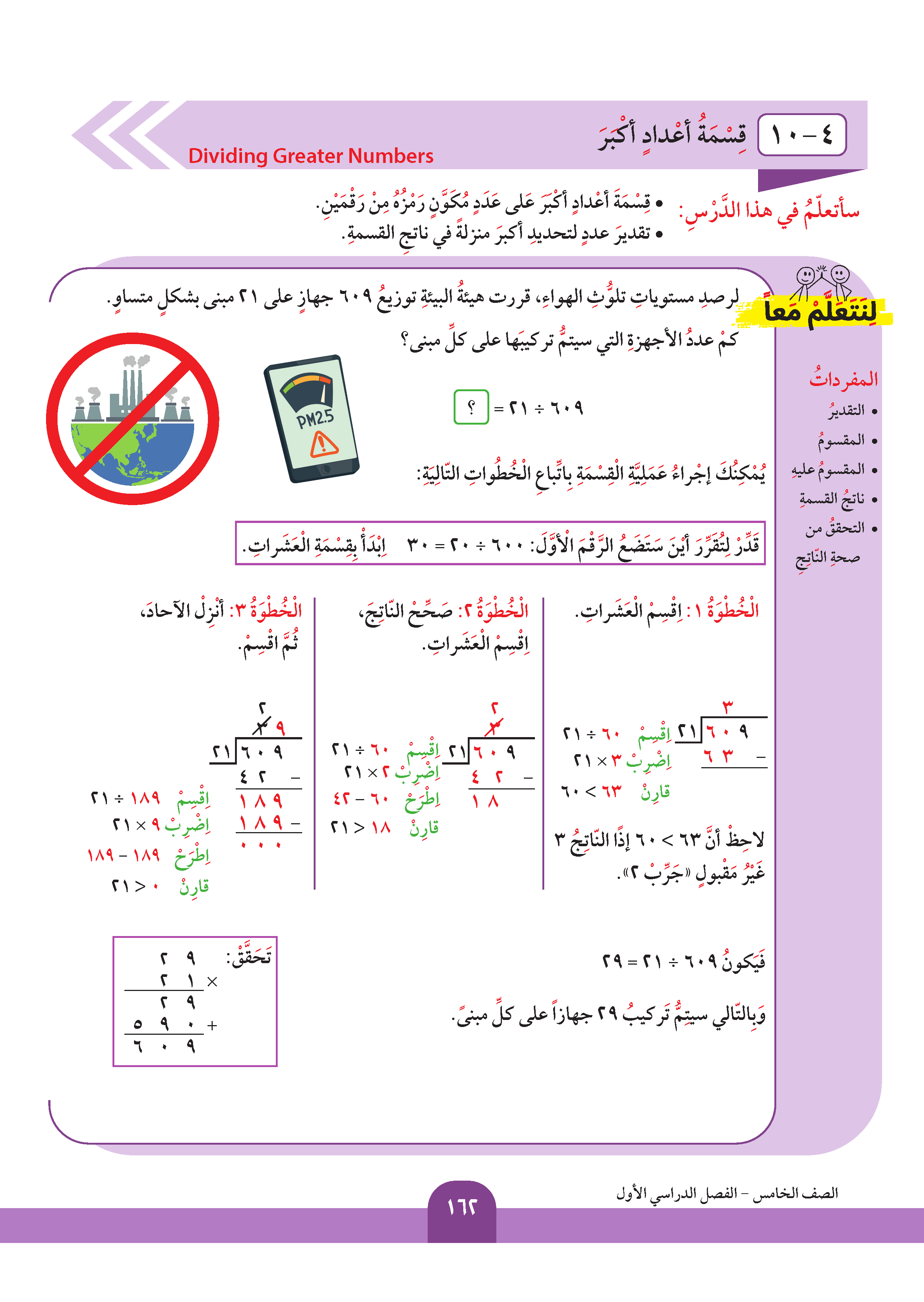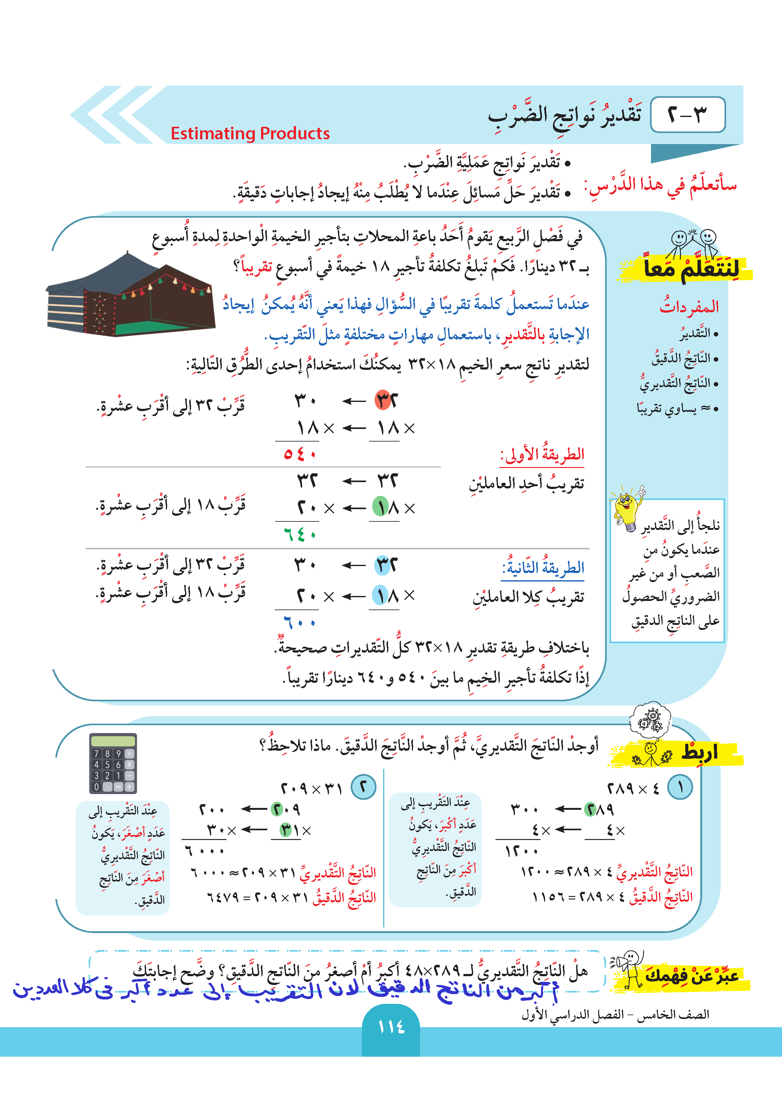 تقدير ناتج قسمة عدد على آخر مكون رمزه من رقمين