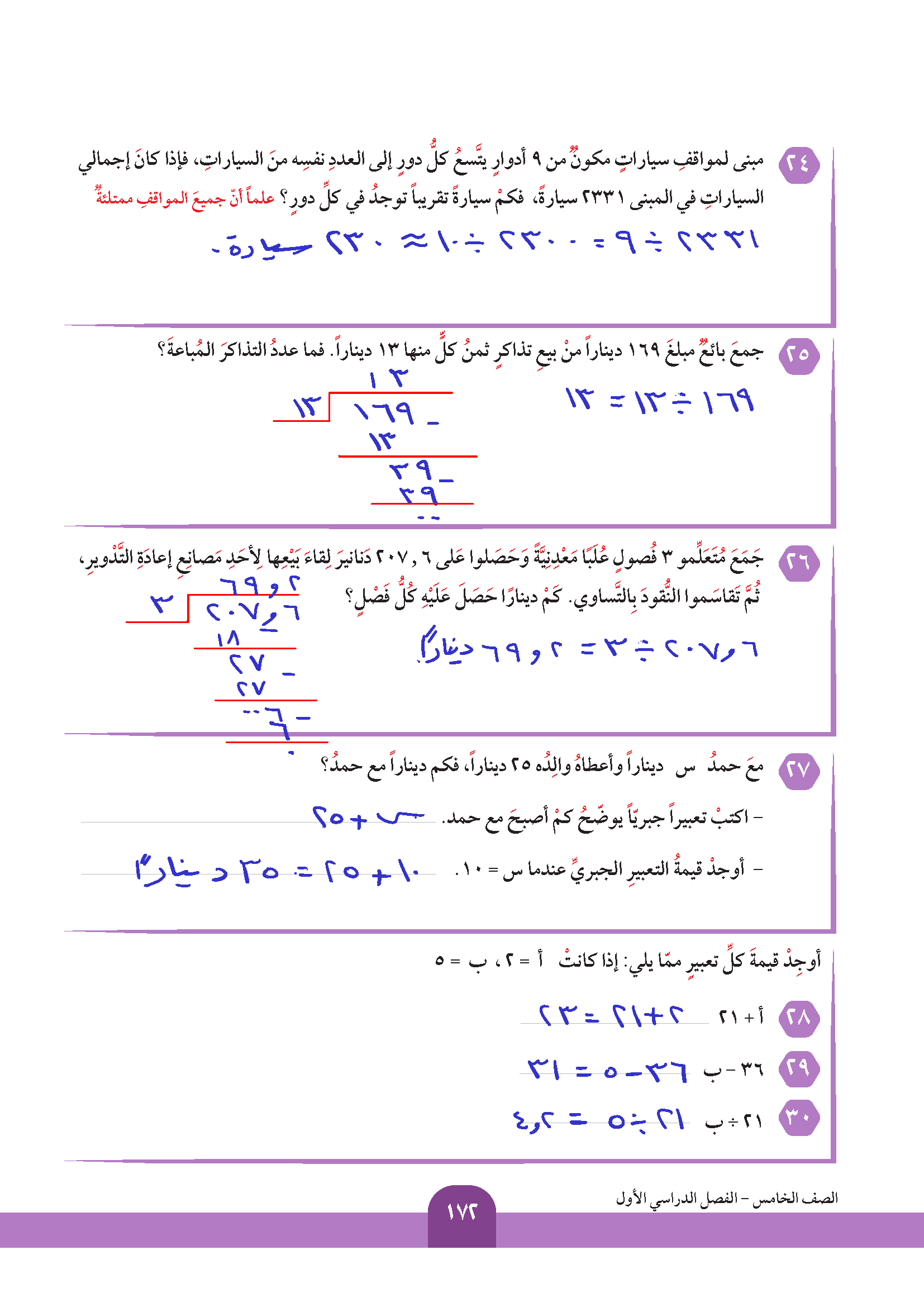 تقدير ناتج قسمة عدد على آخر مكون رمزه من رقم واحد