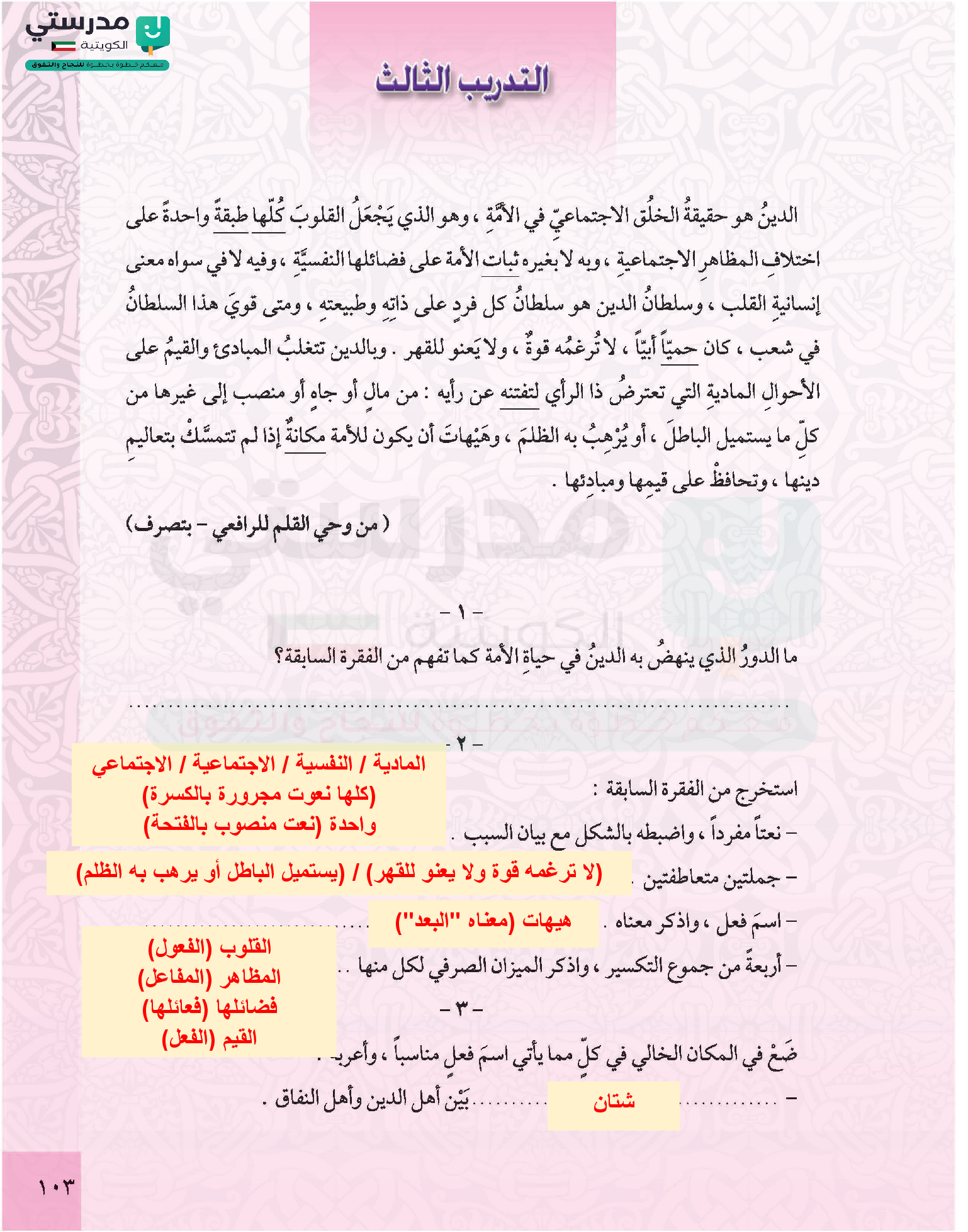 التدريب الثالث