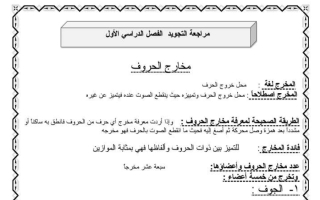 مذكرة تجويد القرآن الكريم للصف الحادي عشر الفصل الأول