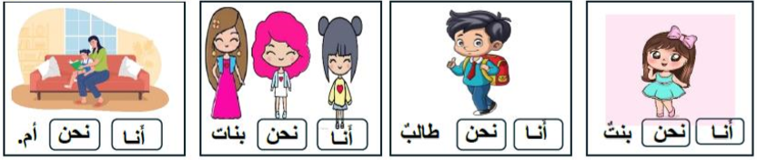 - أُحِبُّ مُعَلَمَتان - تُساعِدُ - مُعَلمةٌ - طَبِيبٌ - نَعْمَلُ نَلْعَبُ