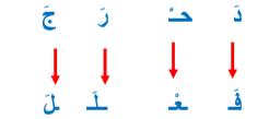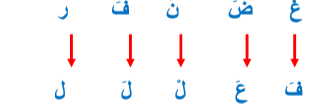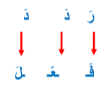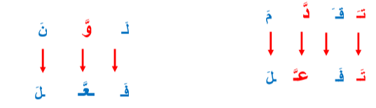 - القاء تقابل الحرف الأول من الكلمة الأصلية، والعين تقابل الحرف الثاني ، واللام
