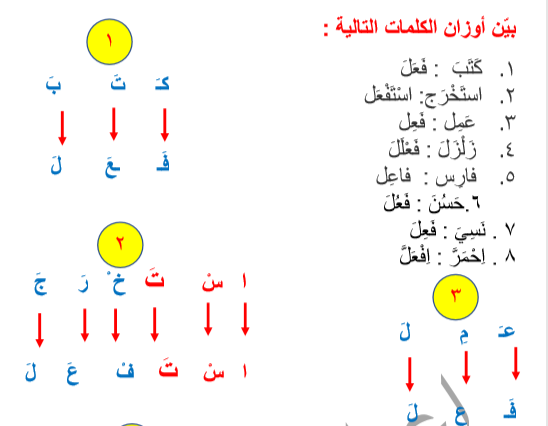 تعلم الميزان الصرفي في الخطوات الآتية :
