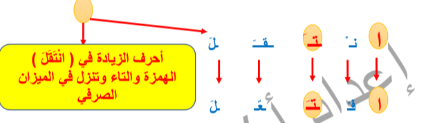 إذا كانت الزيادة ناشئة من زيادة أي حرف يُزاد هذا الحرف في الميزان في نفس مكانه، وذلك على نحو :" انتقل"، فإنّ وزنها الصرفي هو : " افْتَعَل"، لأن أصله الثلاثي "نقل".