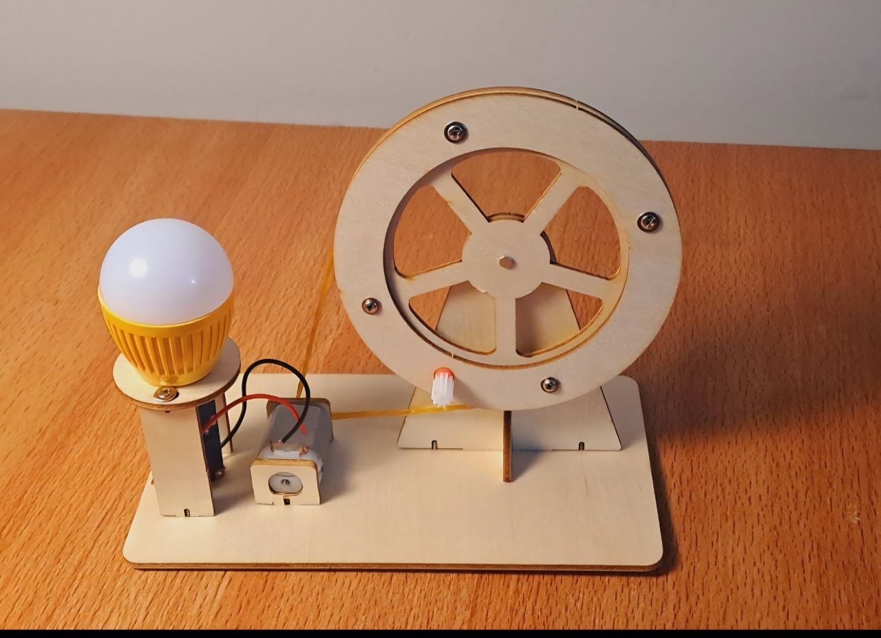 الفرضية: تحريك مولد صغير ينتج كهرباء.