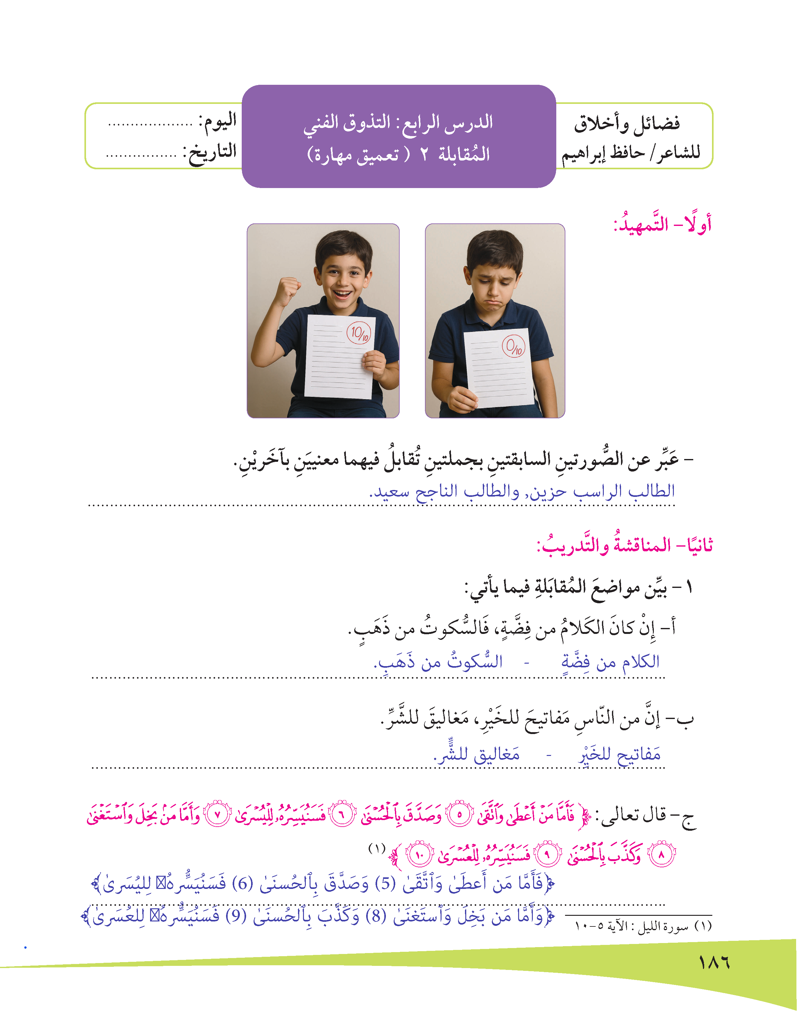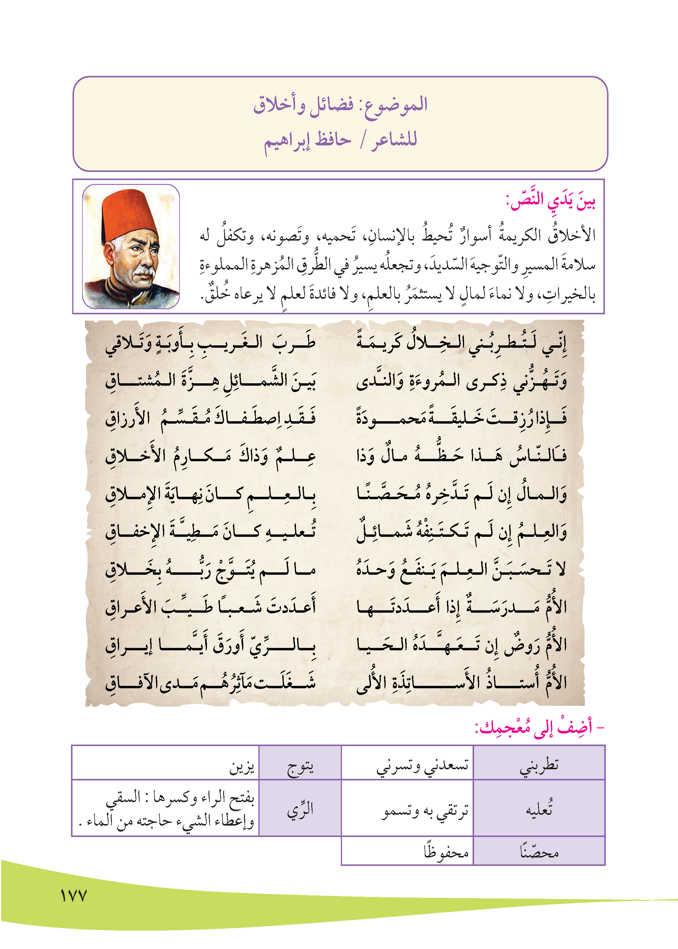 فضائل وأخلاق للشاعر / حافظ ابراهيم