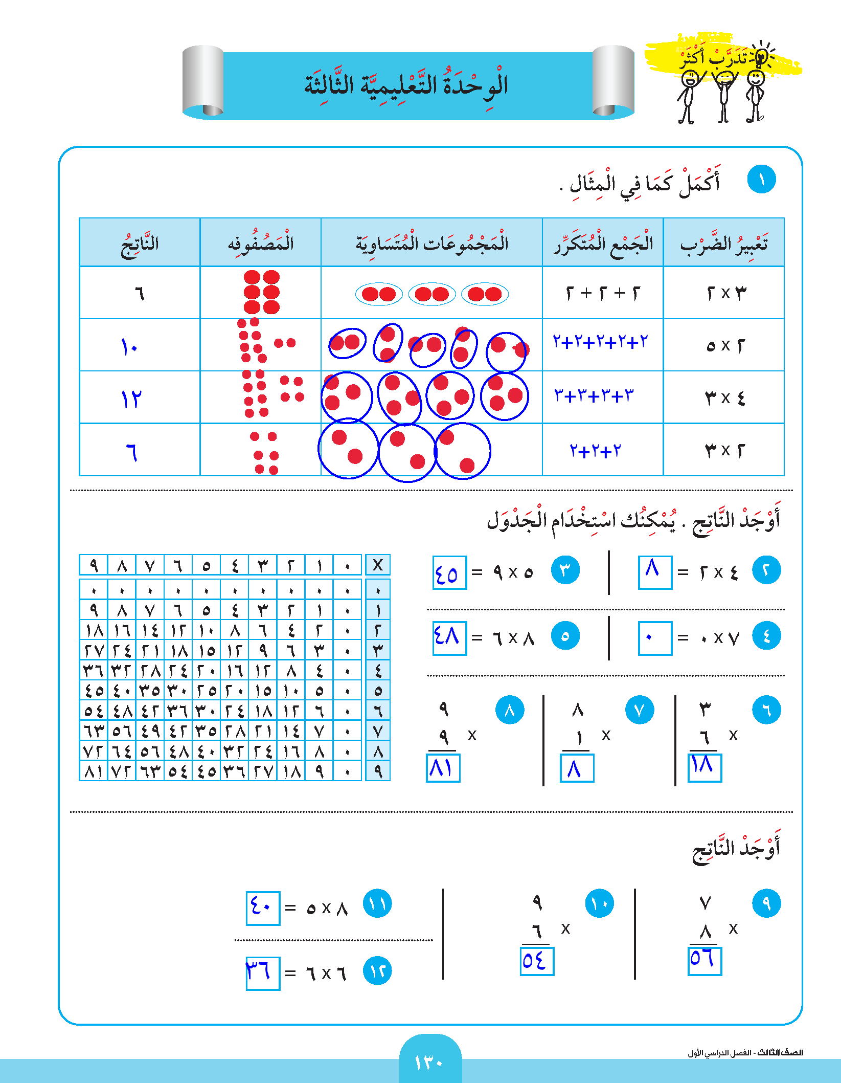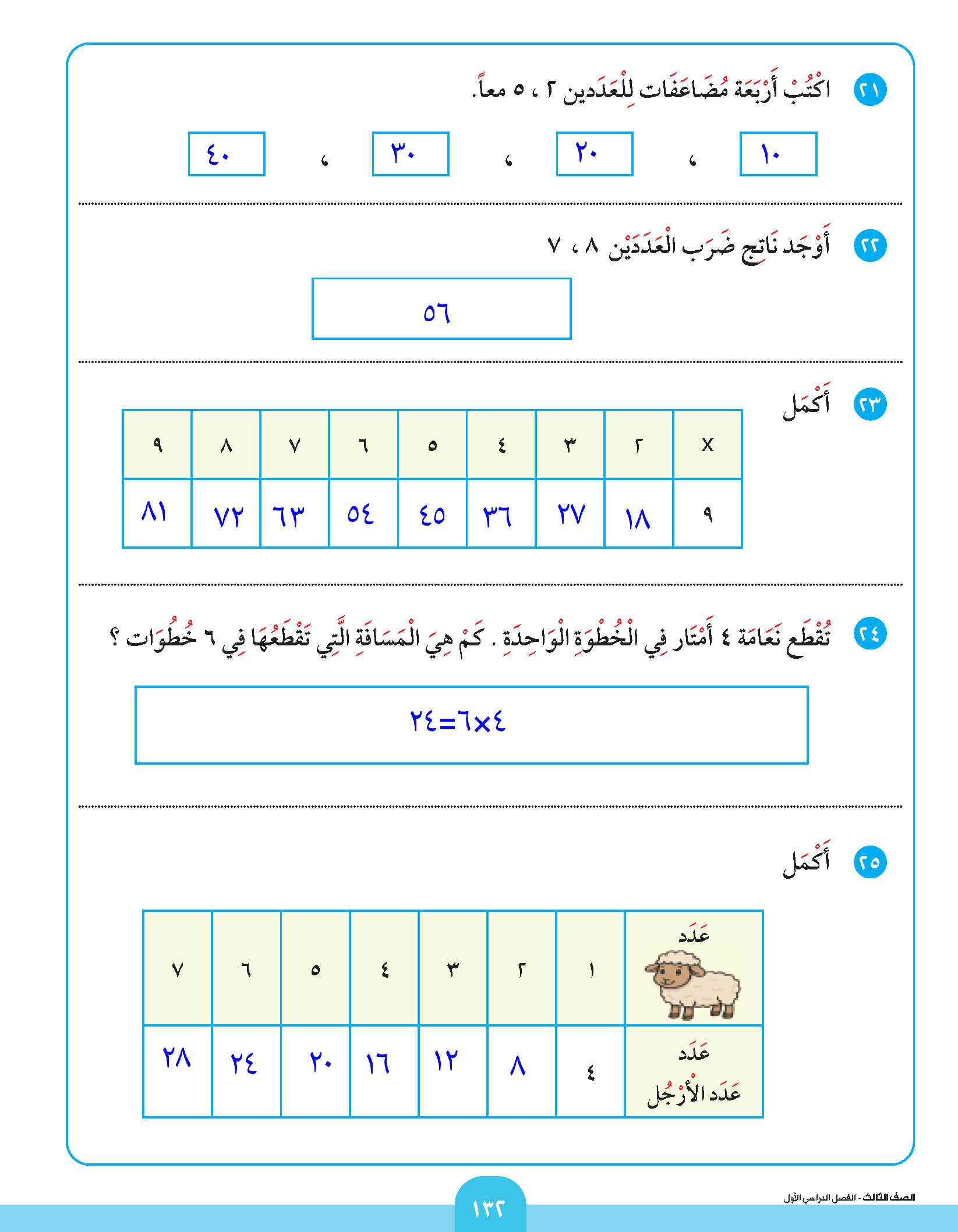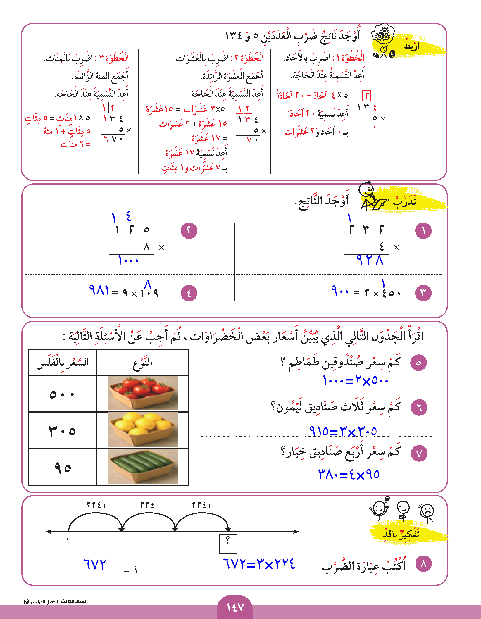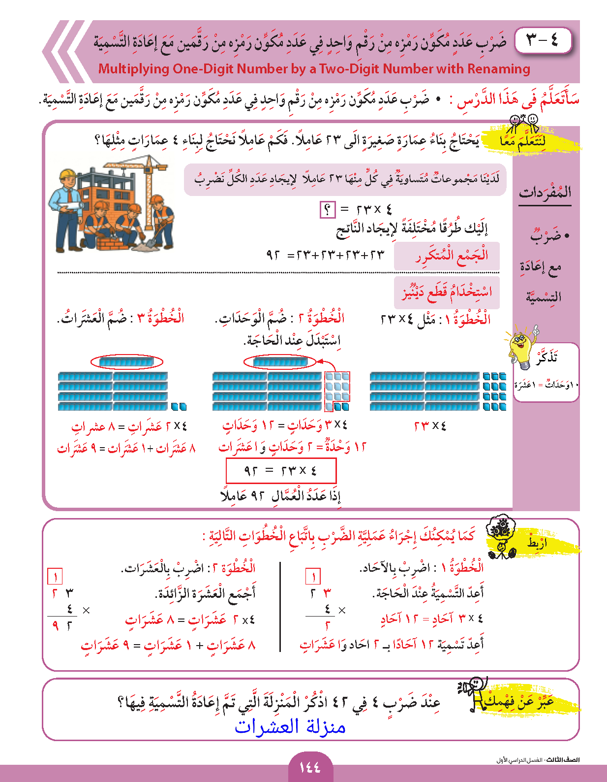ضرب عدد مكون رمزه من رقم واحد في عدد مكون رمزه من رقمين مع اعادة التسمية