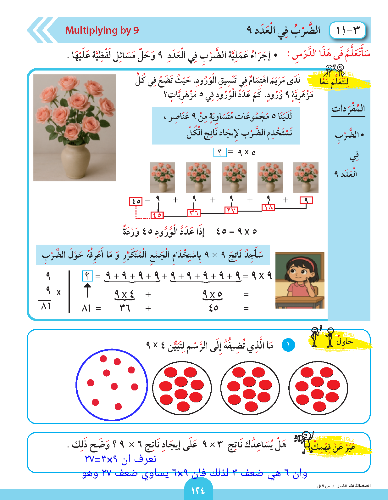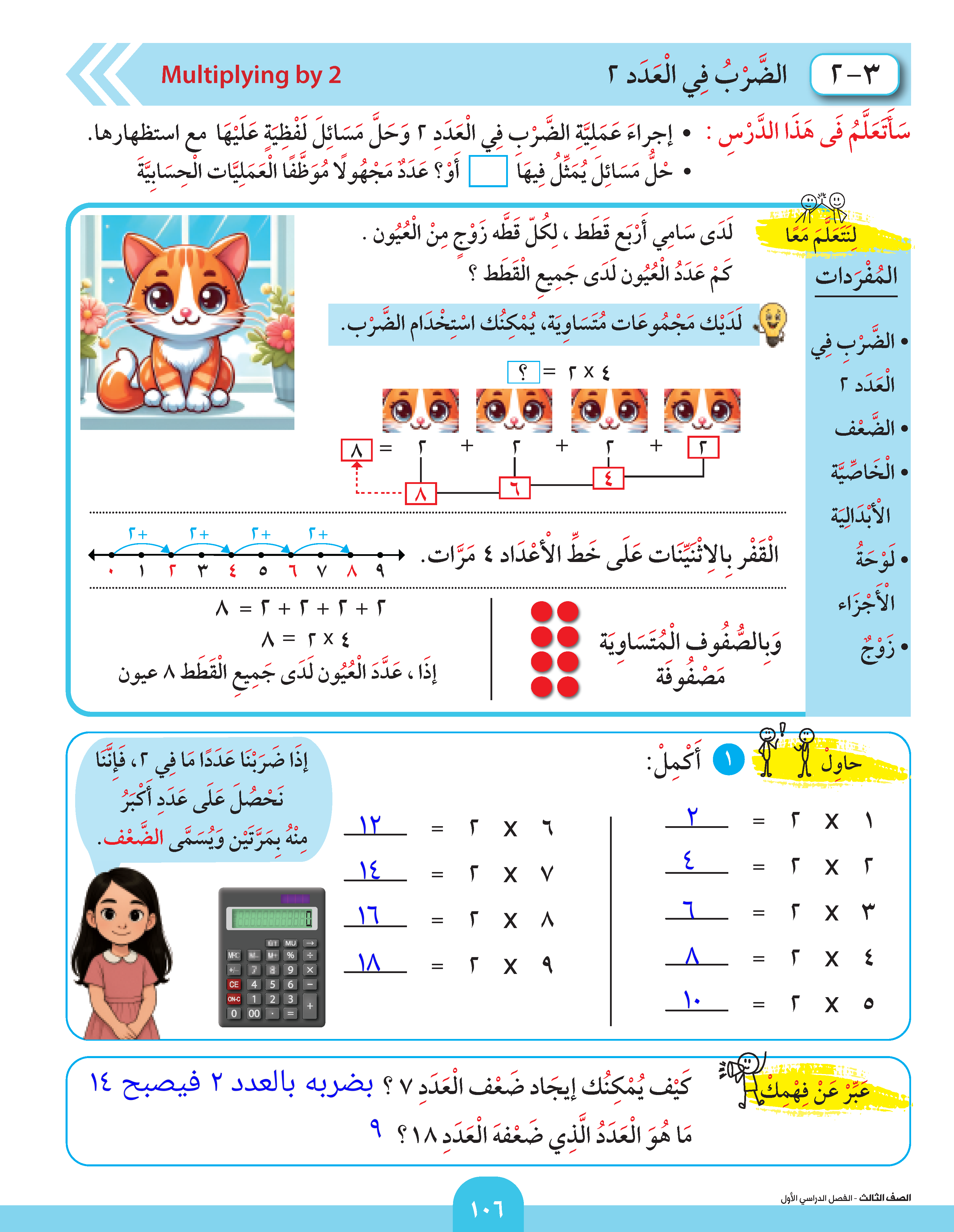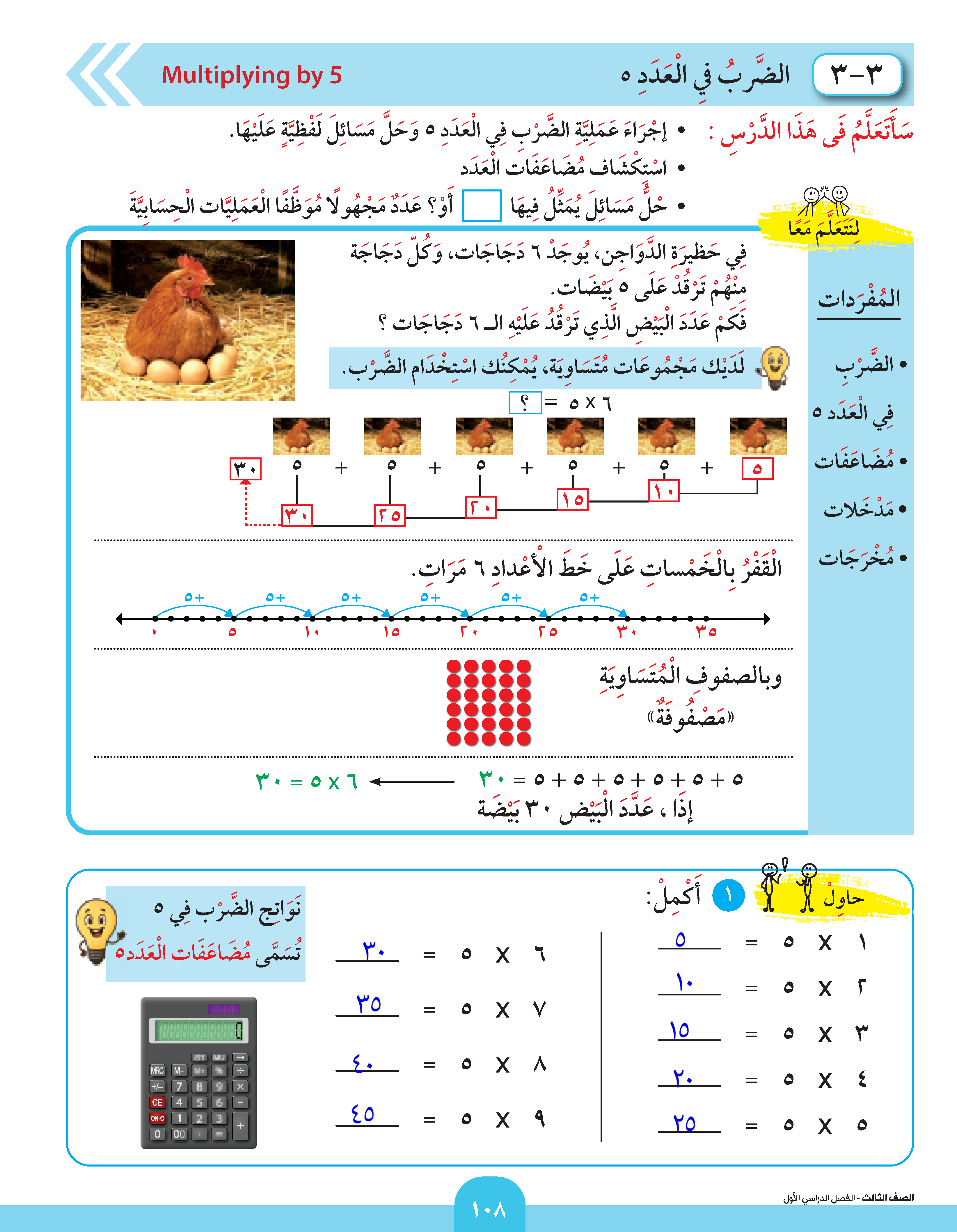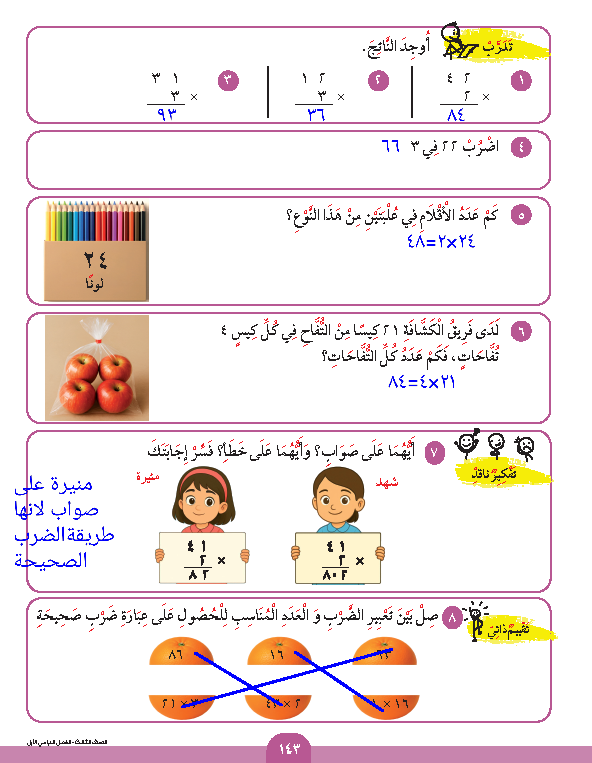 ضرب عدد مكون رمزه من رقم واحد في عدد مكون رمزه من رقمين مع اعادة التسمية