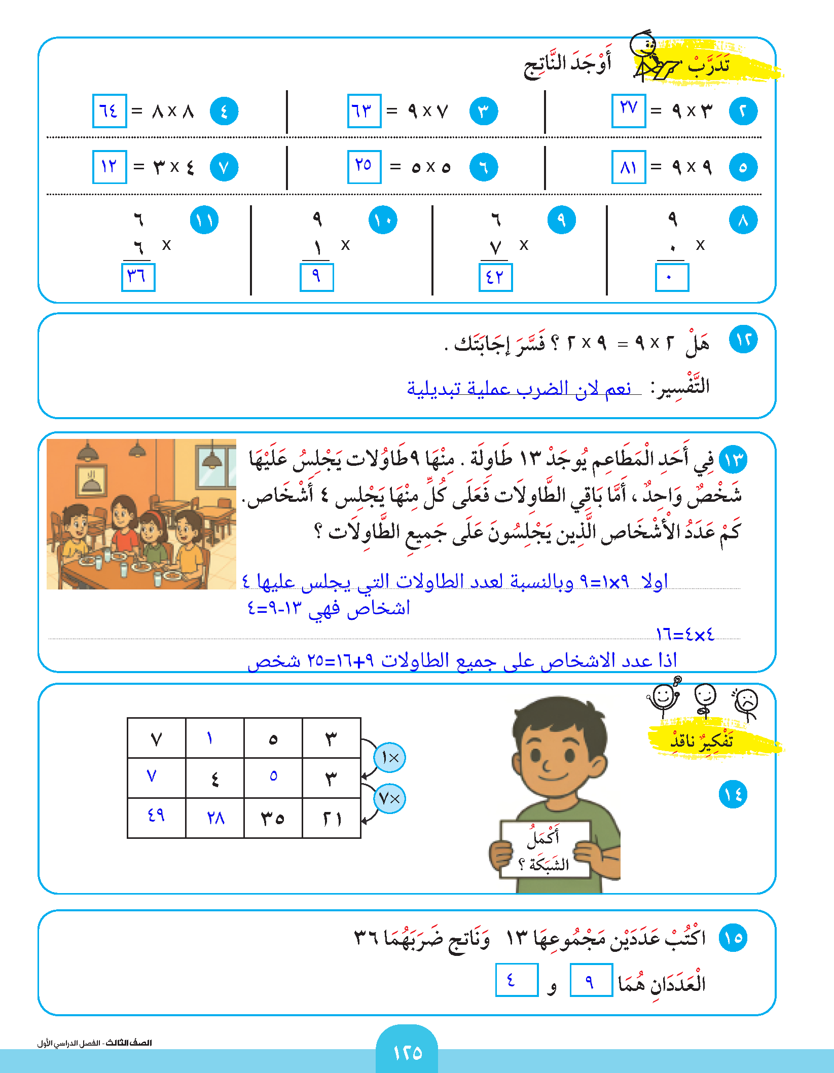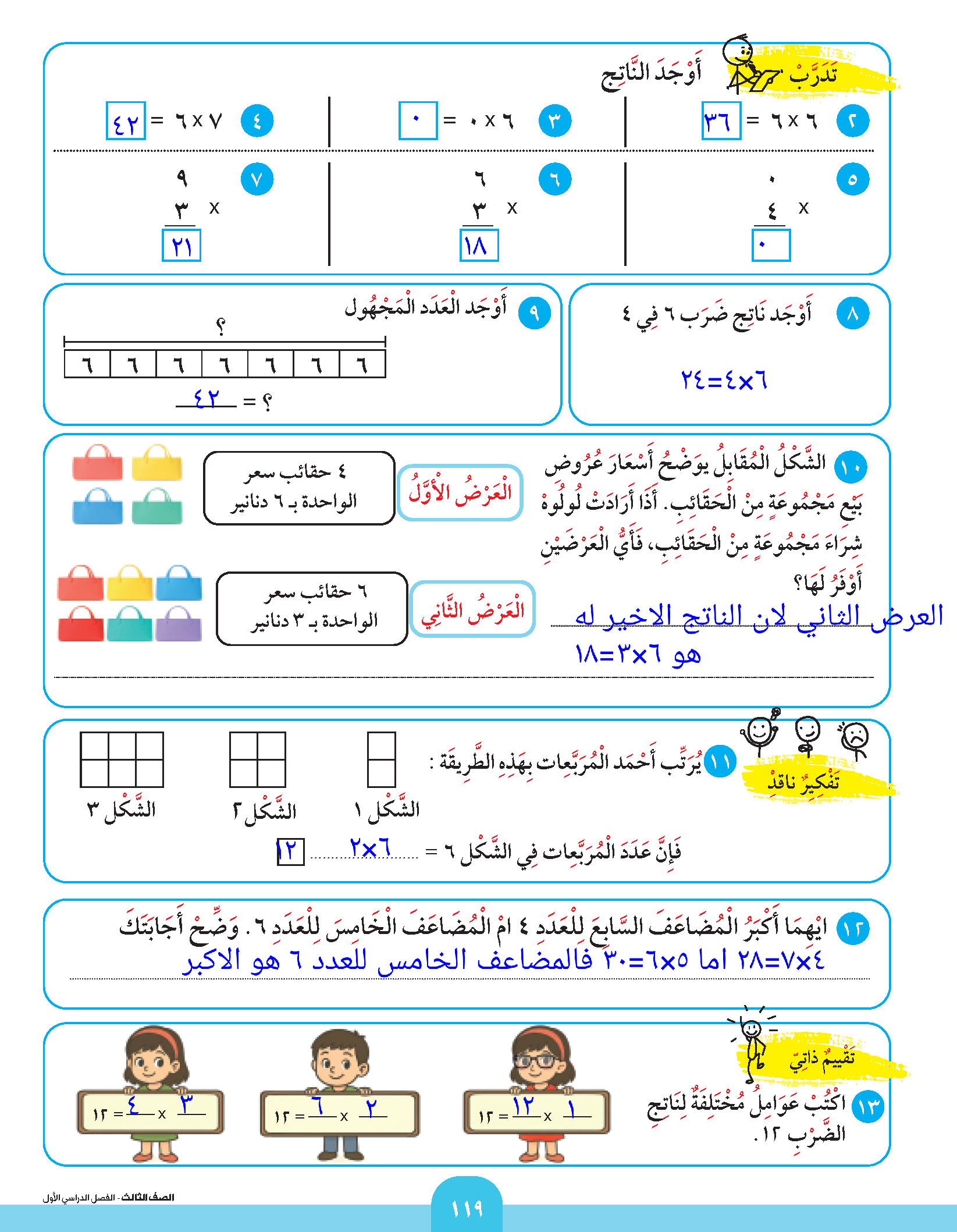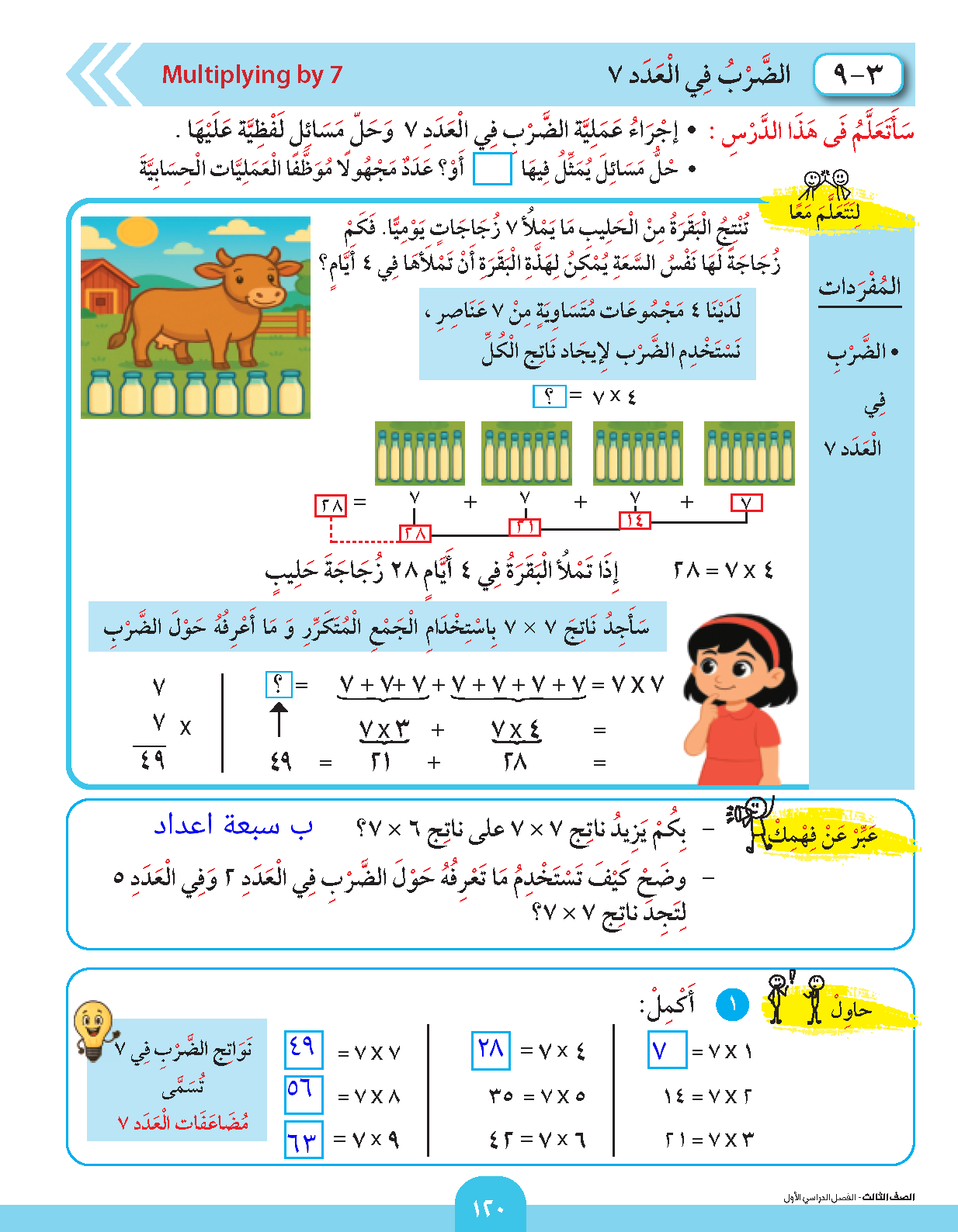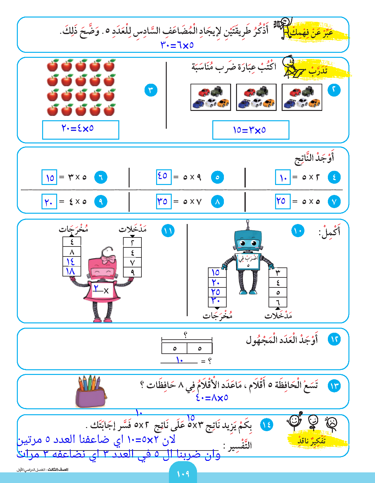 ضرب عدد مكون رمزه من رقم واحد في عدد مكون رمزه من رقمين مع اعادة التسمية