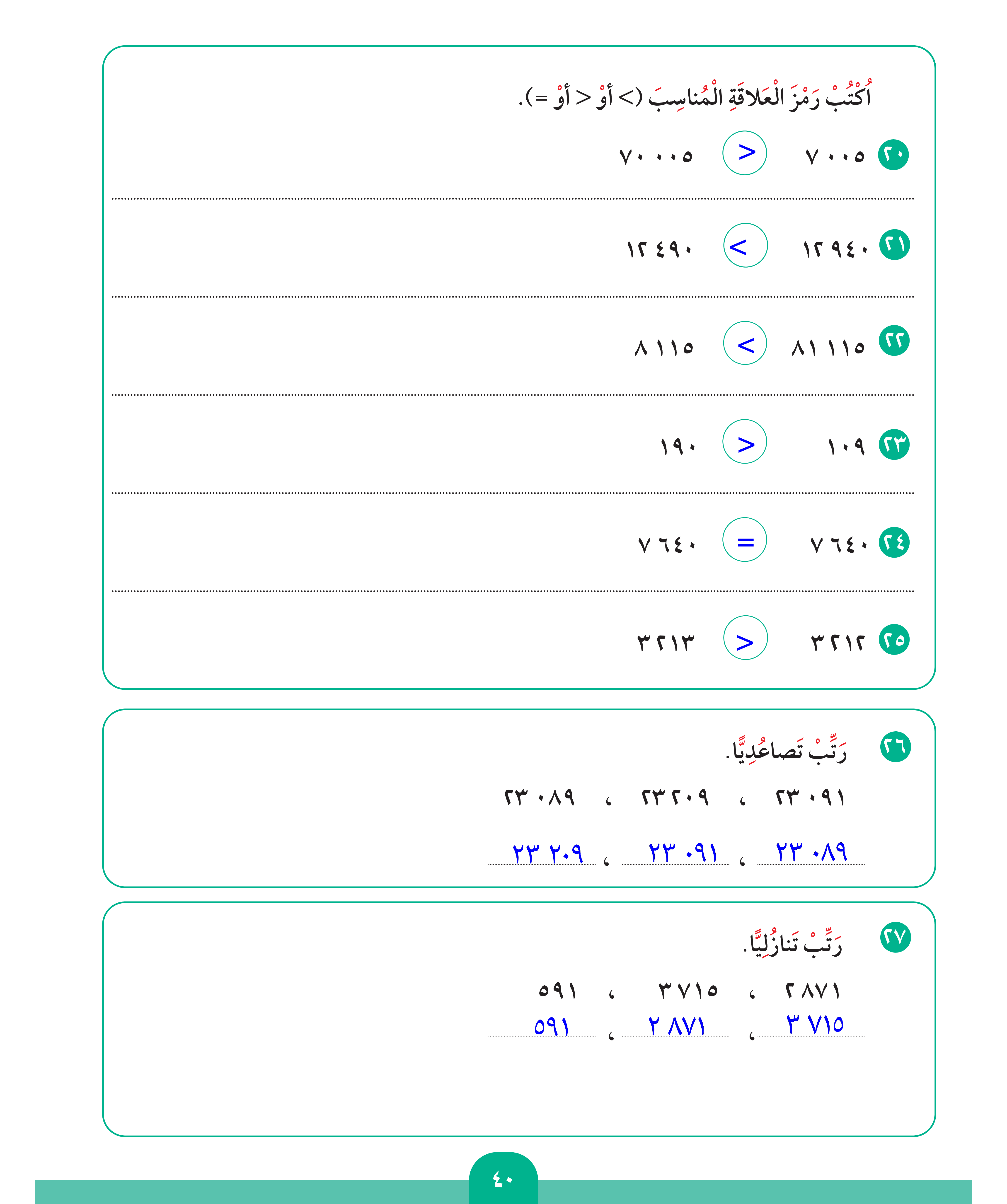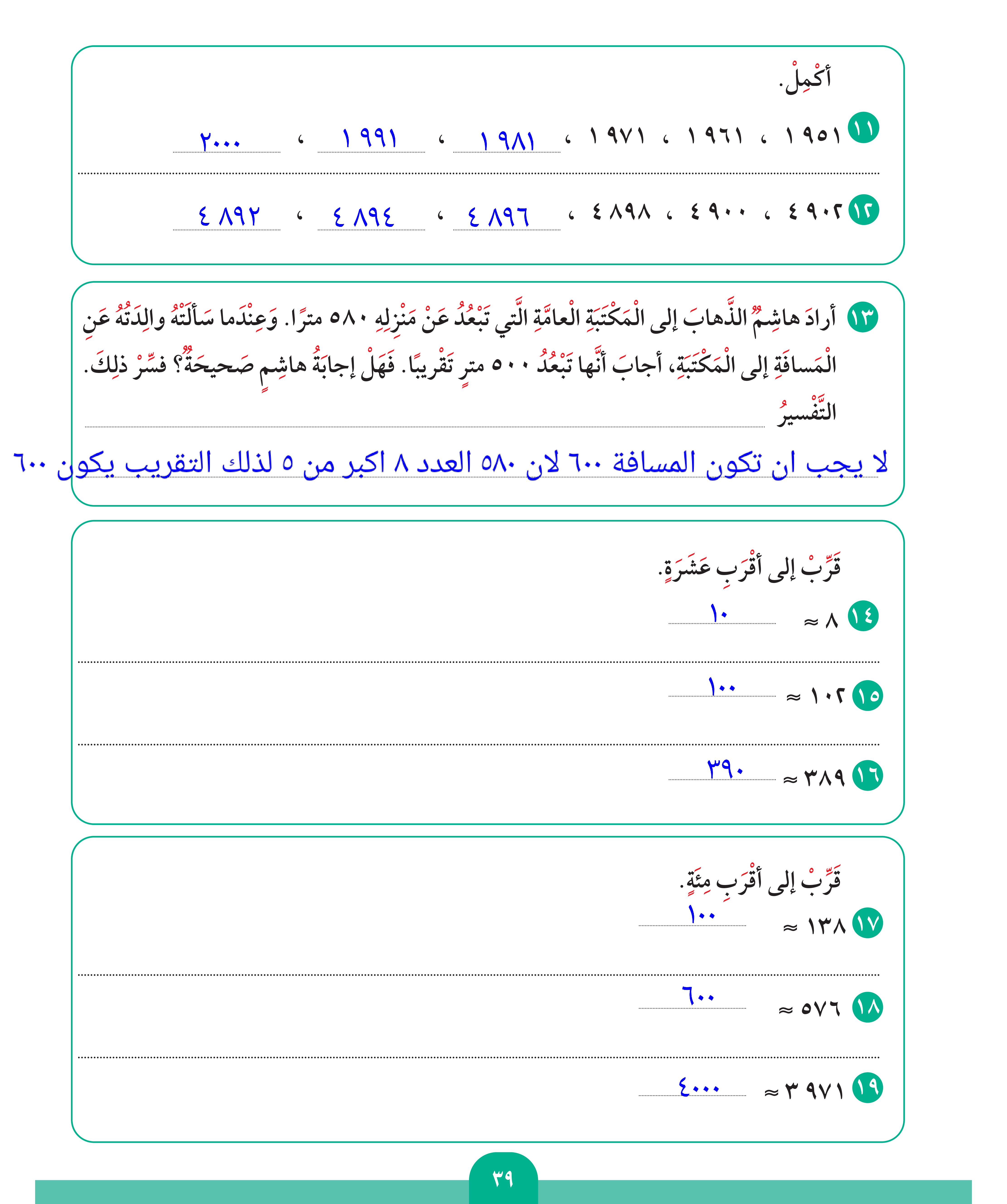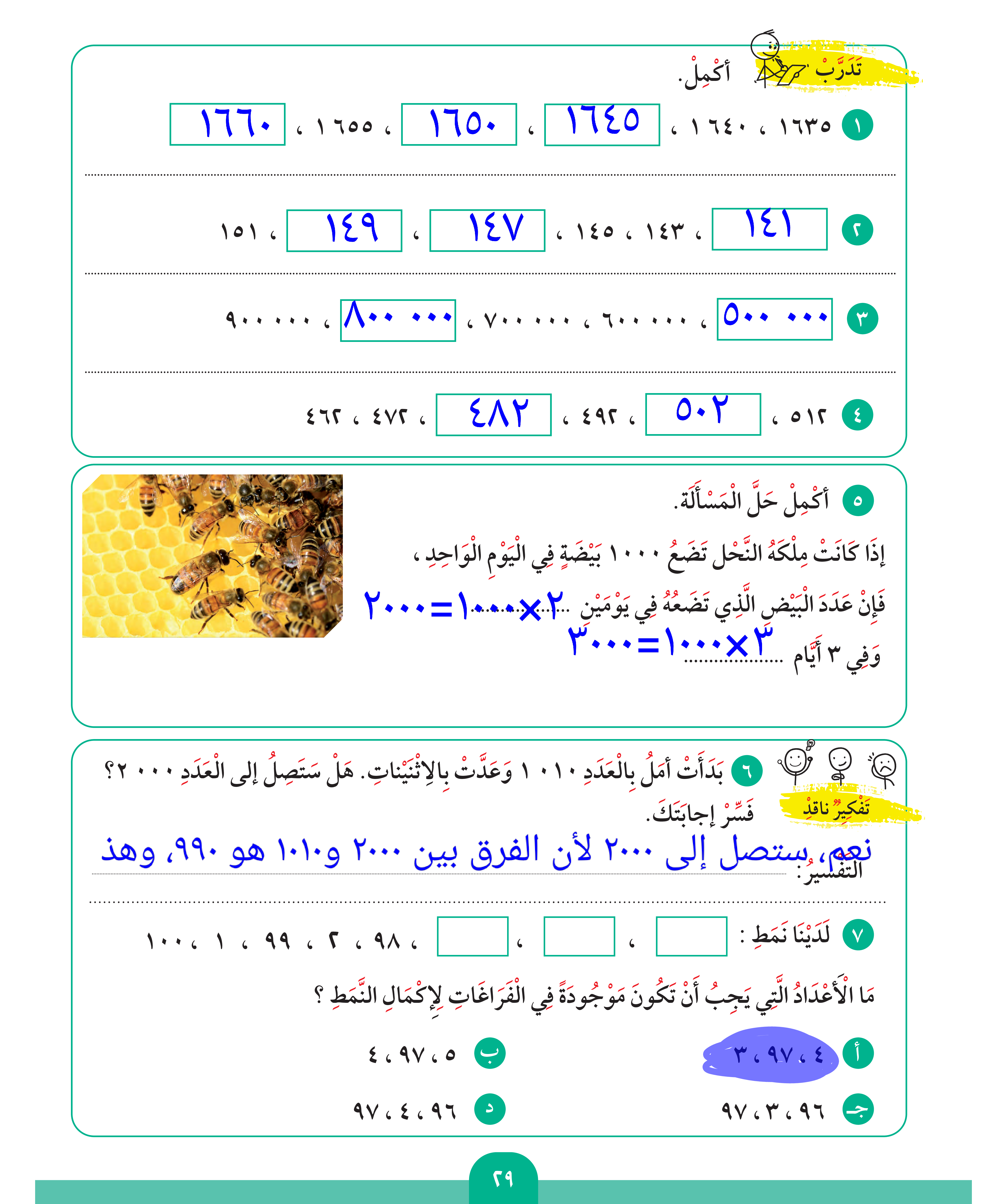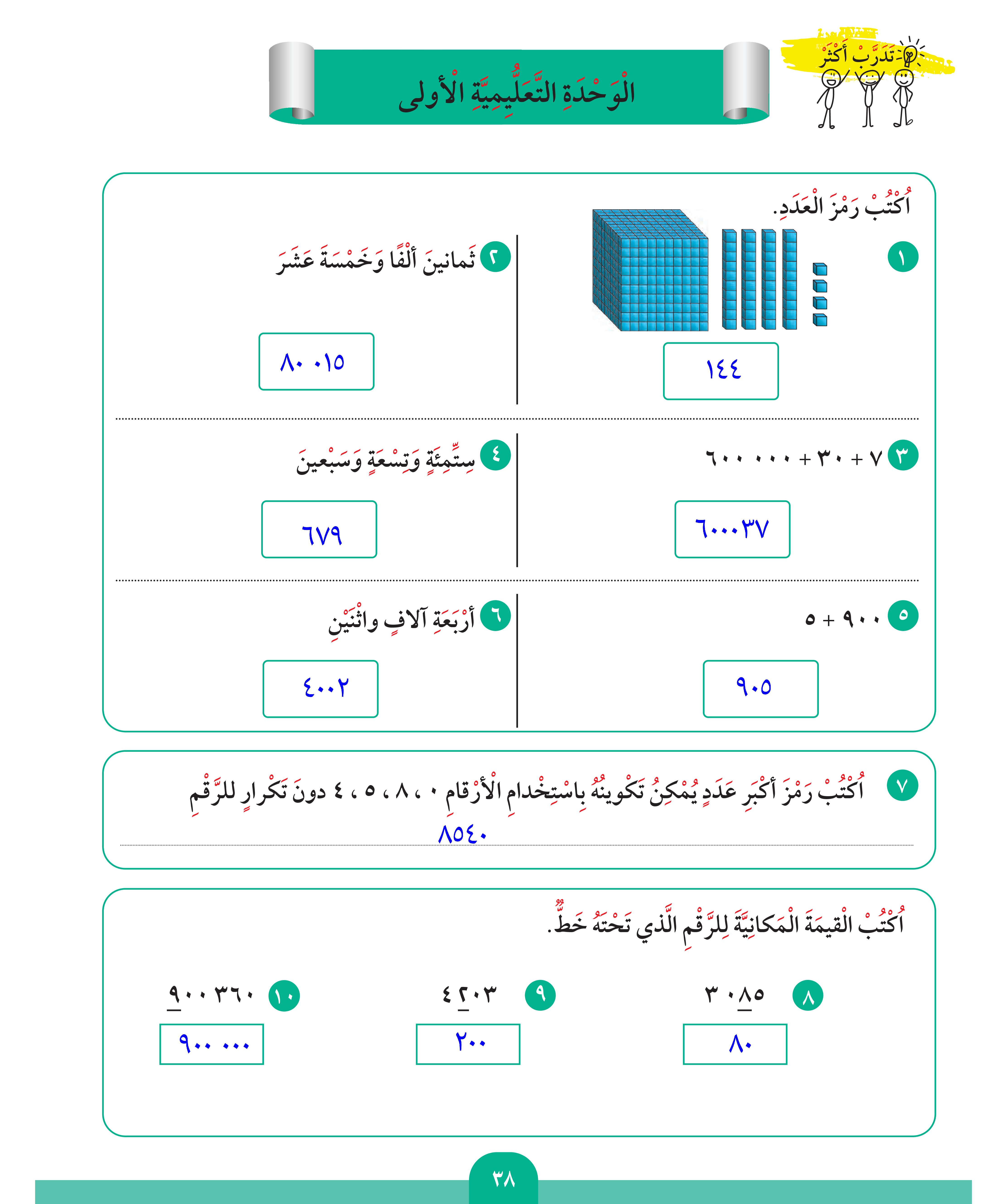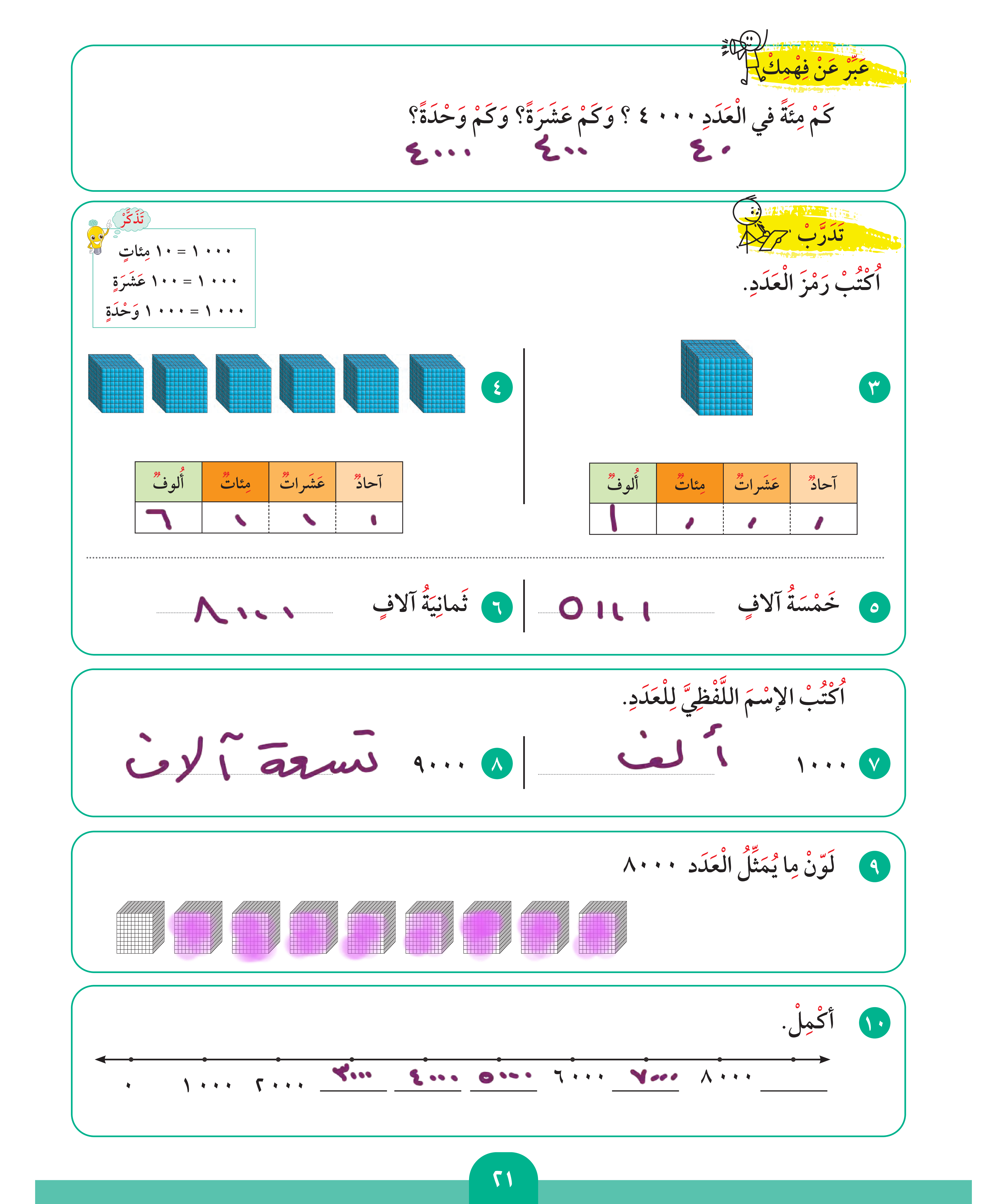 قراءة وكتابة وتمثيل الأعداد إلى العدد 1000