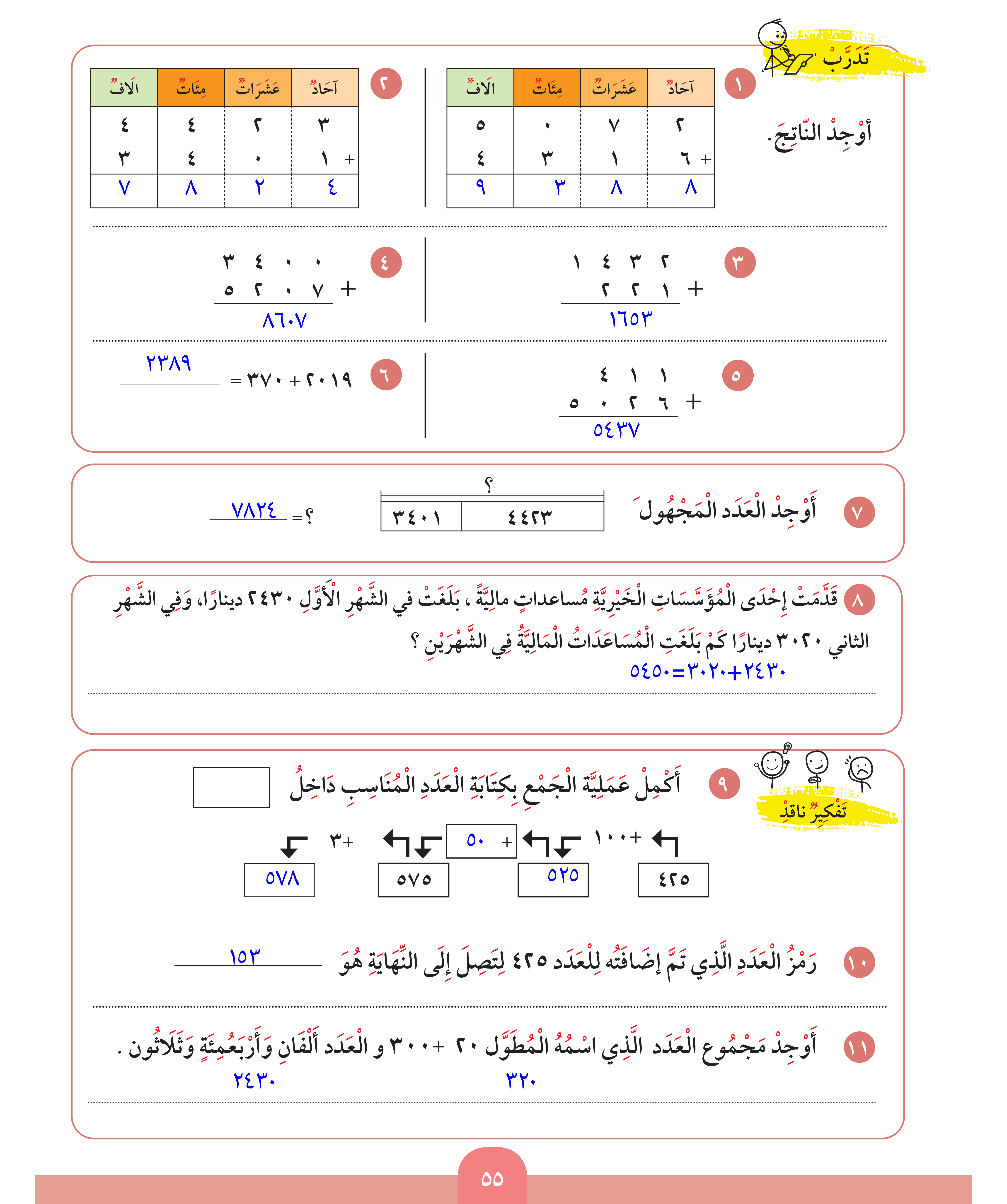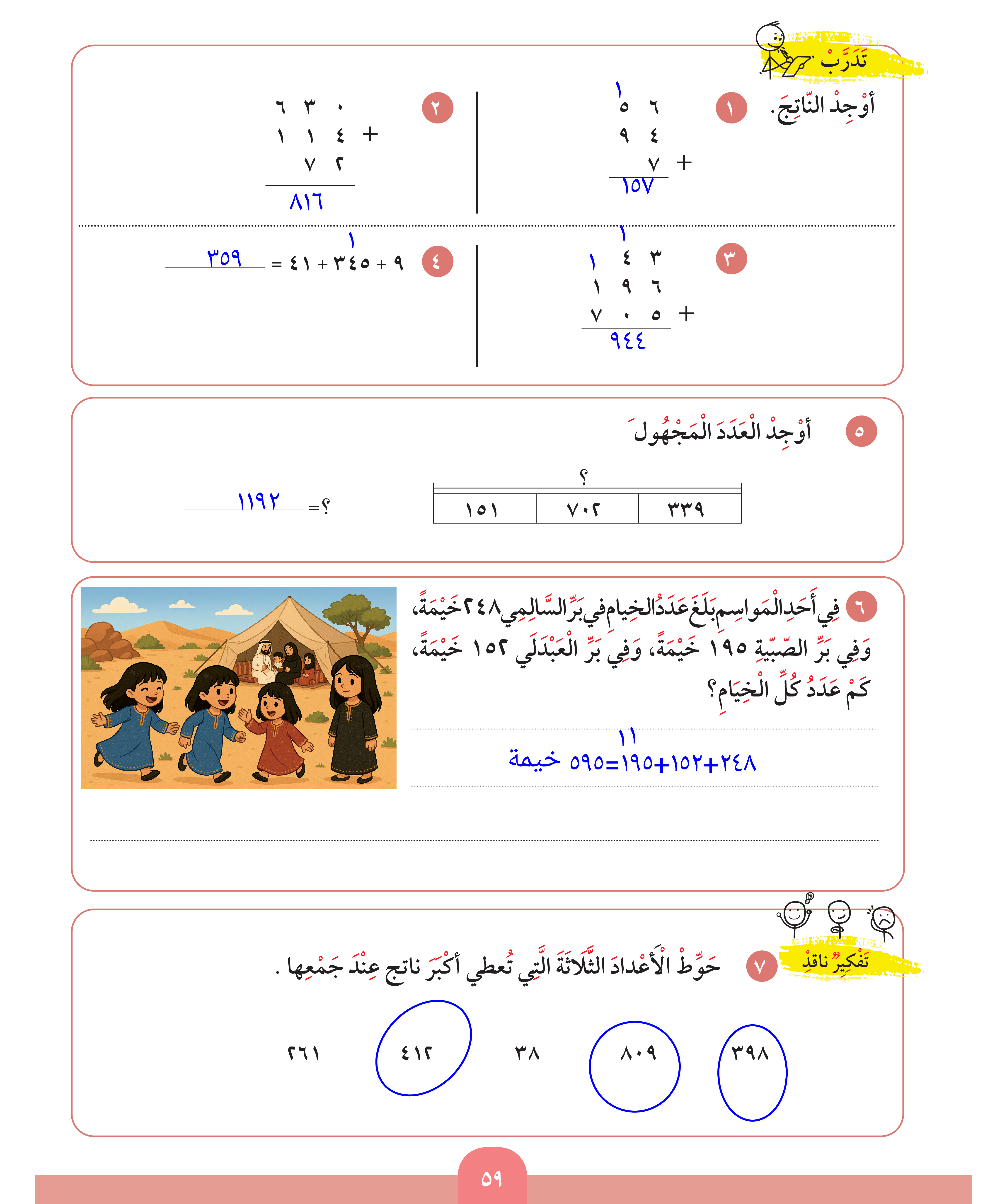 جمع عددين بناتج لا يزيد عن العدد 1000
