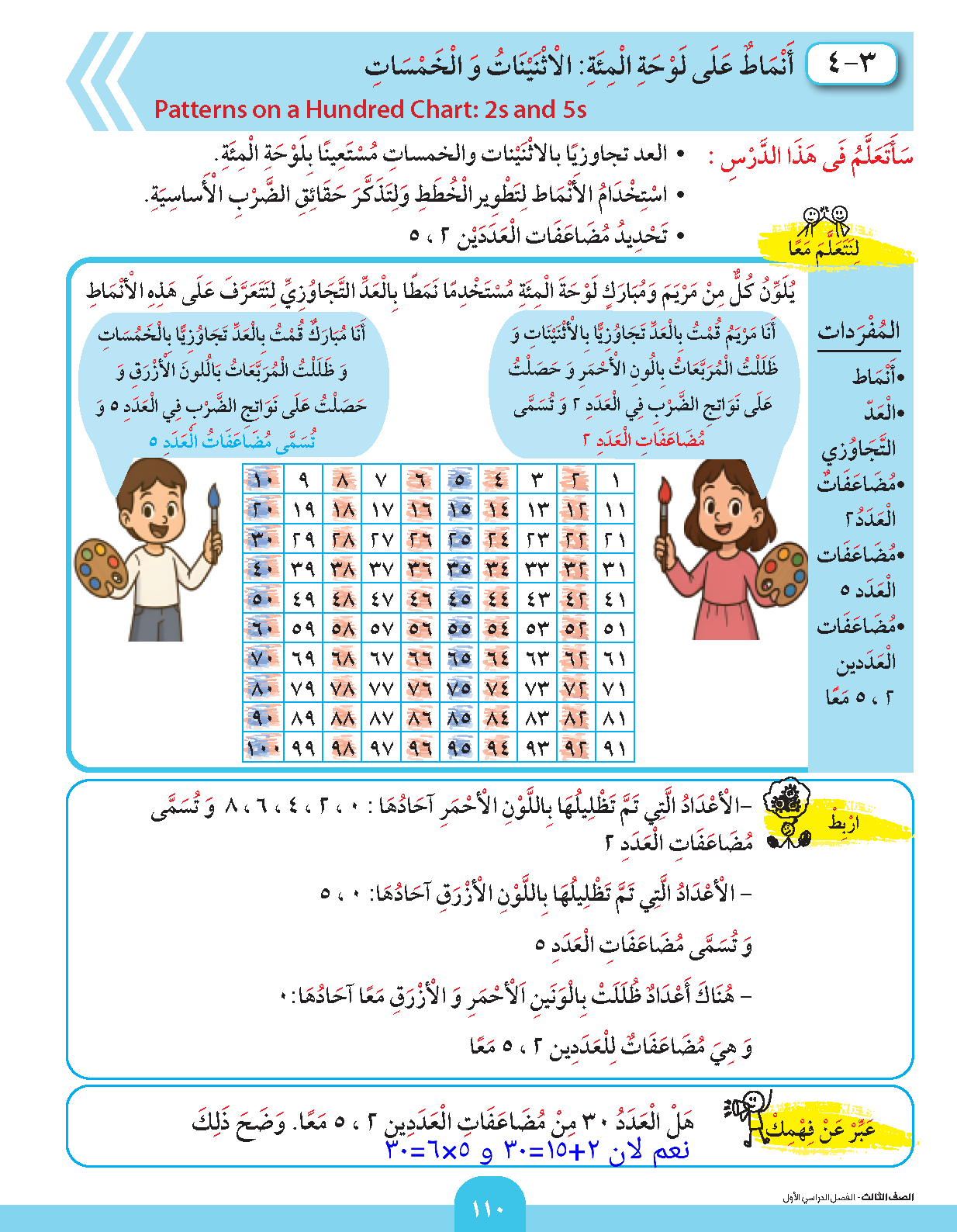 أنماط على لوحة المئة: الأثنينات والخمسات
