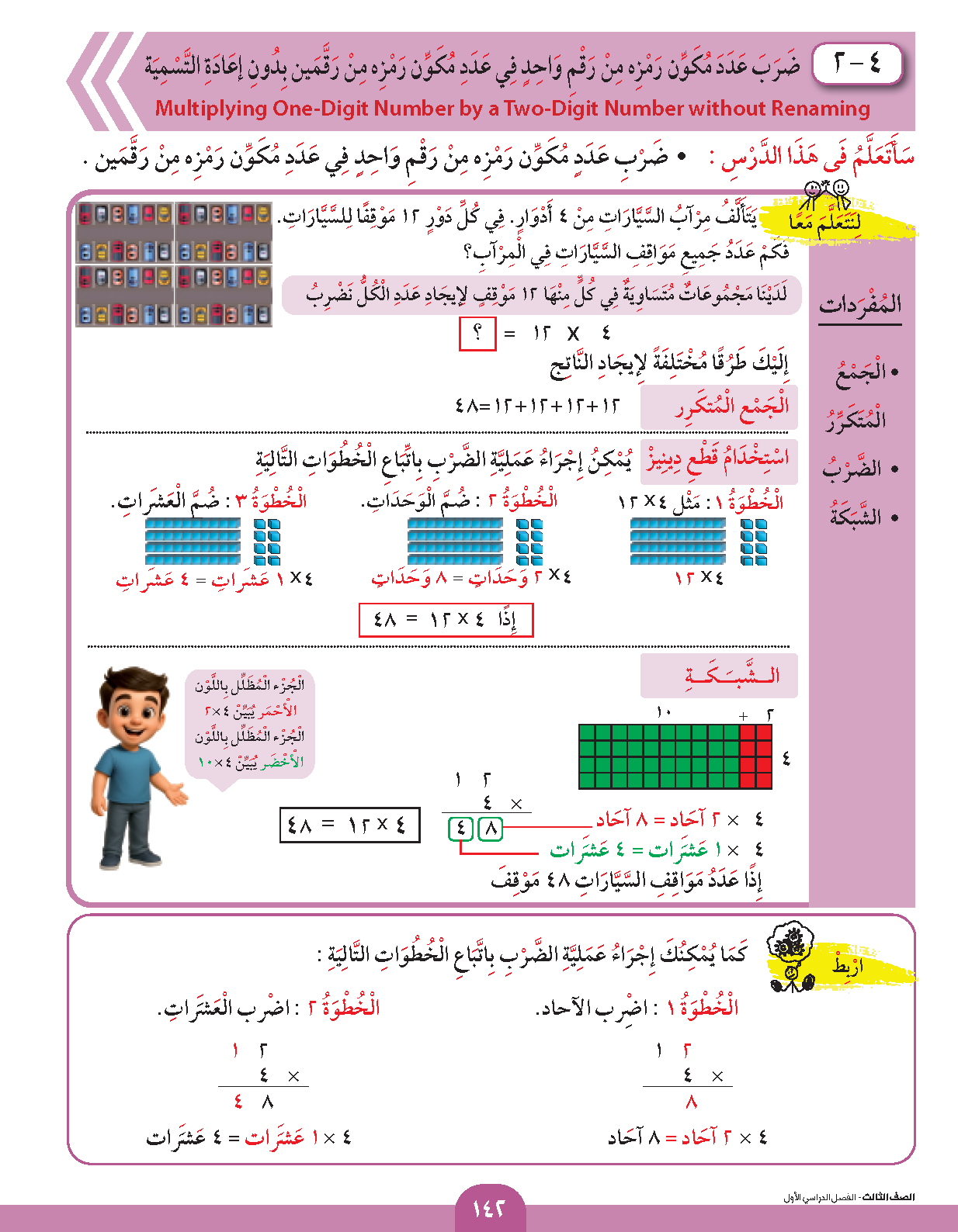 ضرب عدد مكون رمزه من رقم واحد في عدد مكون رمزه من رقمين بدون اعادة التسمية