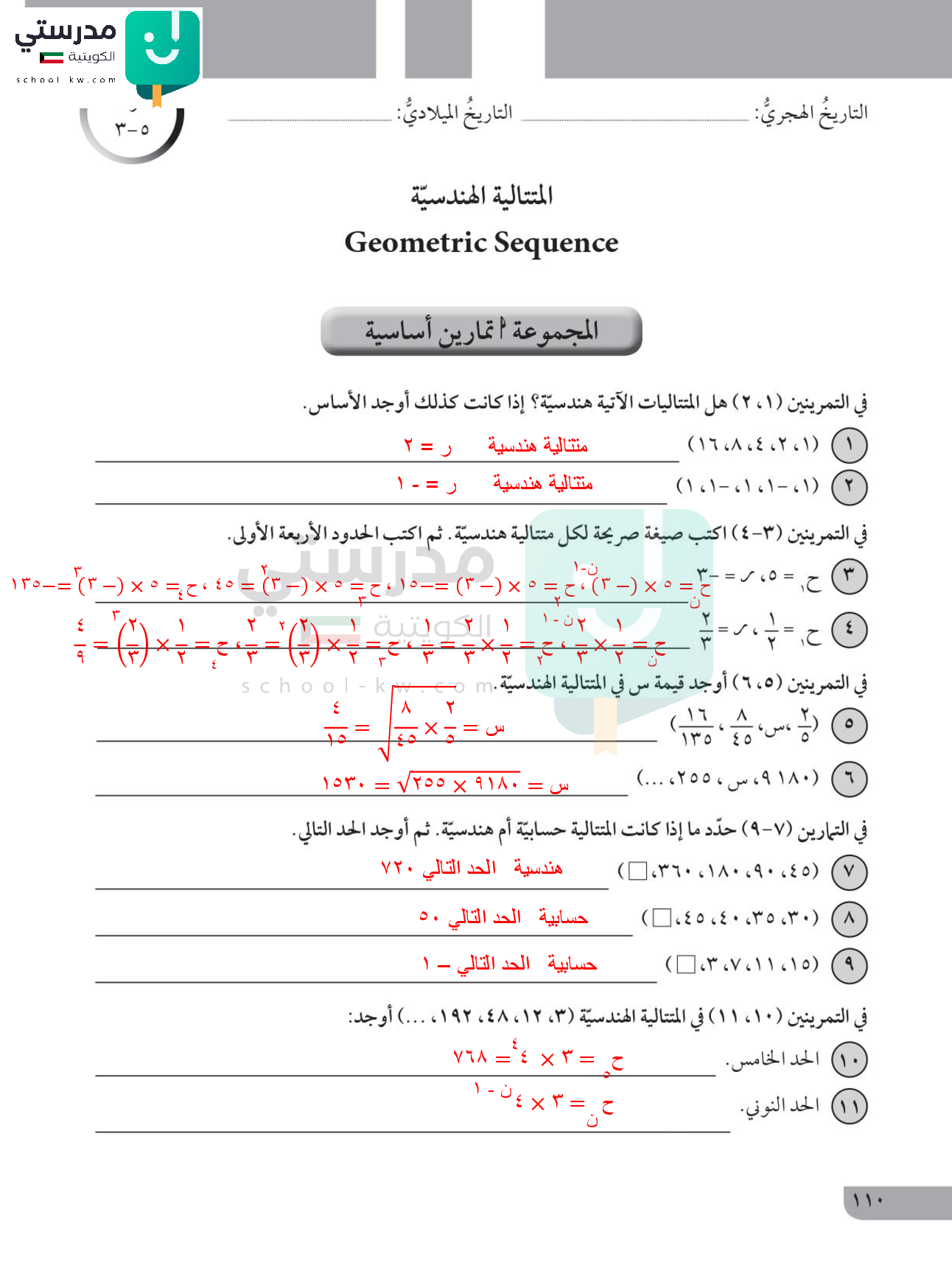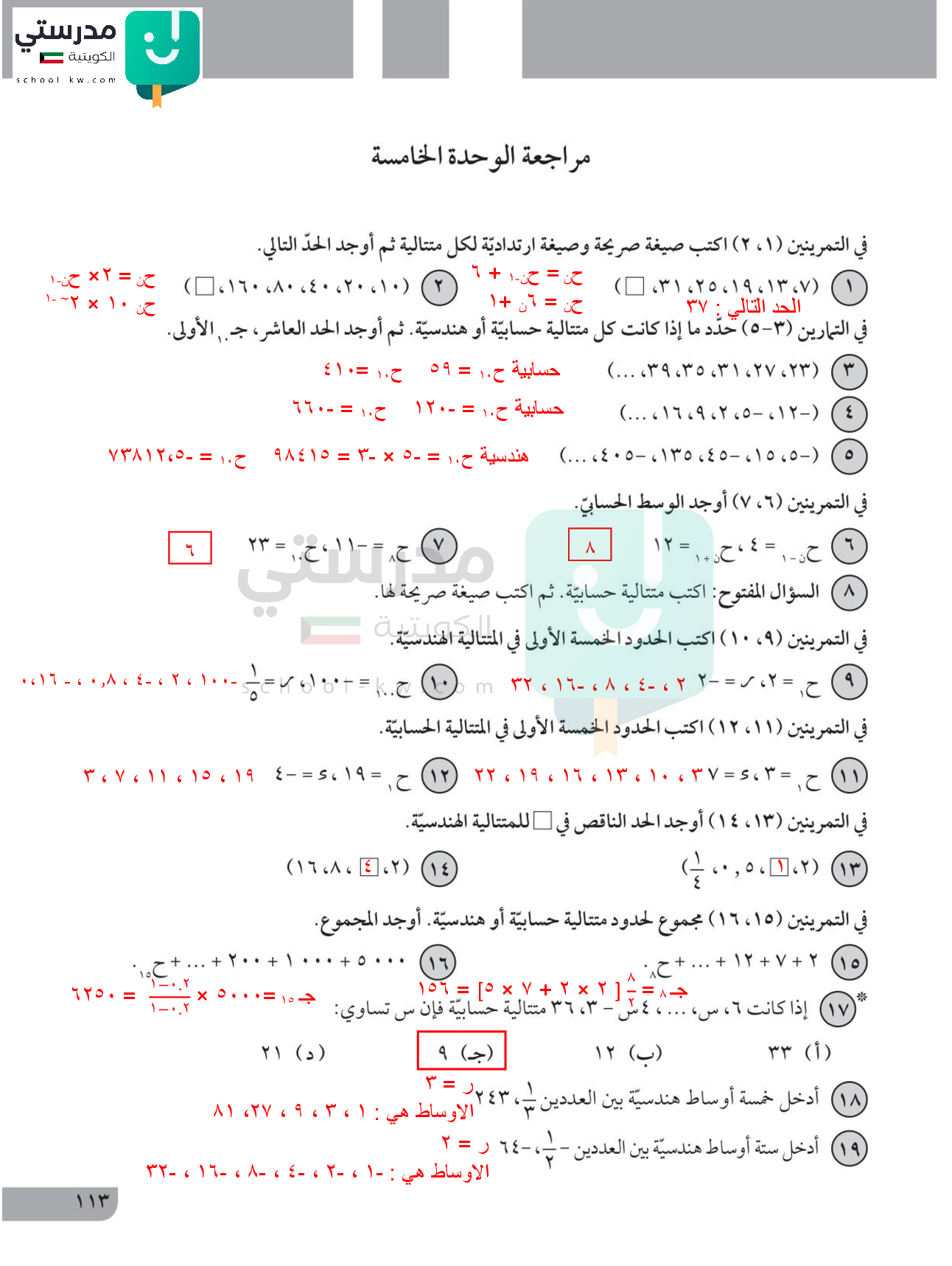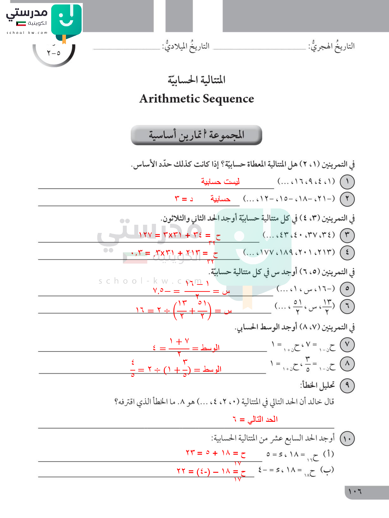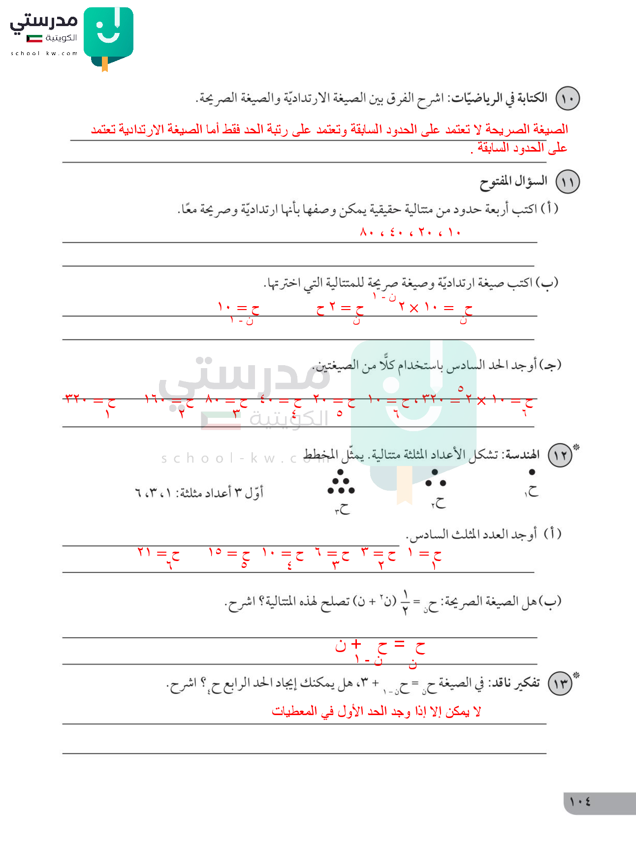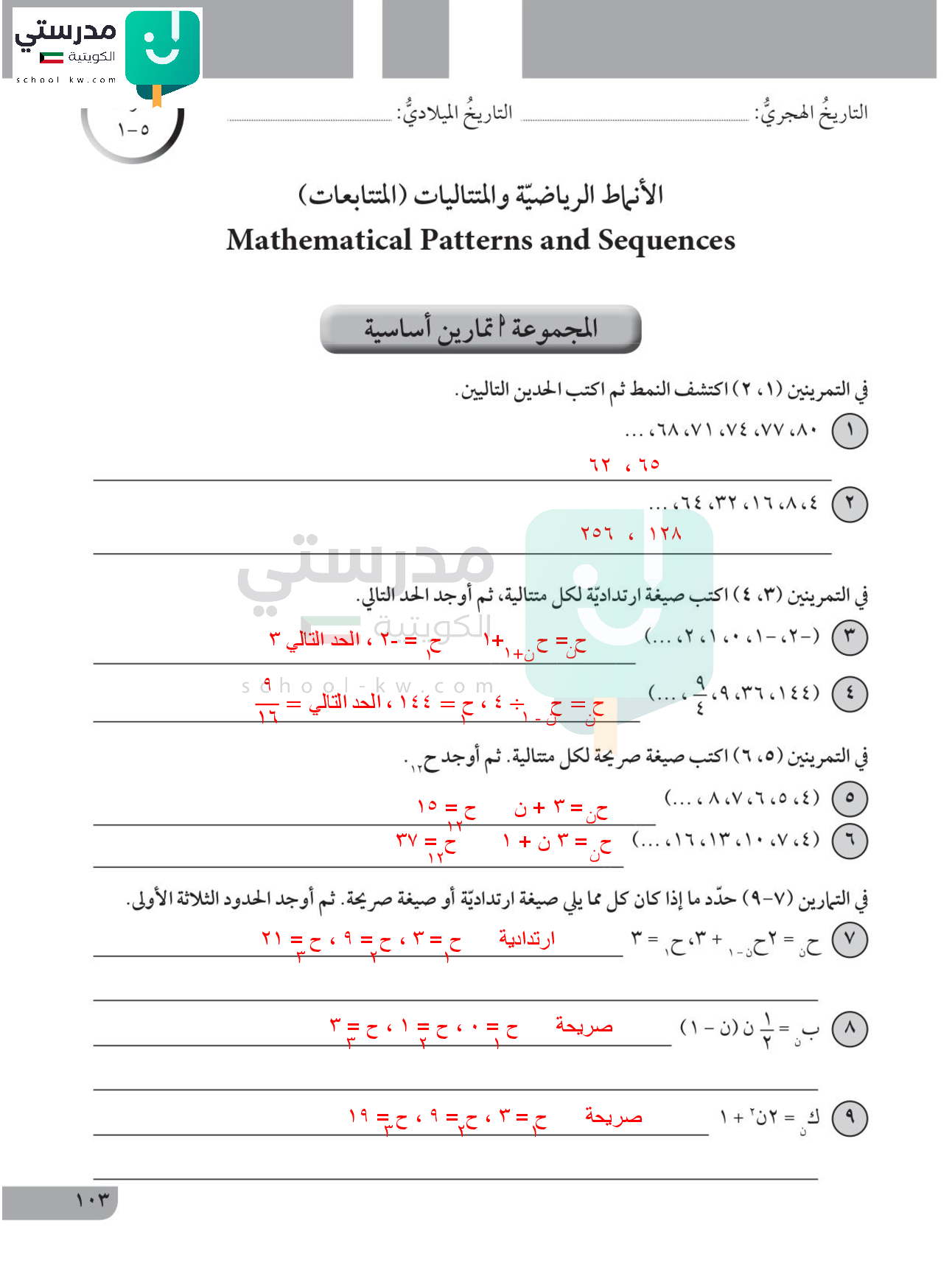 الأنماط الرياضية والمتتاليات (المتتابعات)