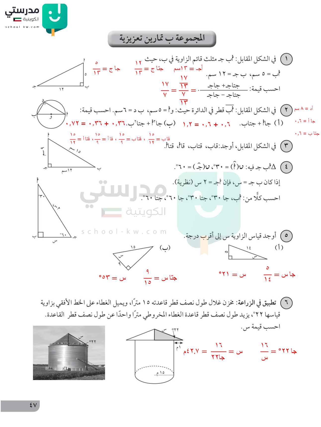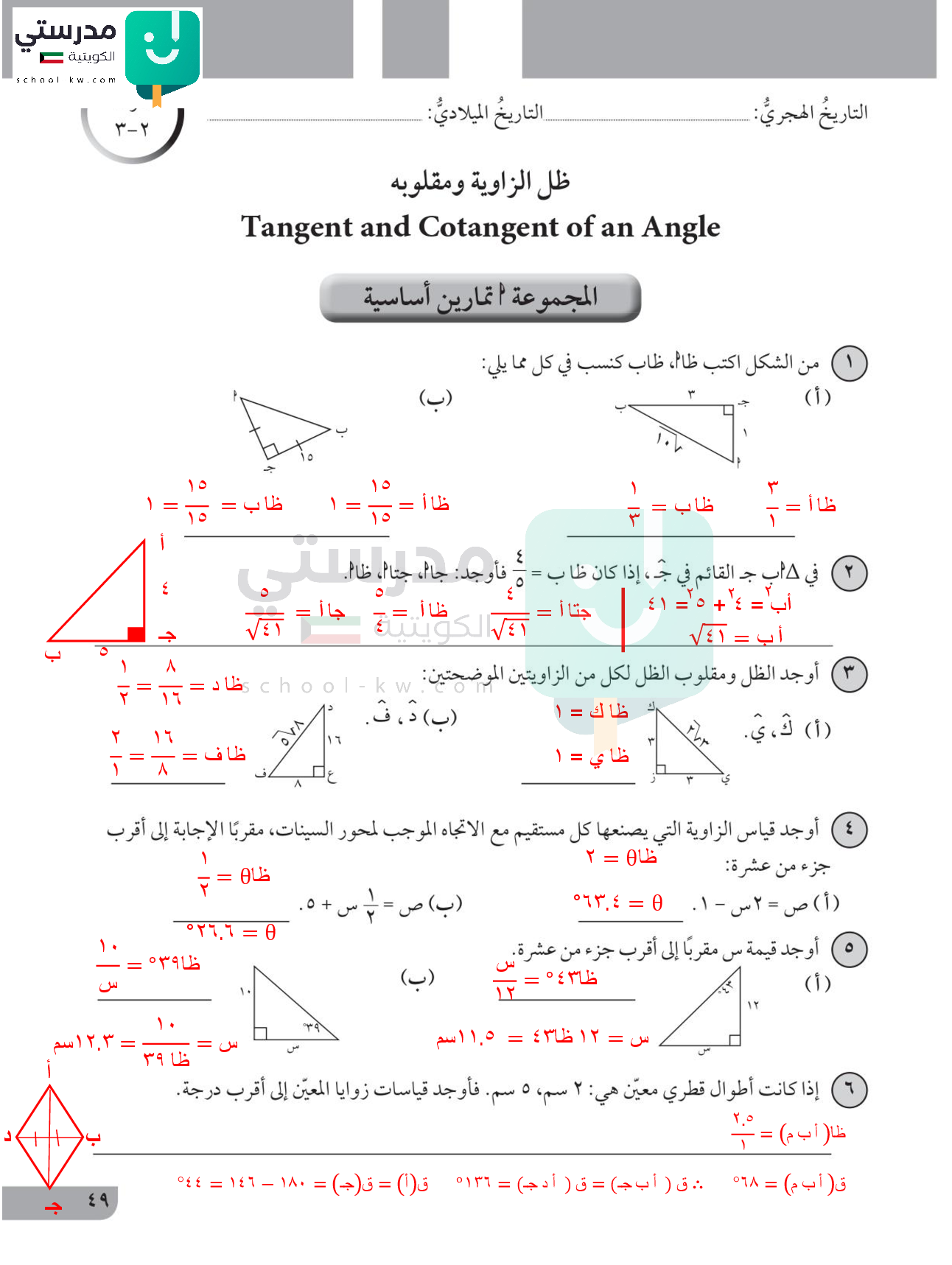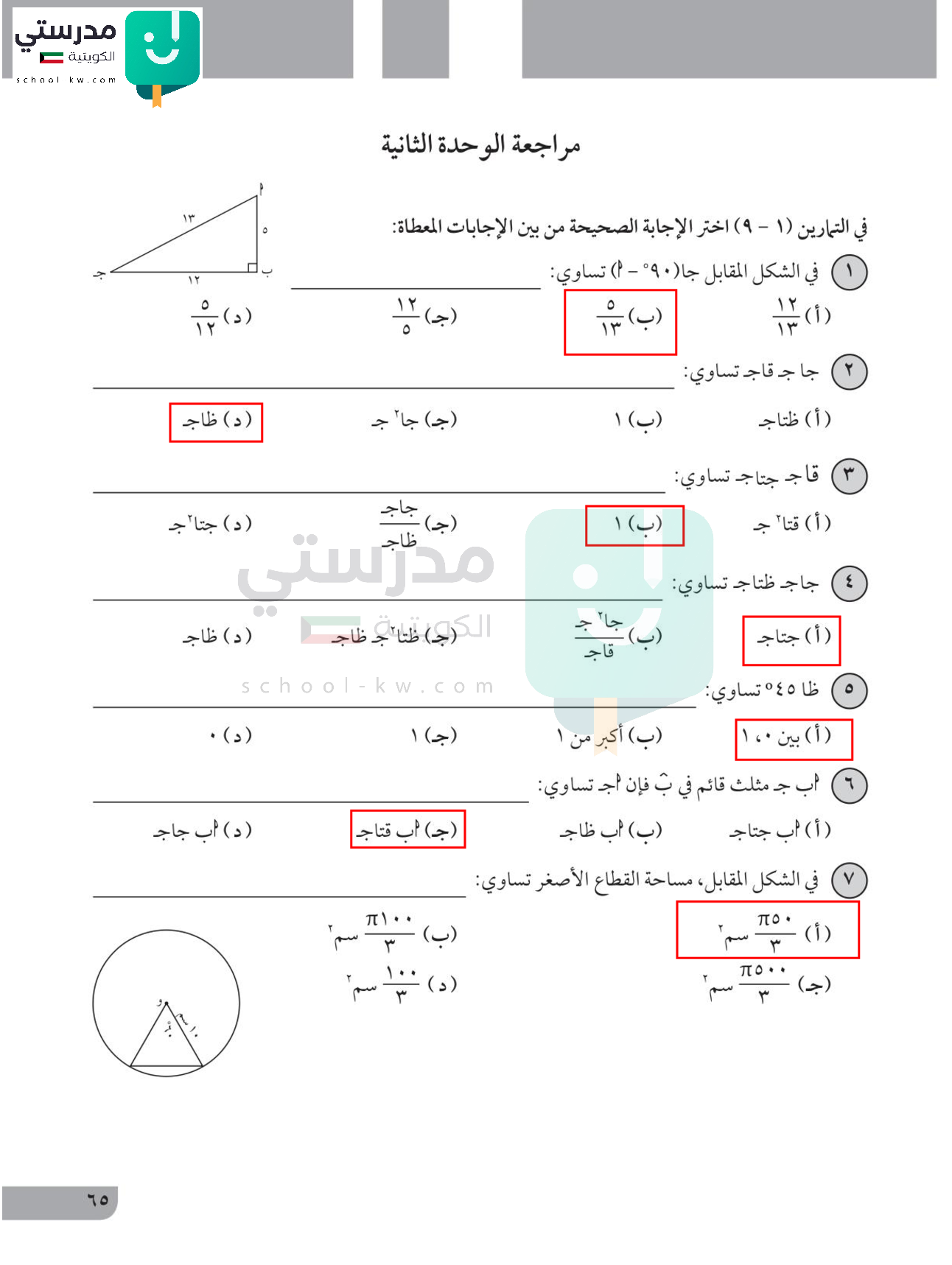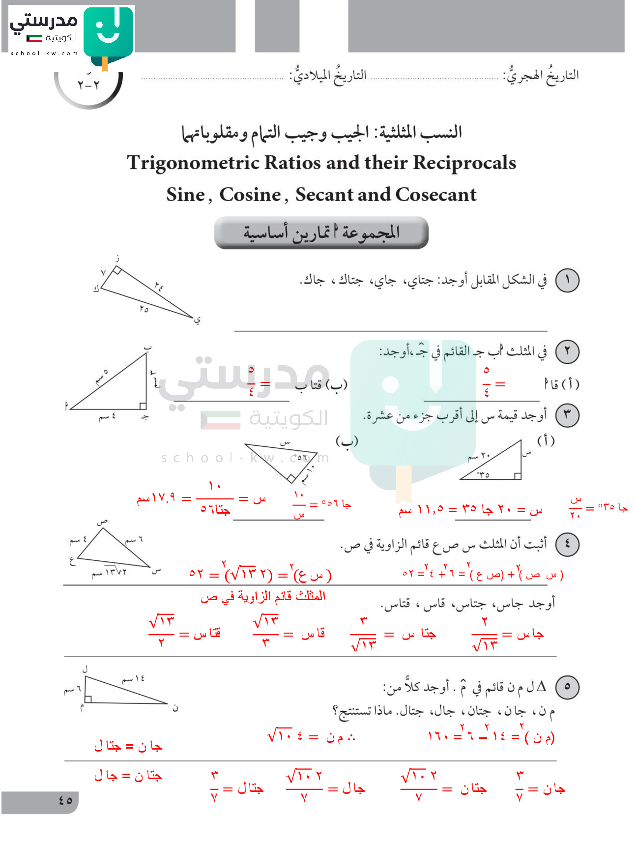 النسب المثلثية: الجيب وجيب التمام ومقلوباتهما
