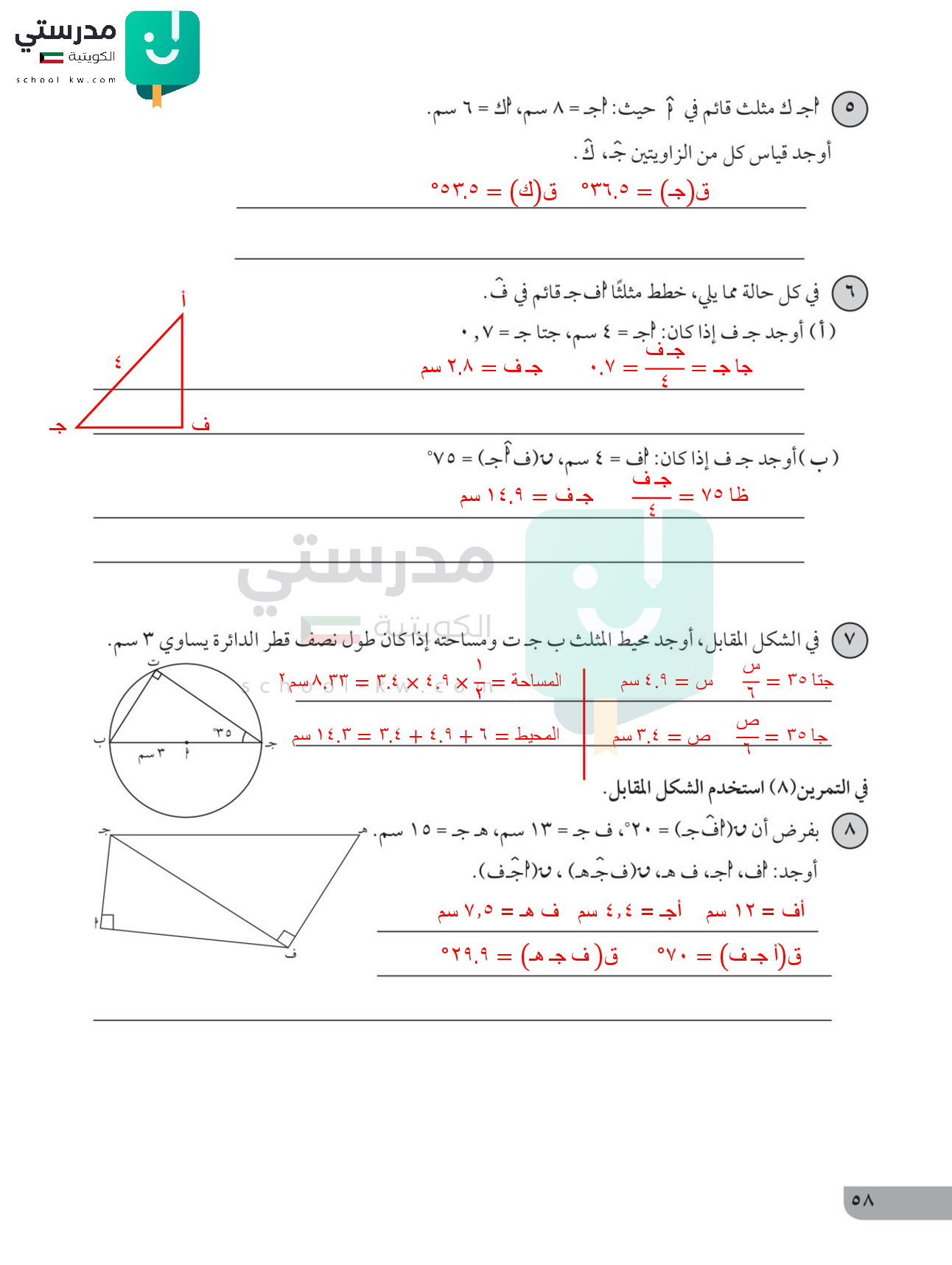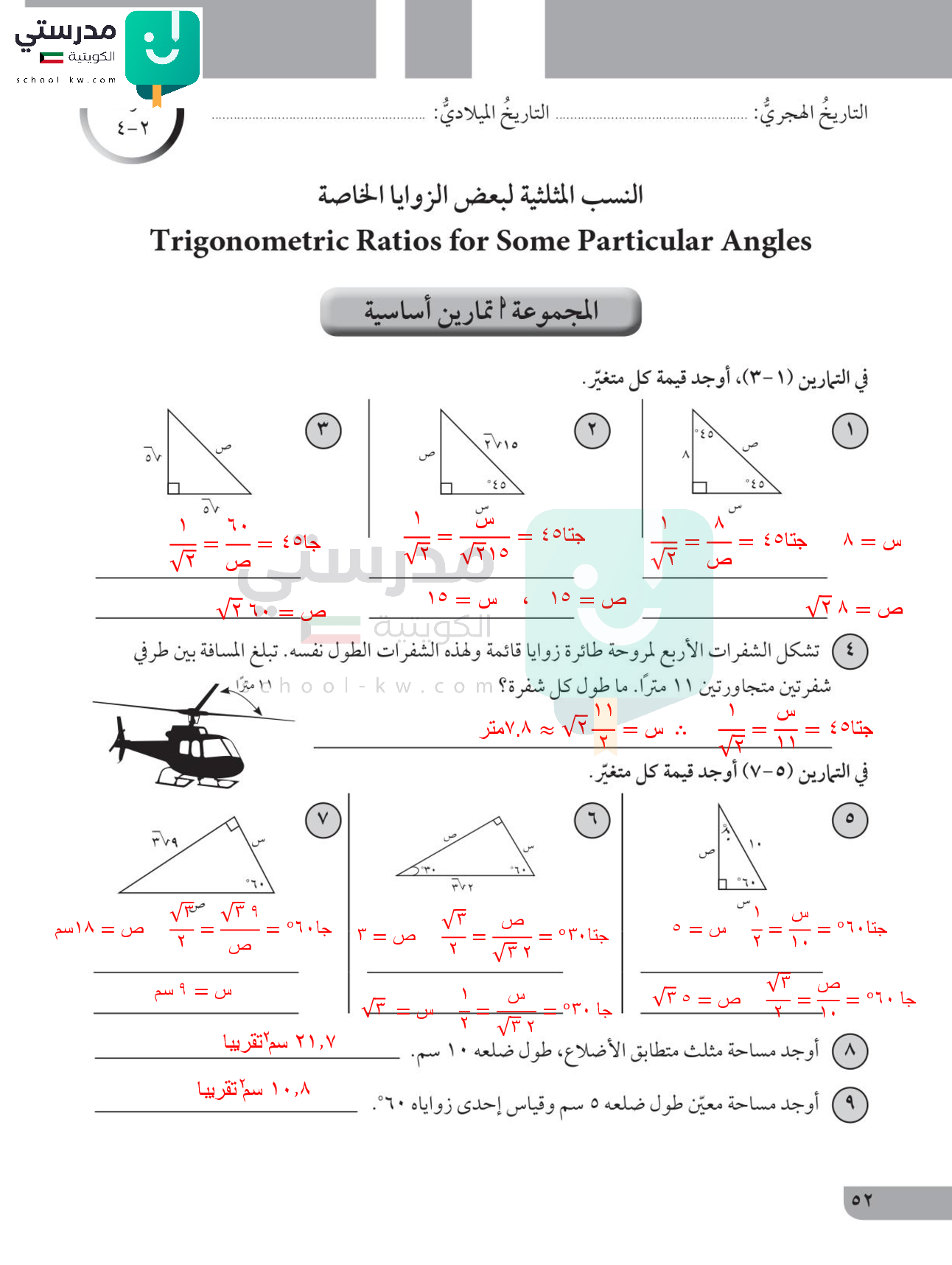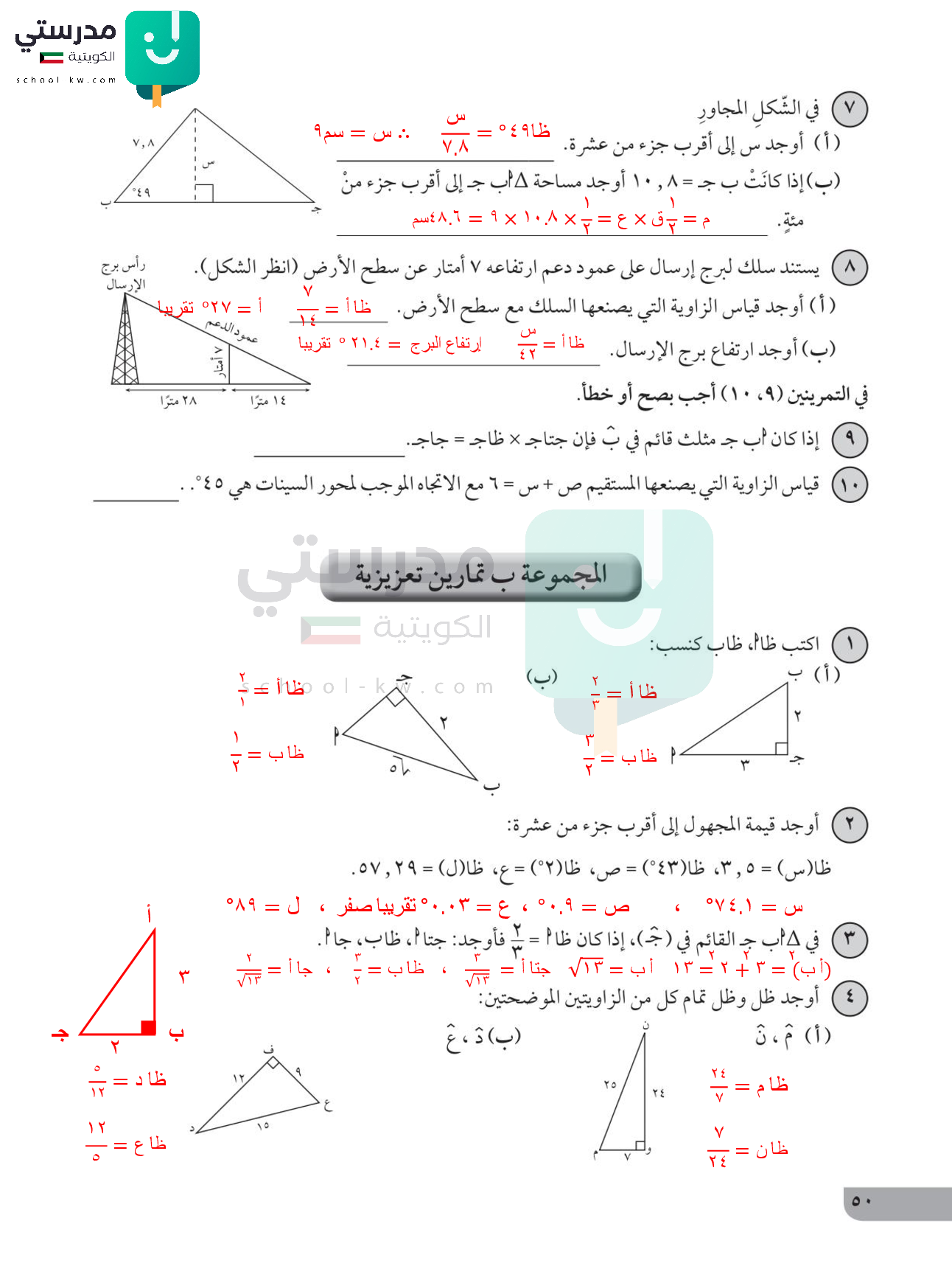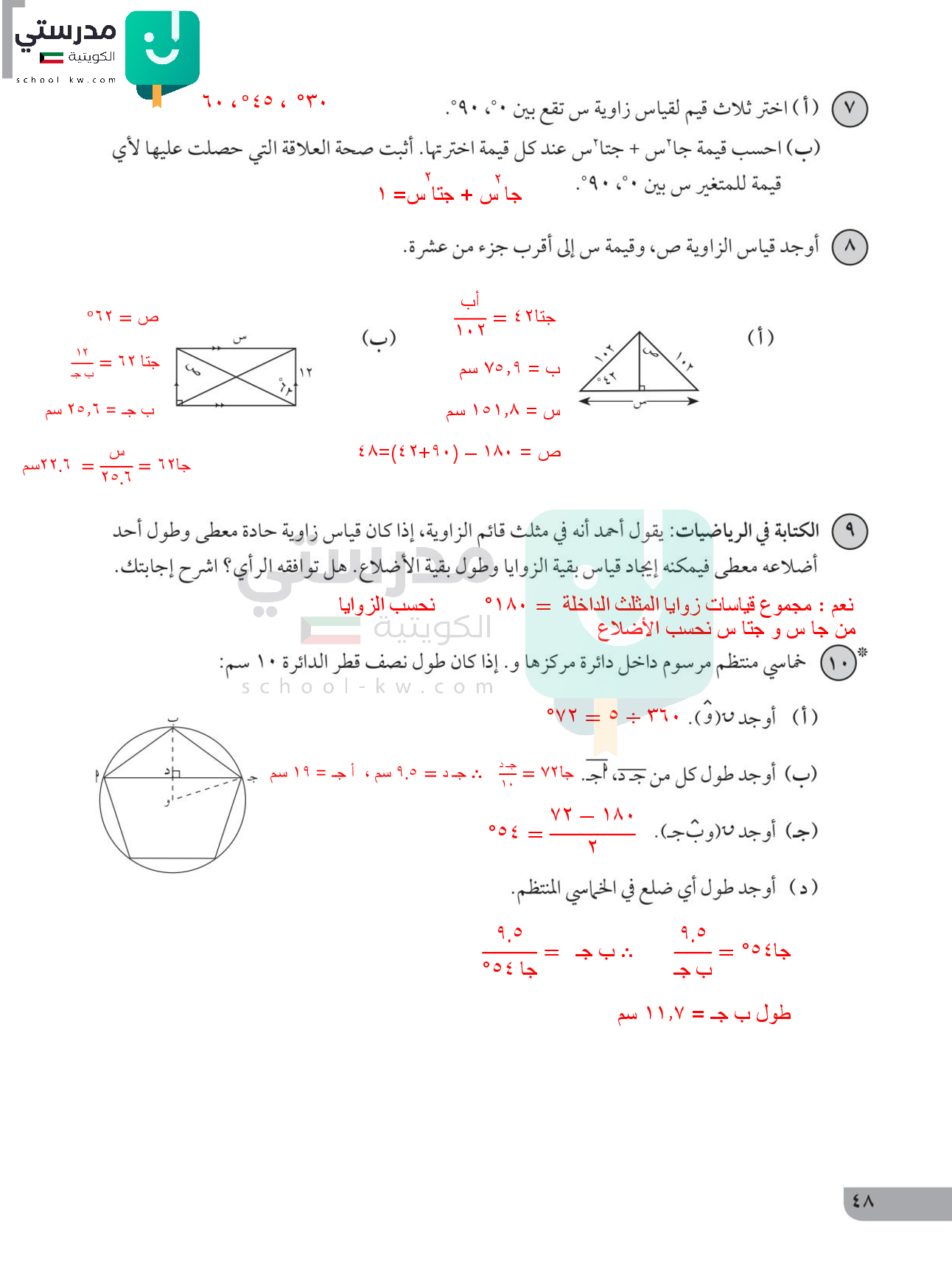 النسب المثلثية: الجيب وجيب التمام ومقلوباتهما