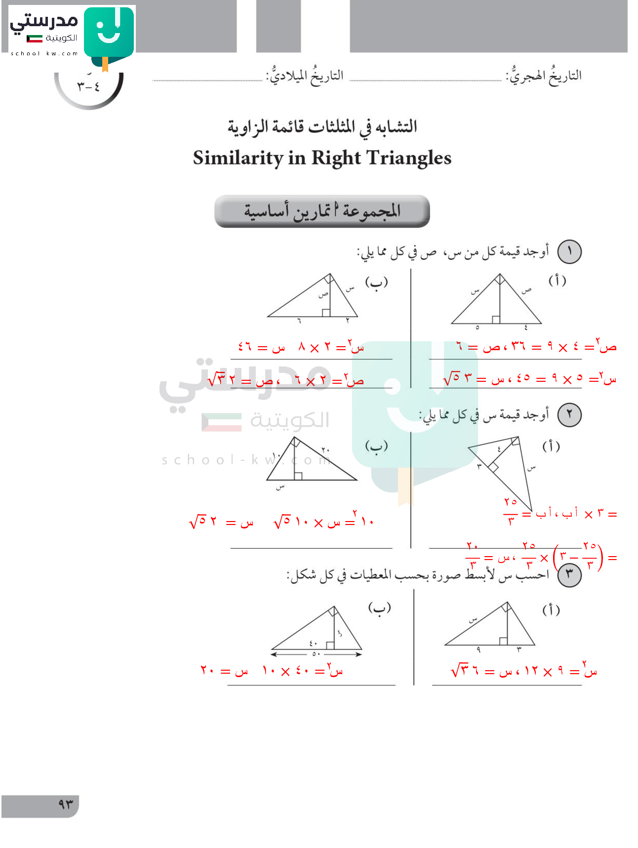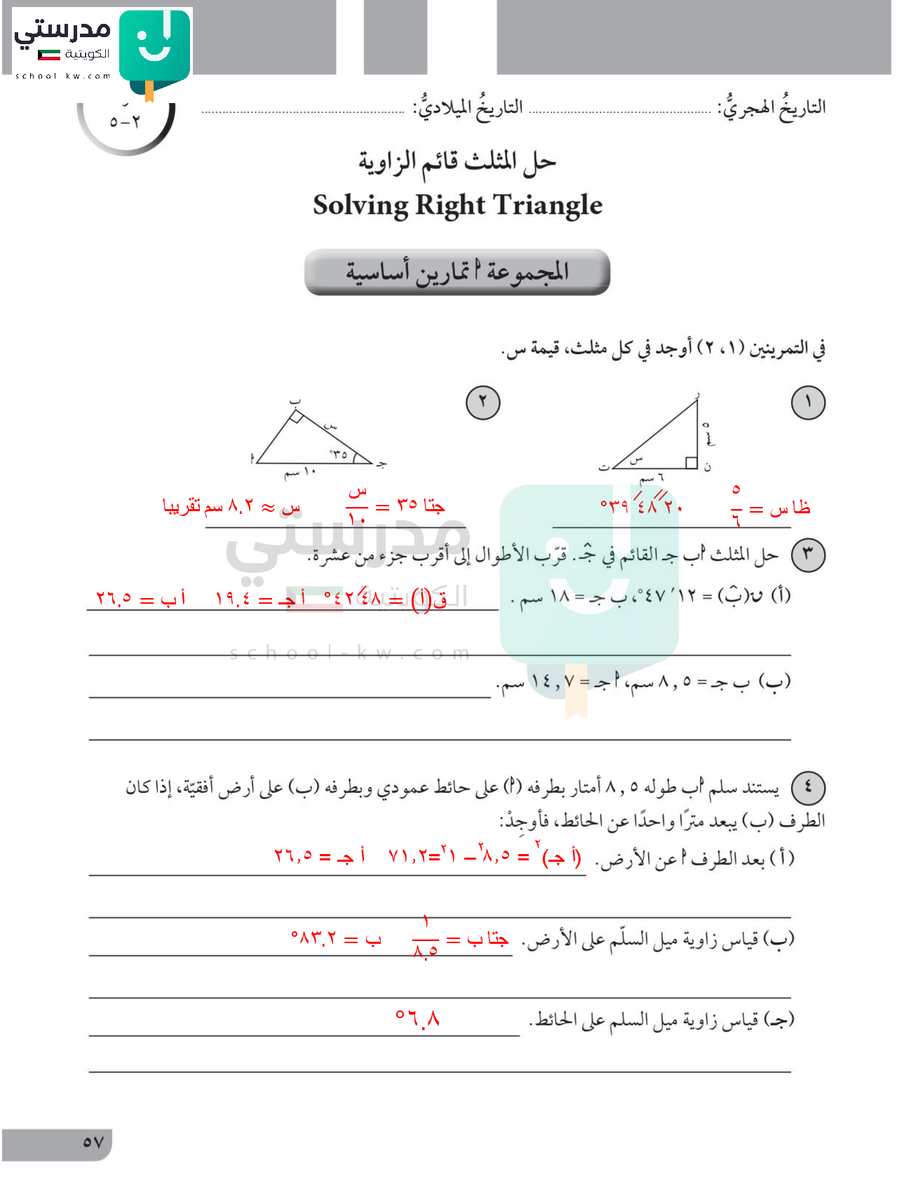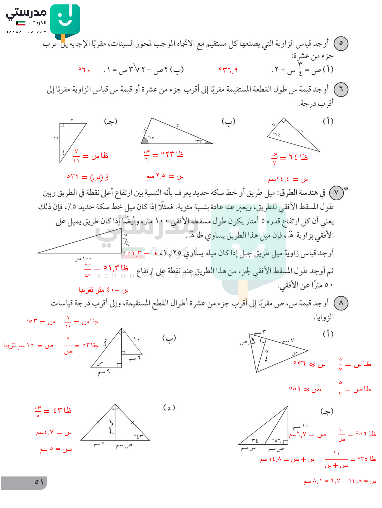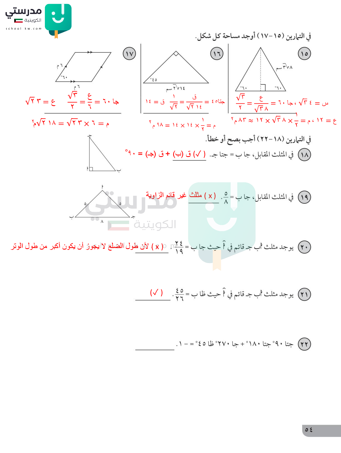 النسب المثلثية: الجيب وجيب التمام ومقلوباتهما