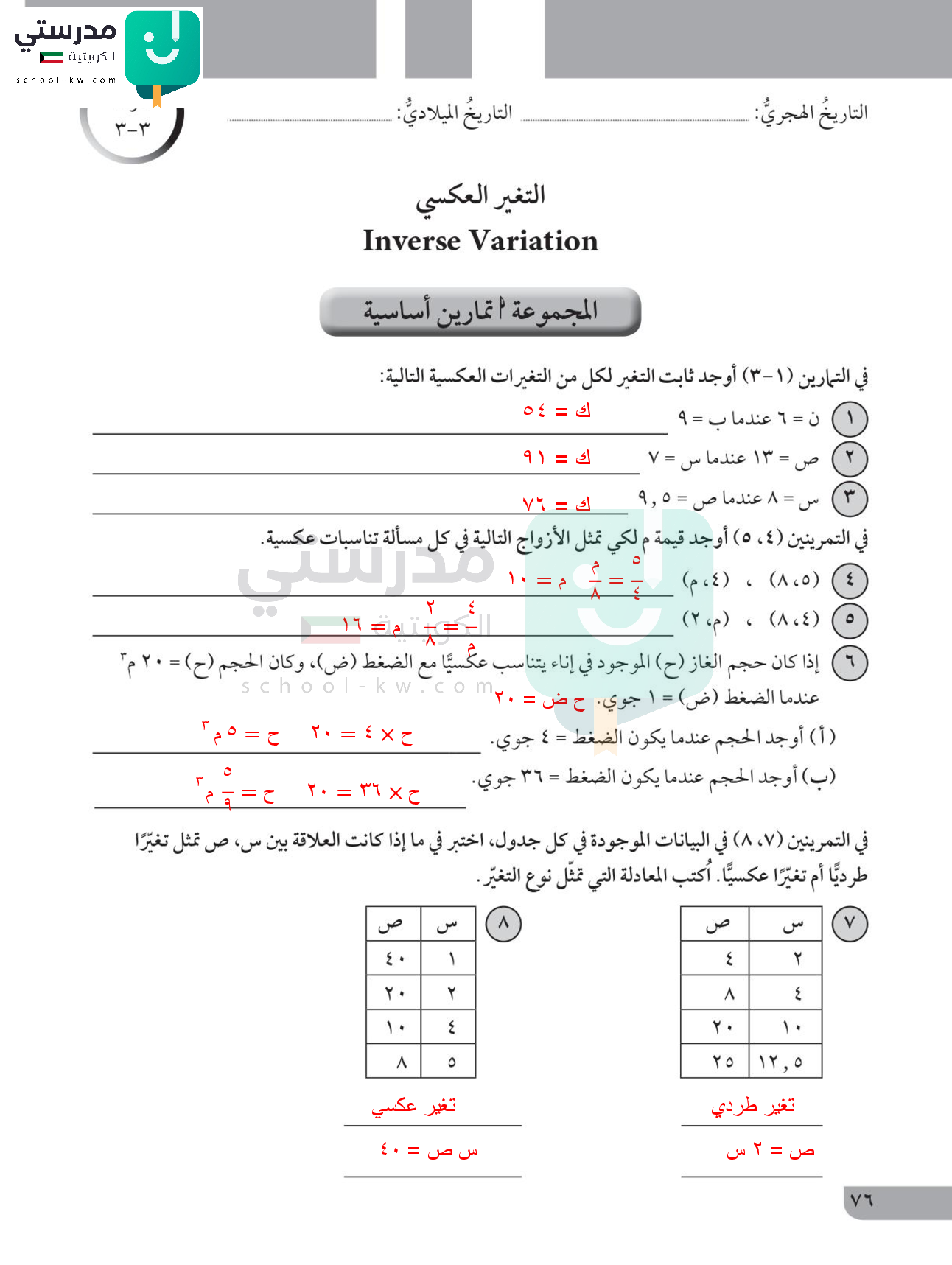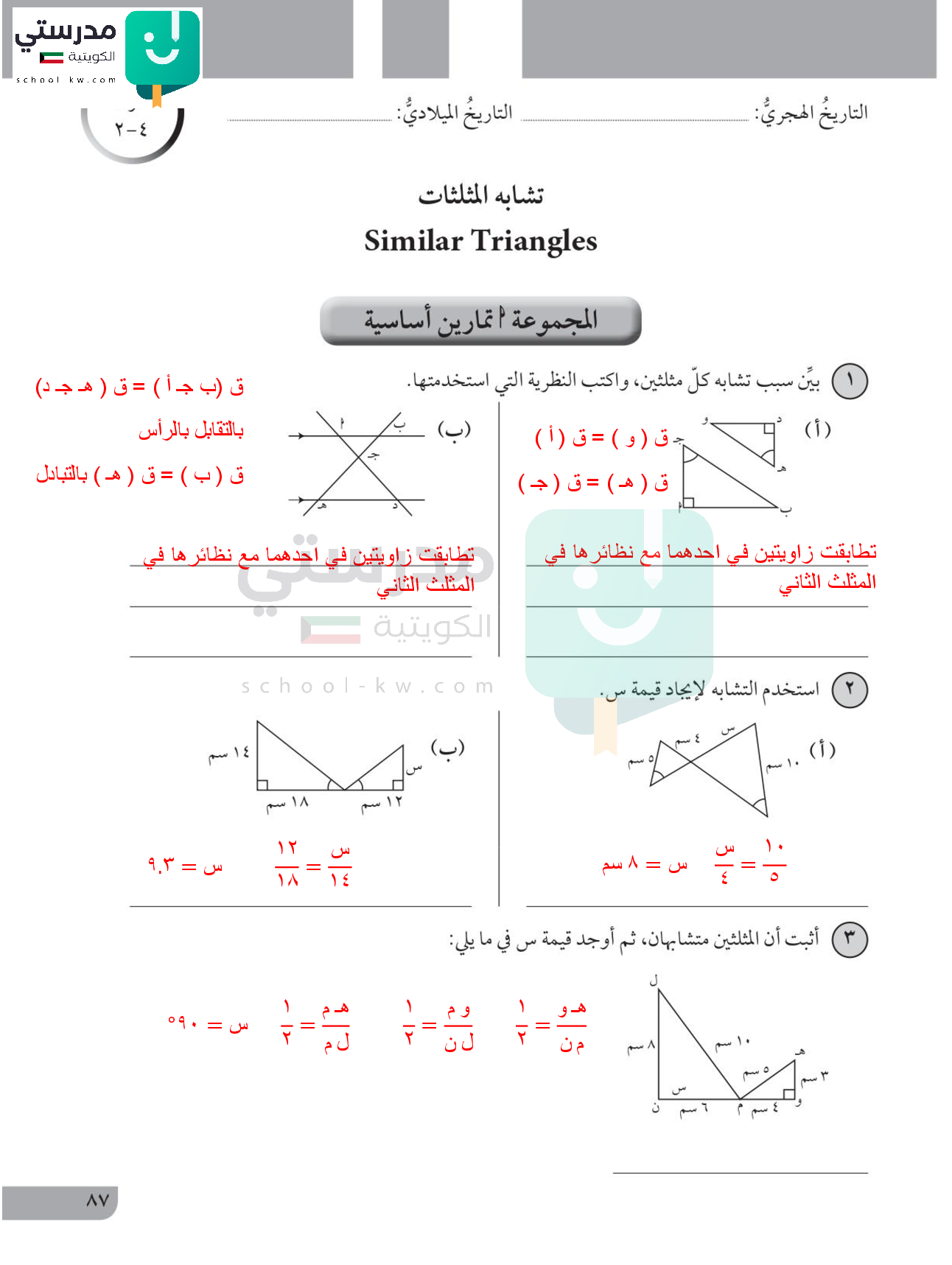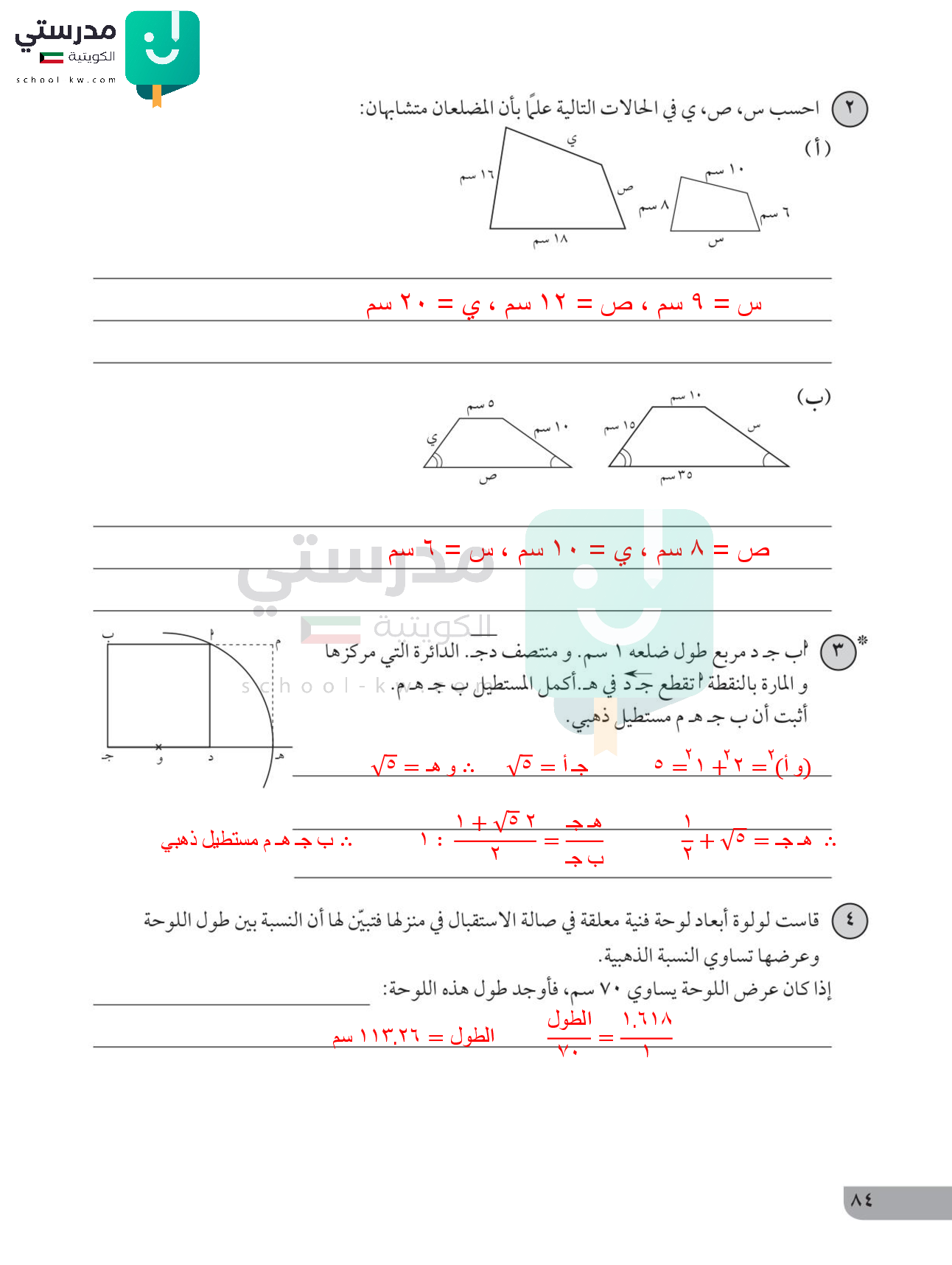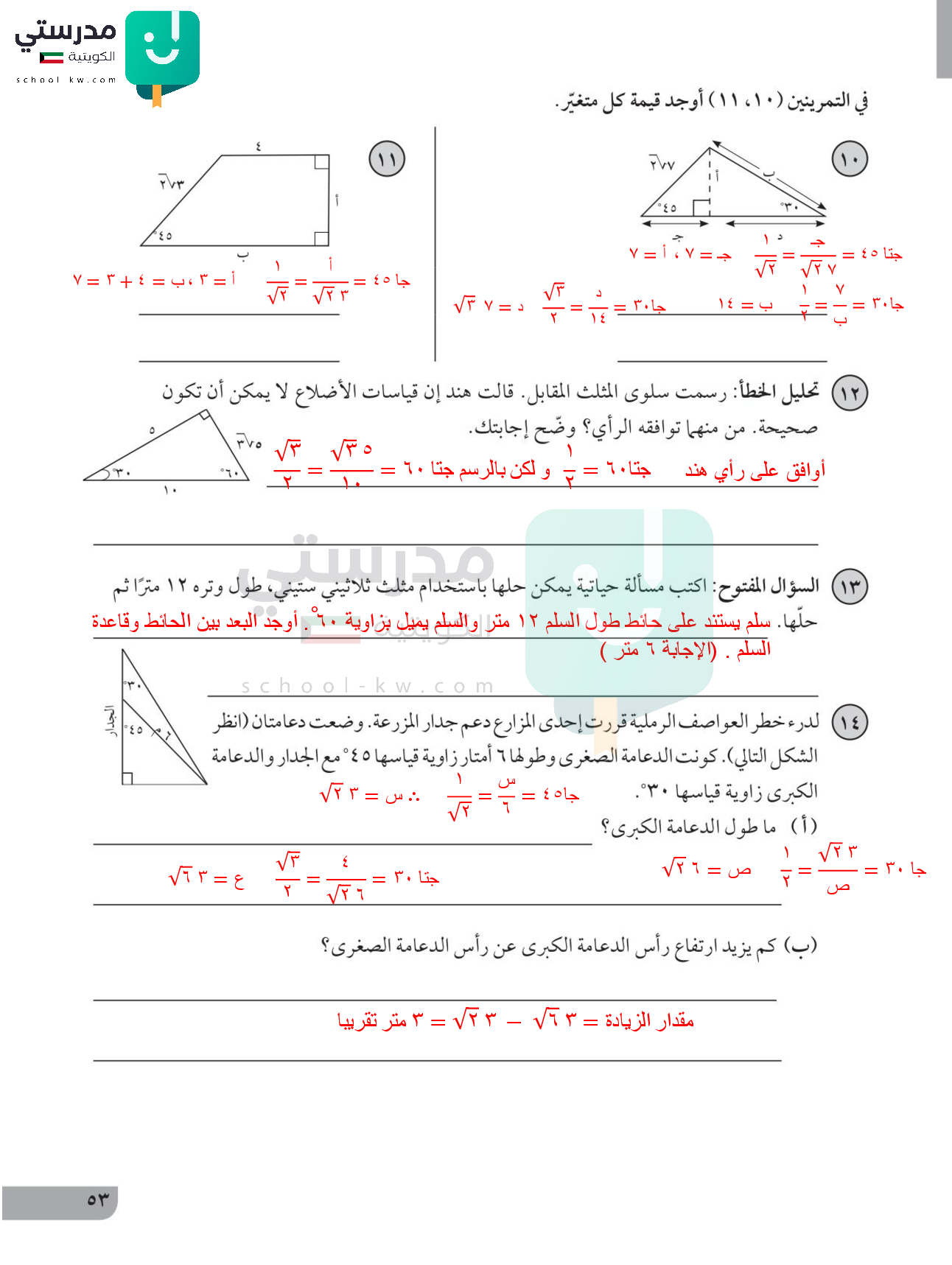 النسب المثلثية: الجيب وجيب التمام ومقلوباتهما