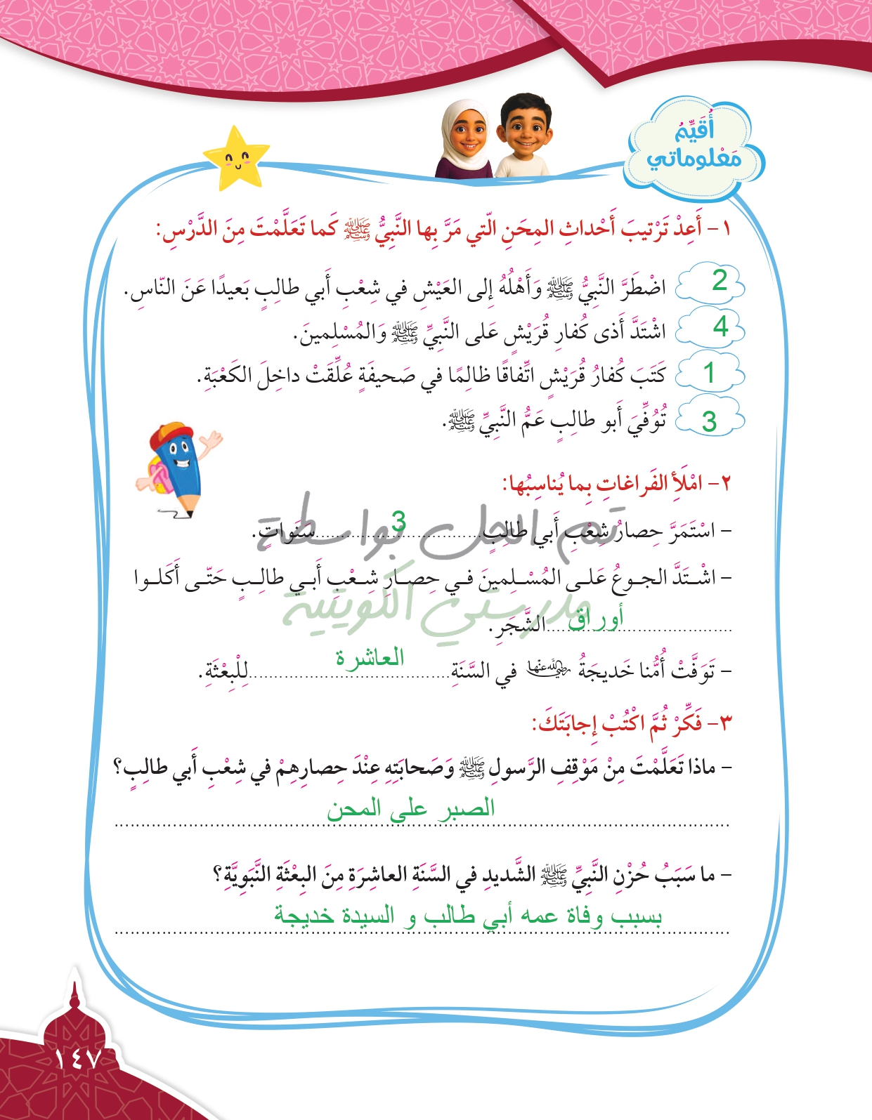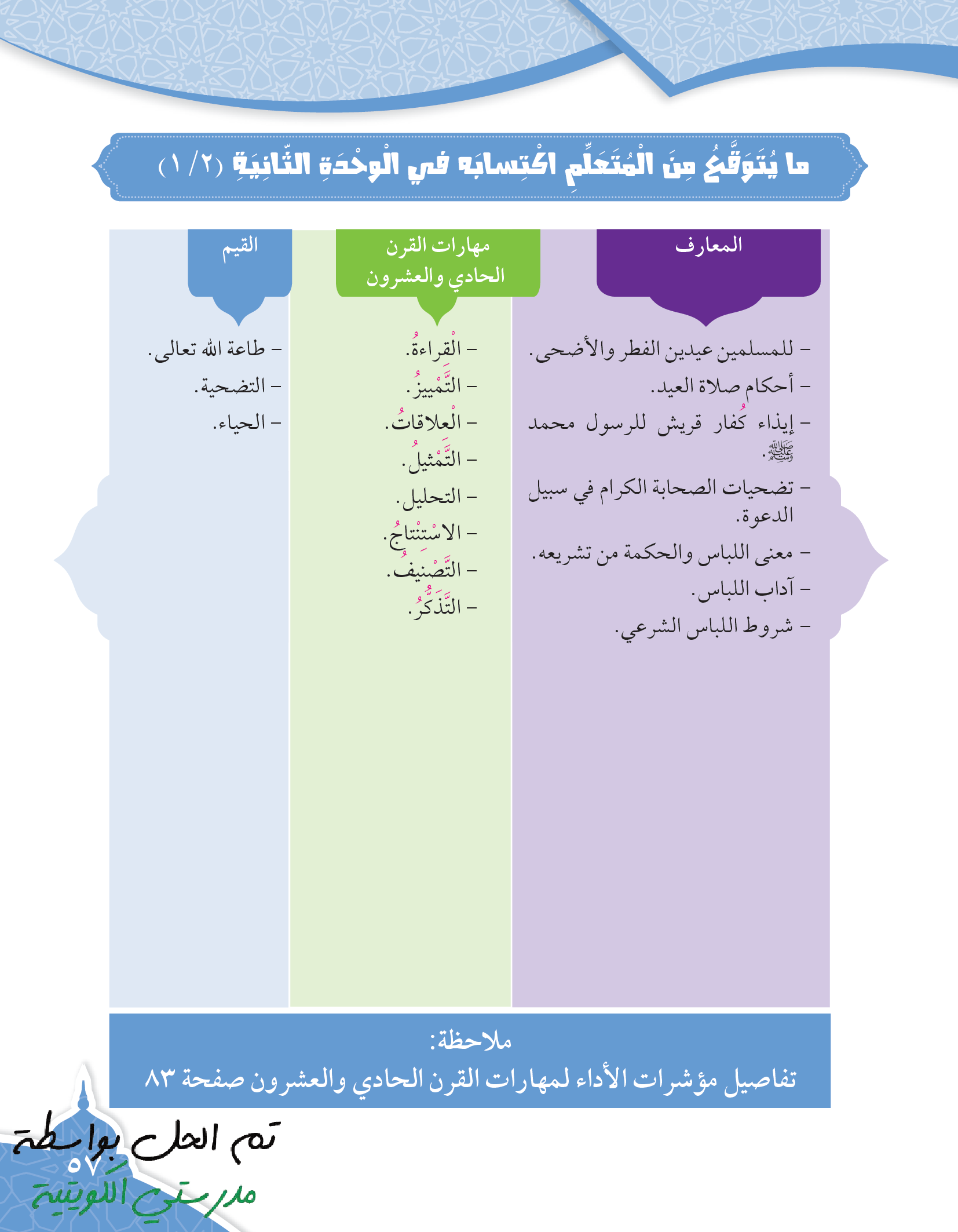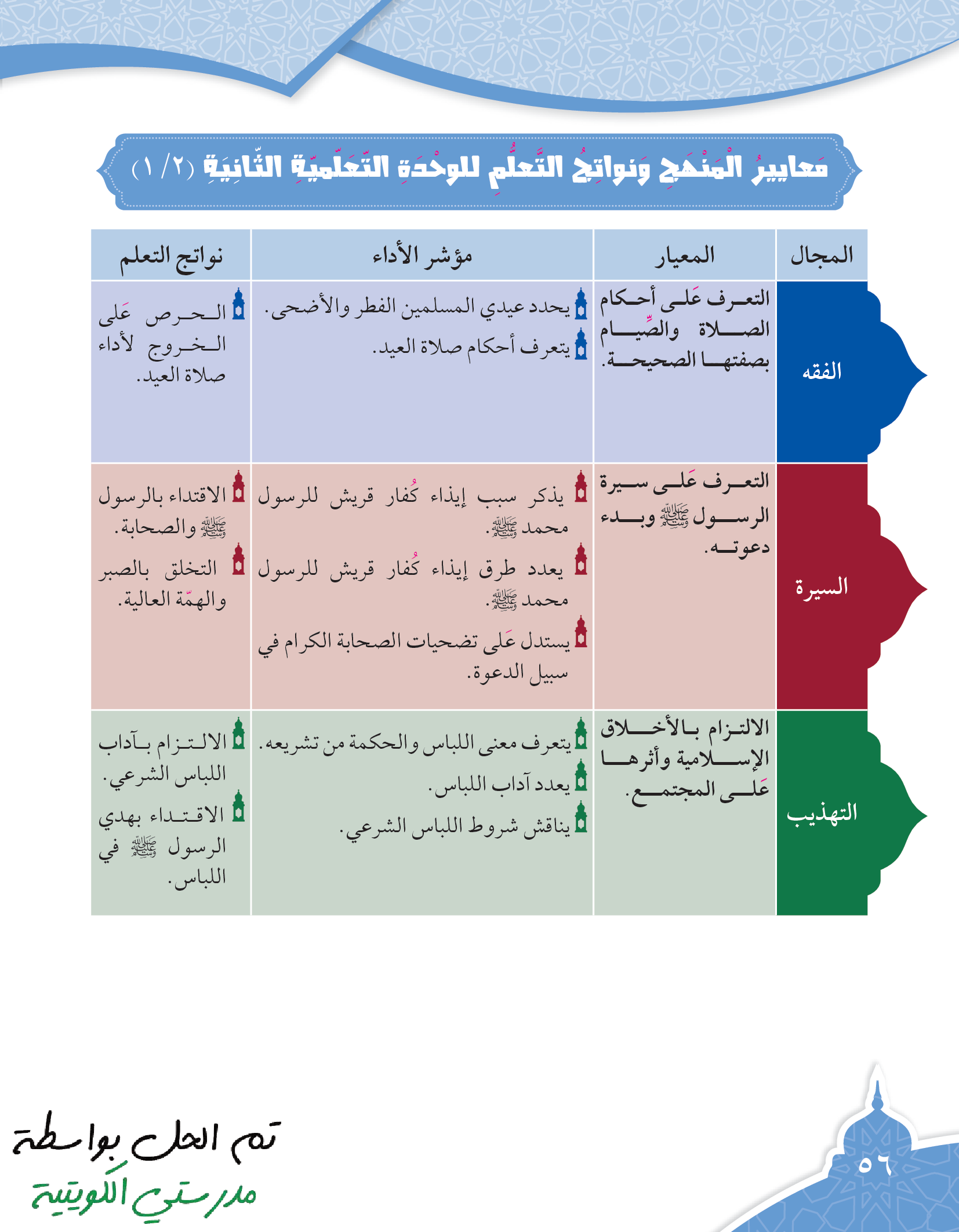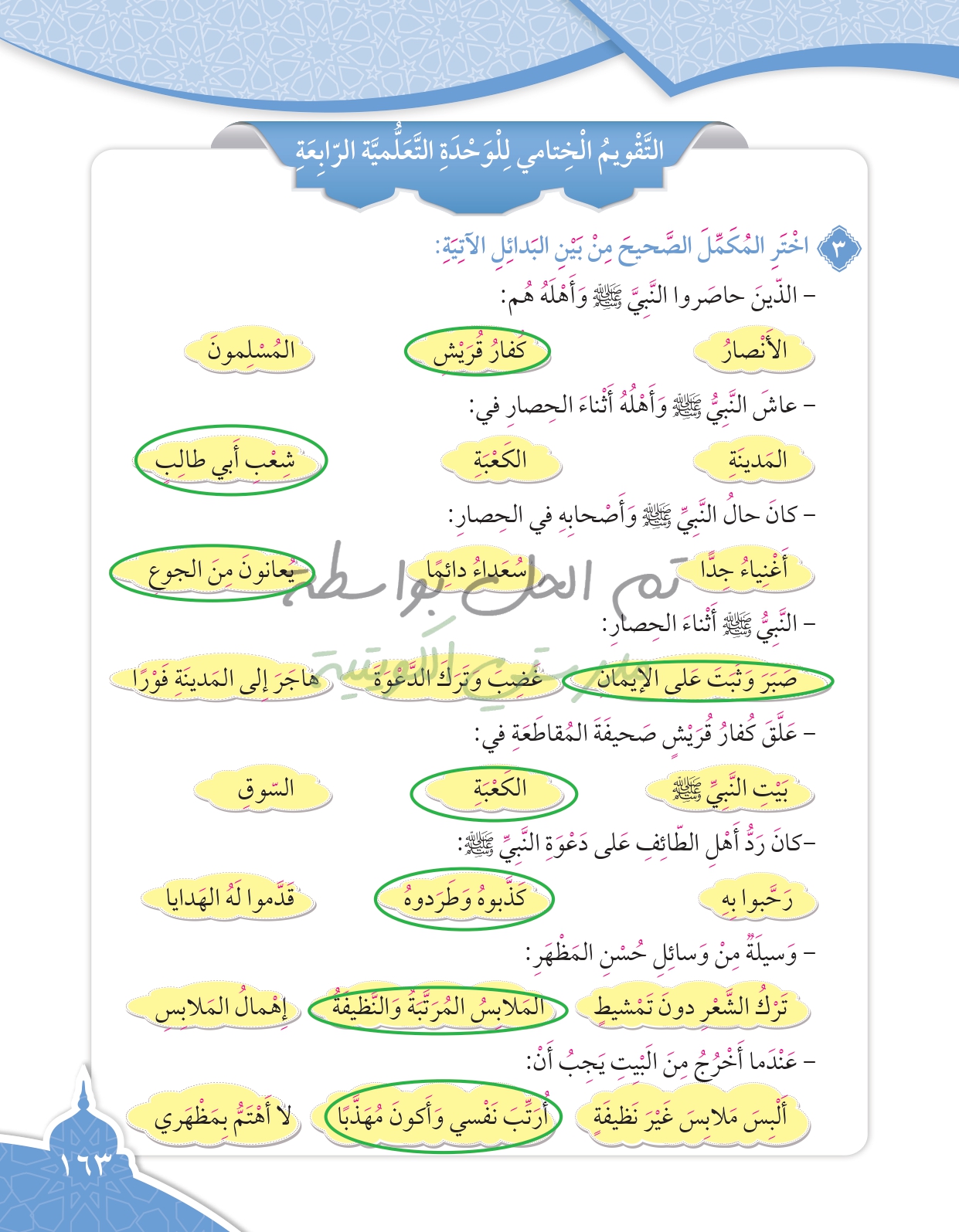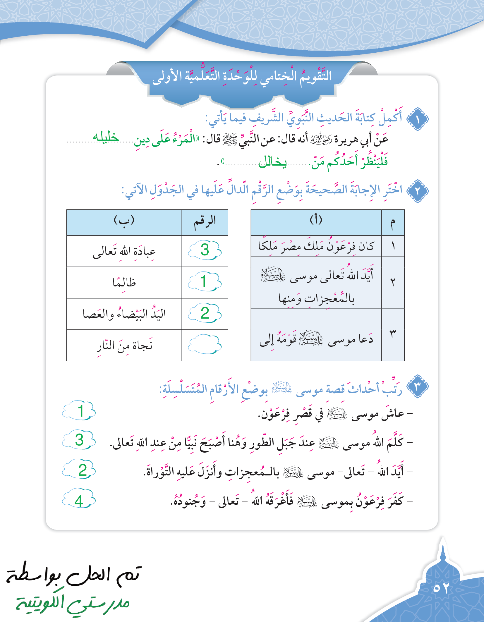 تقويم الوحدة الثالثة