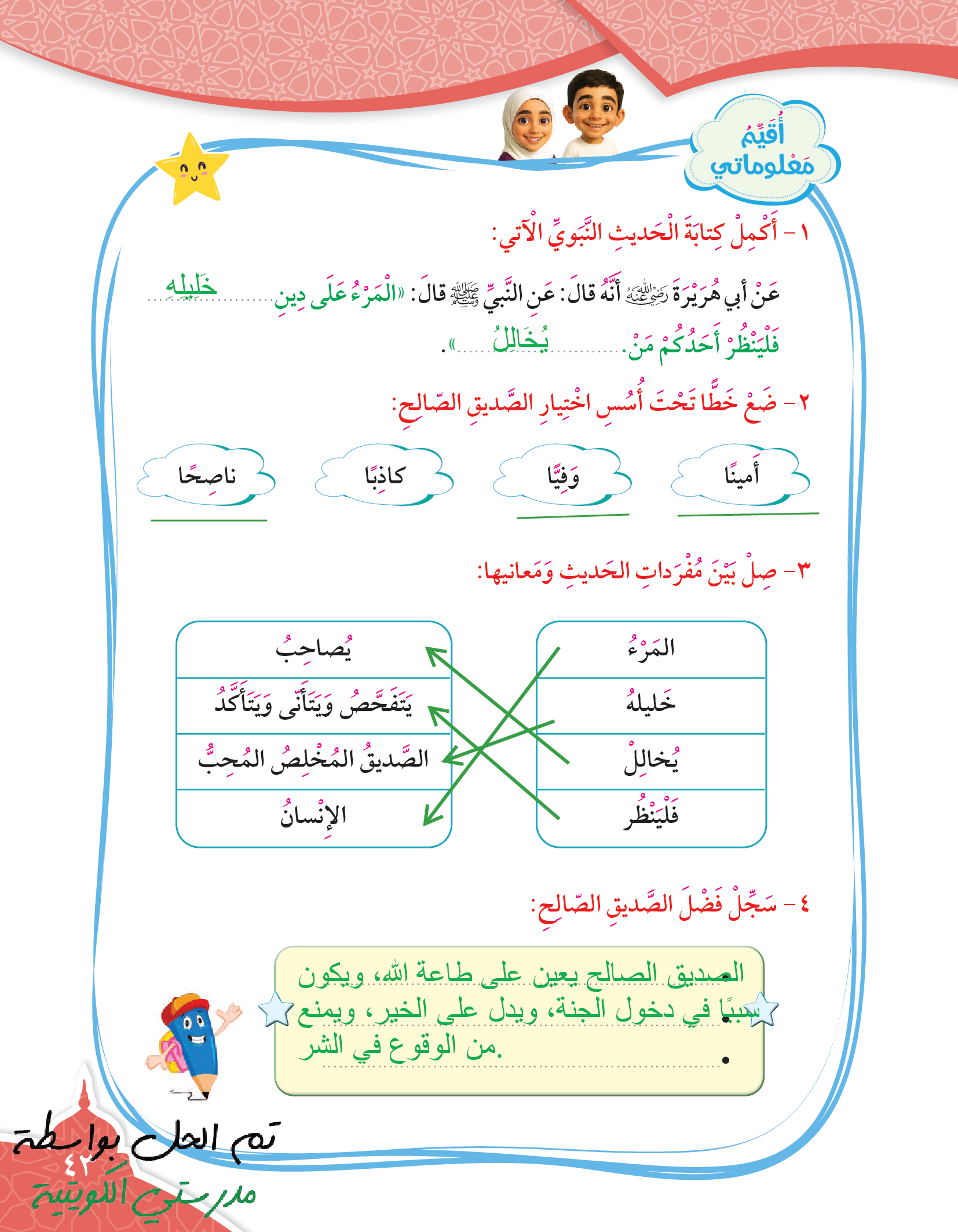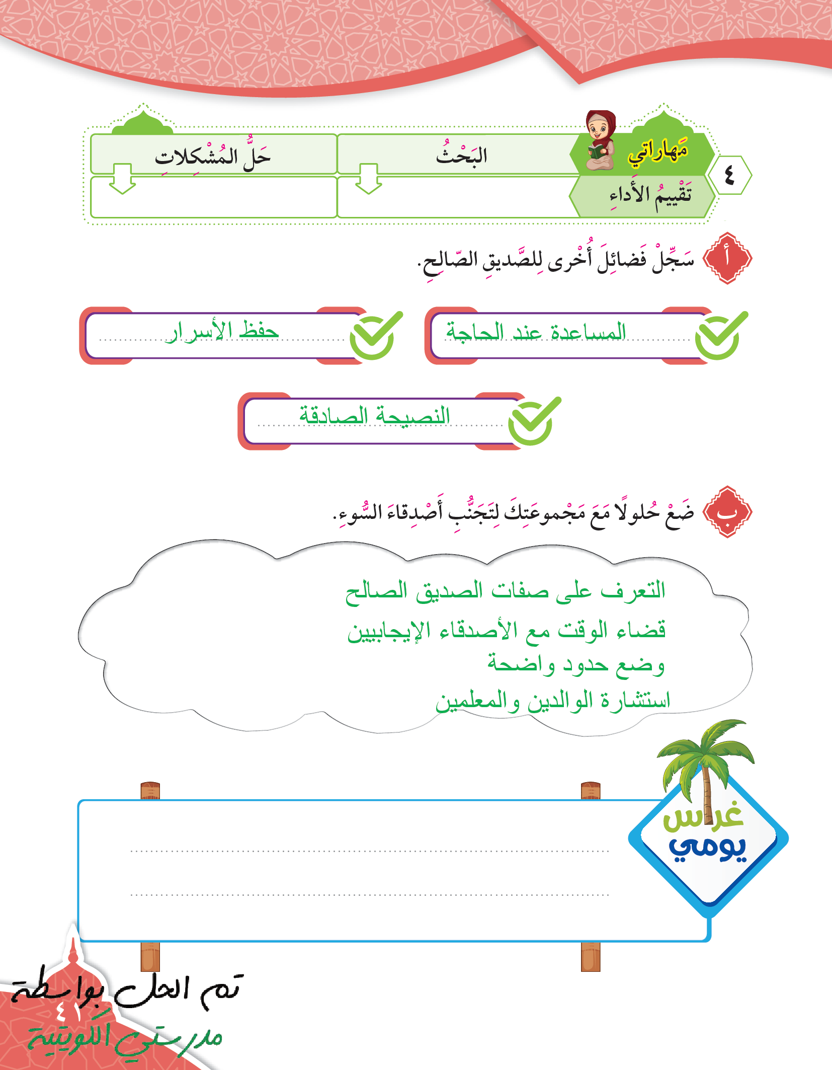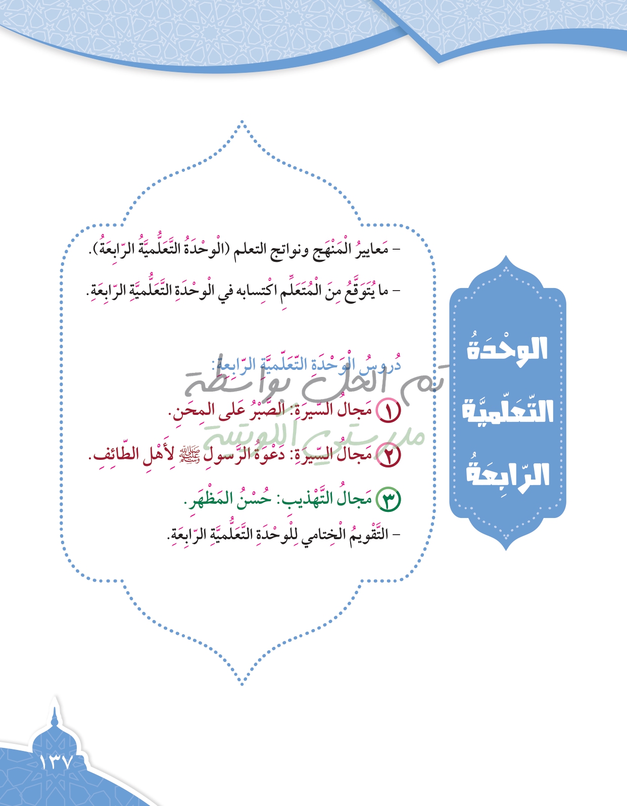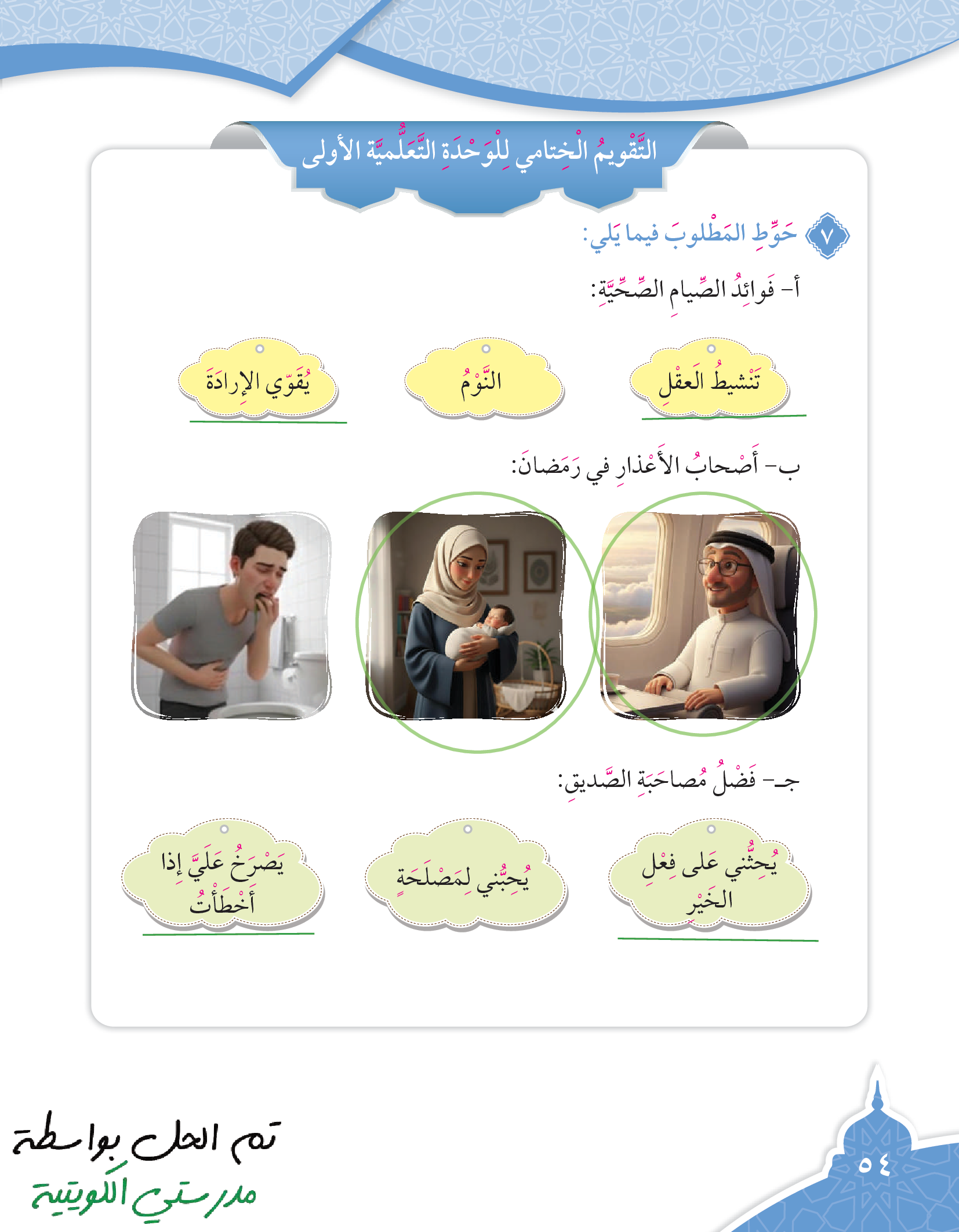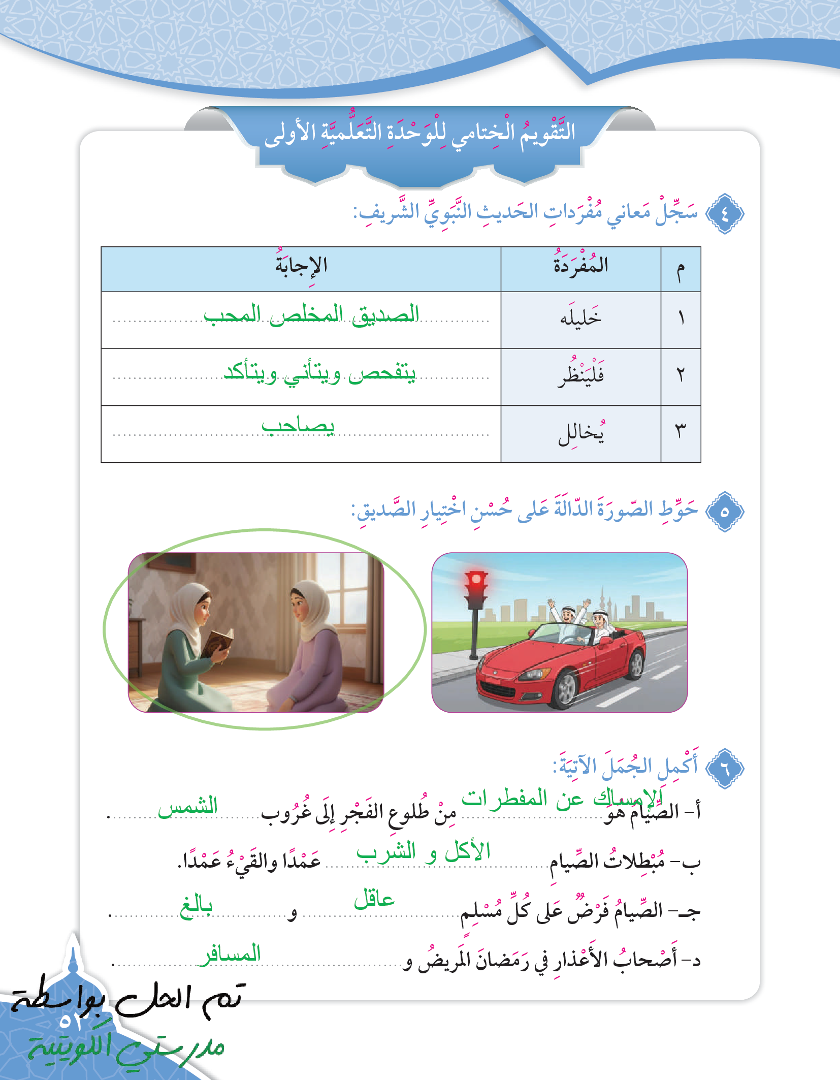 تقويم الوحدة الرابعة