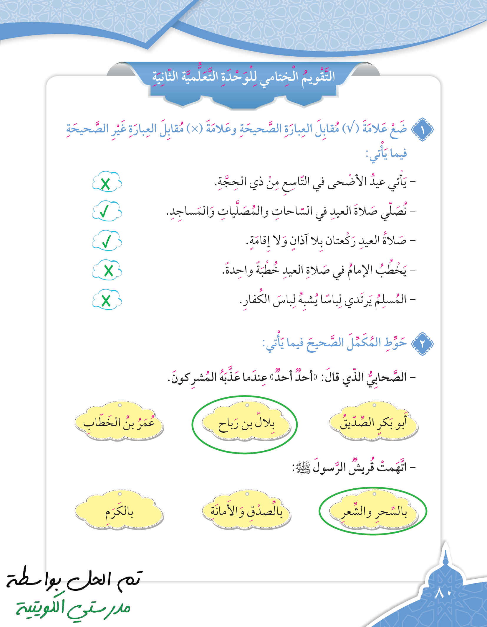 تقويم الوحدة الثانية