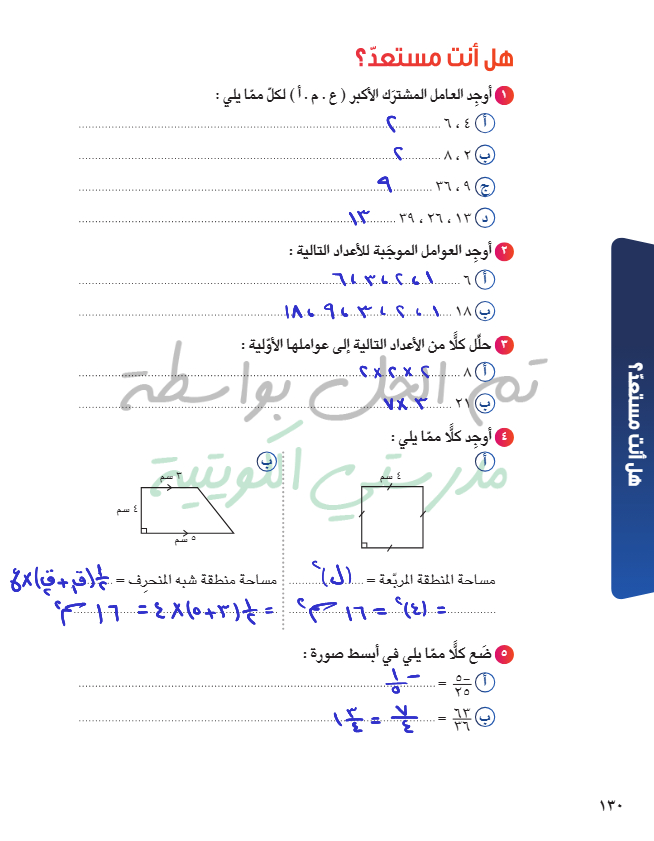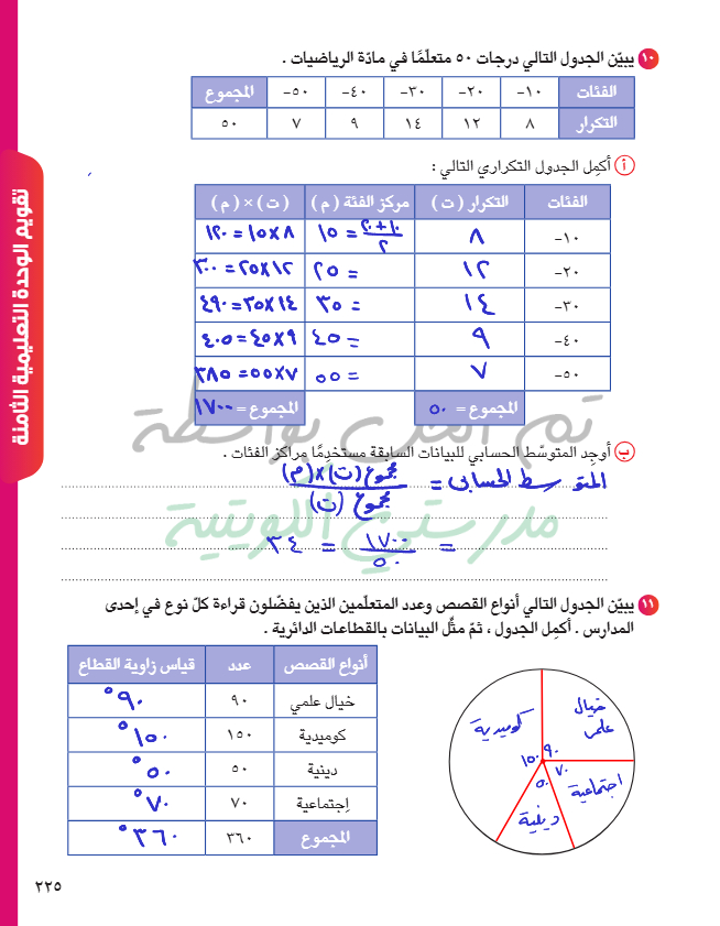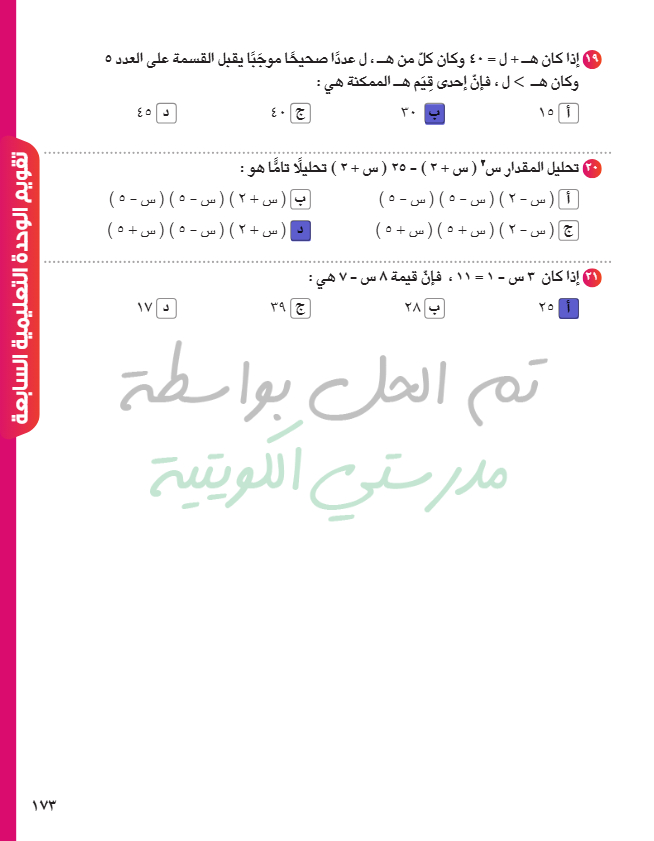 تقويم الوحدة الخامسة