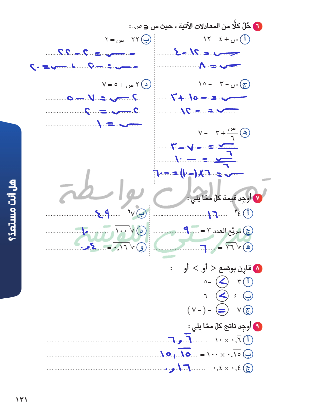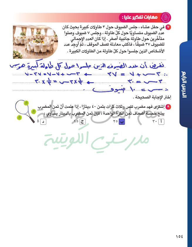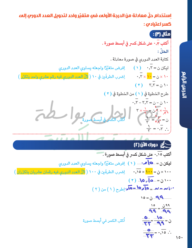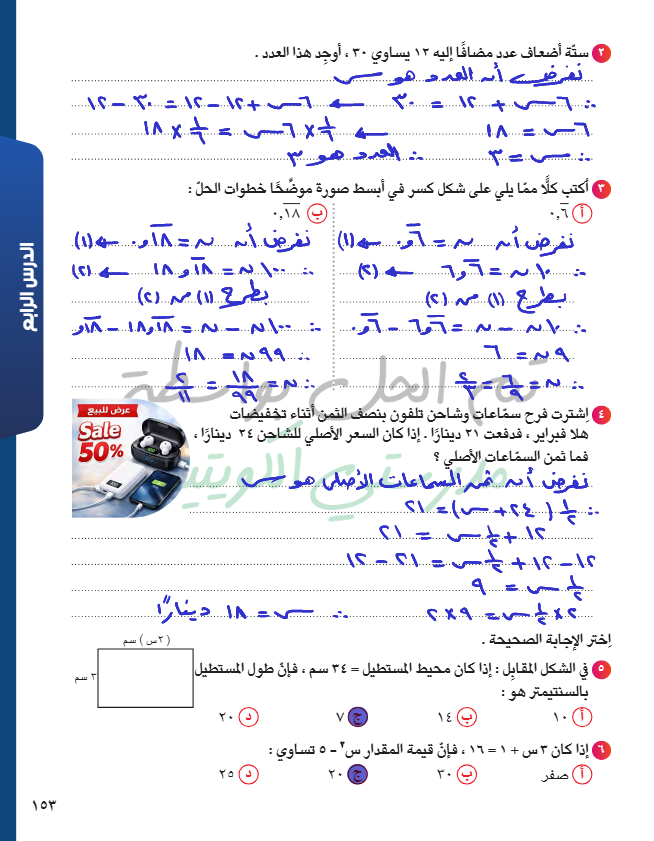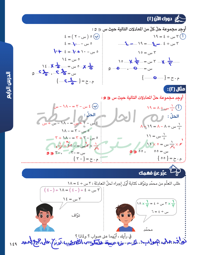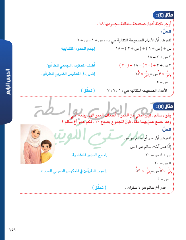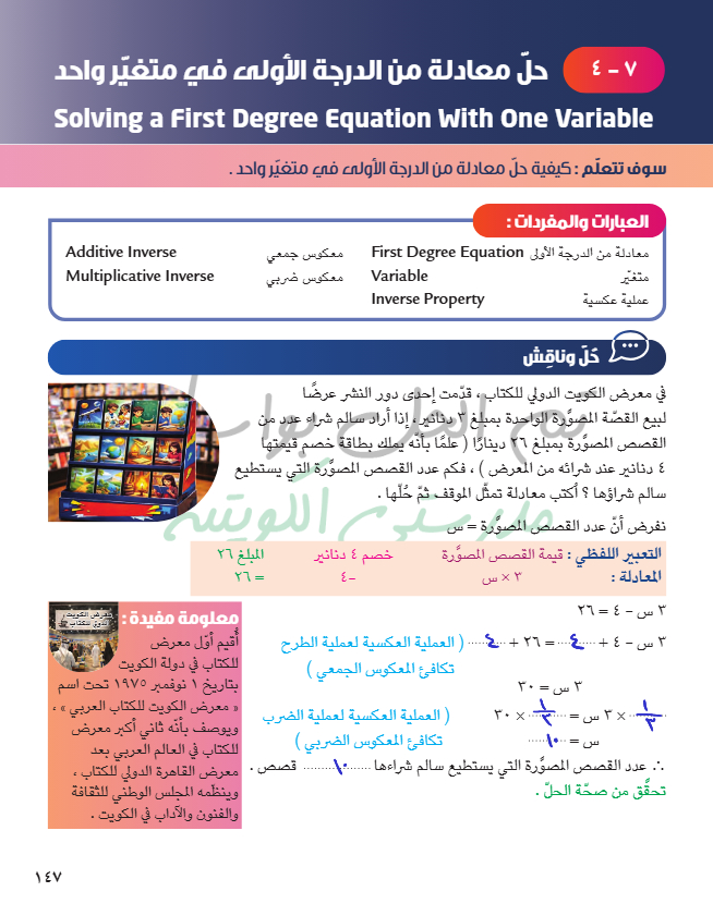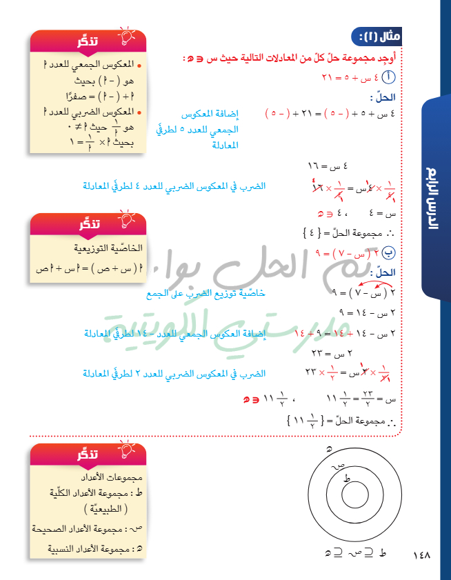 حل معادلة من الدرجة الأولى في متغير واحد
