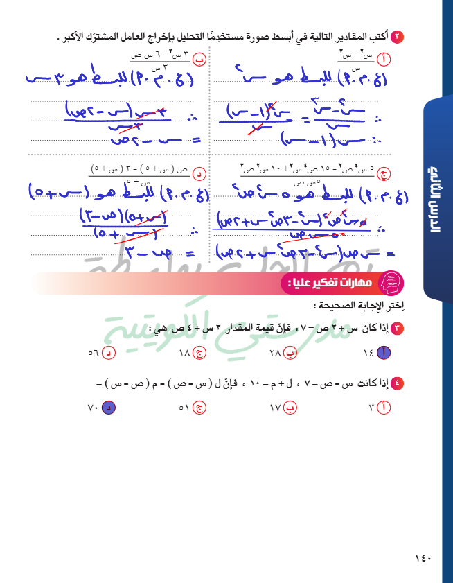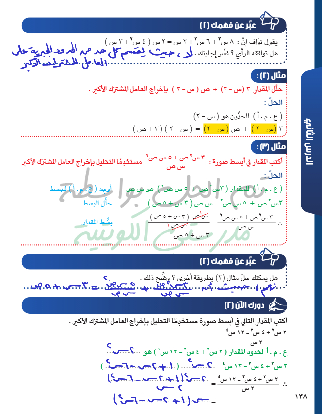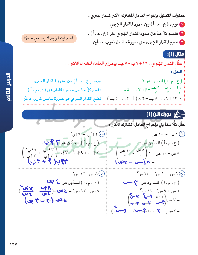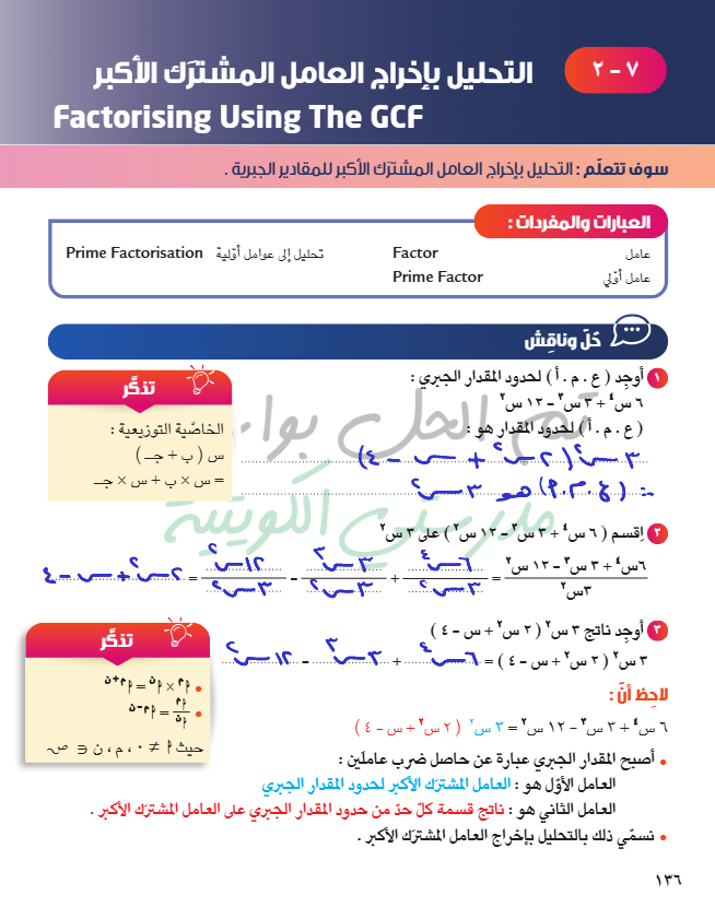 التحليل بإخراج العامل المشترك الأكبر