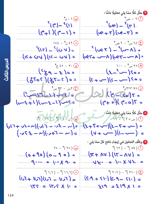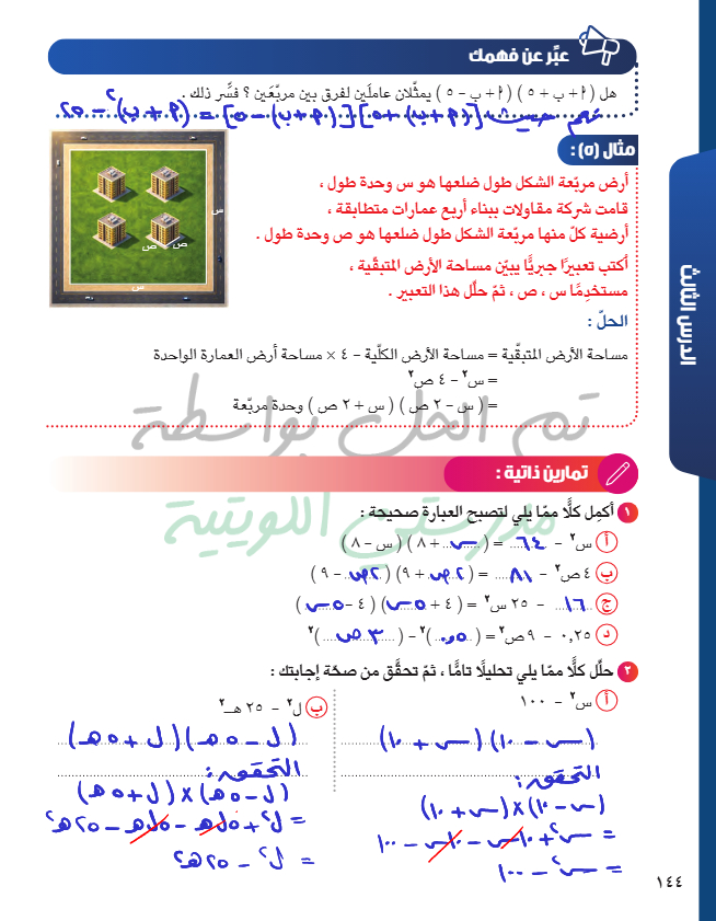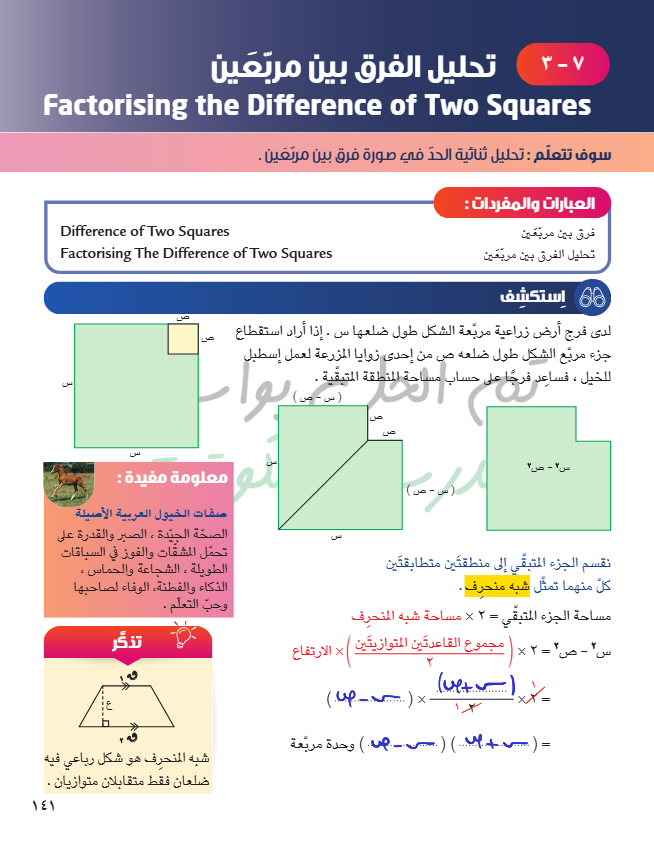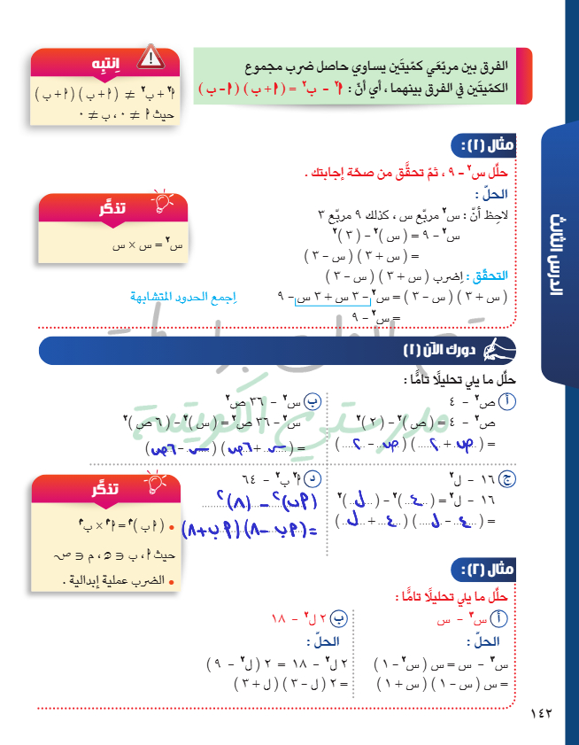 تحليل الفرق بين مربعين