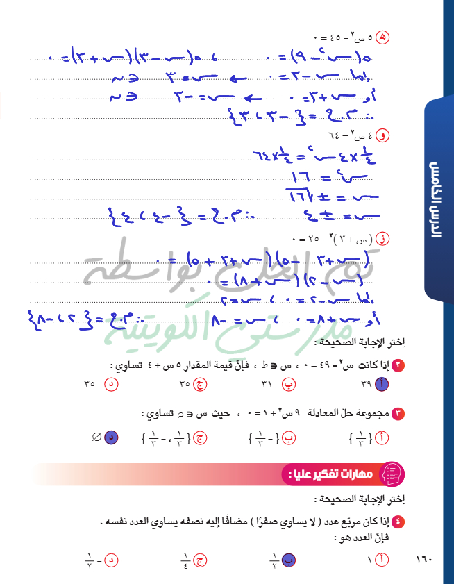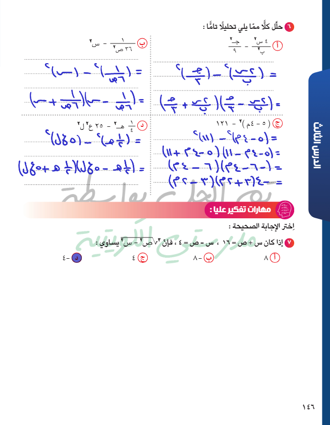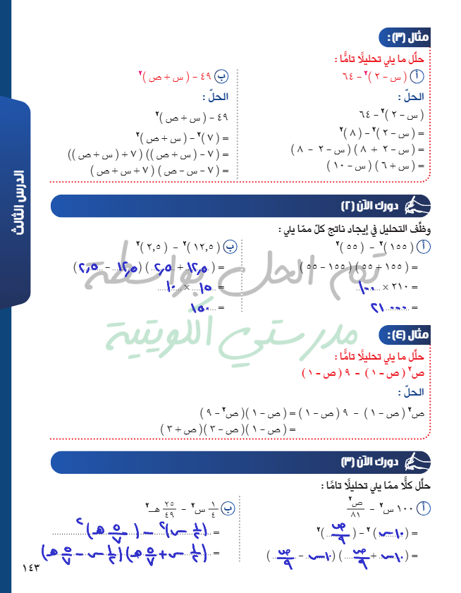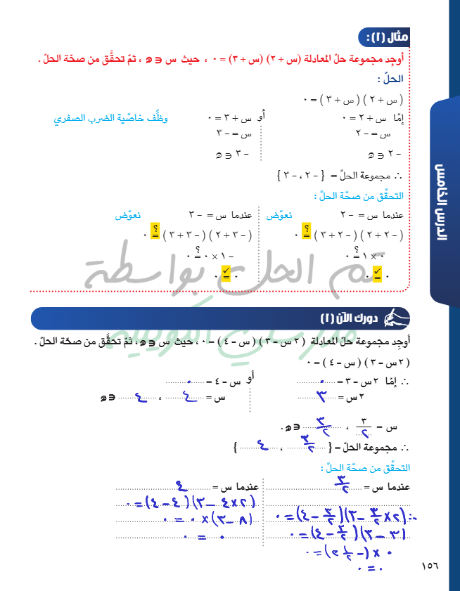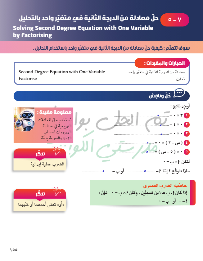 حل معادلة من الدرجة الثانية في متغير واحد بالتحليل