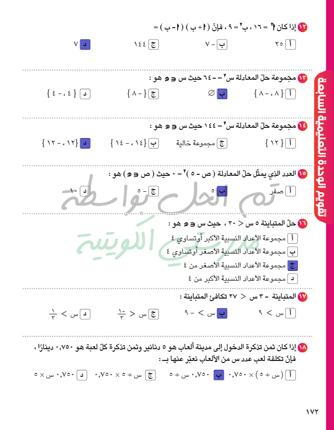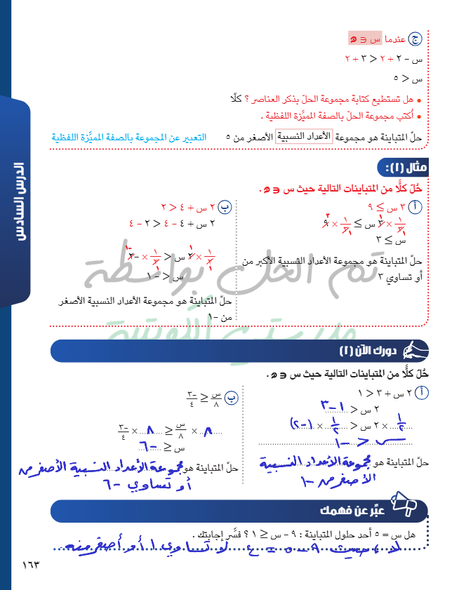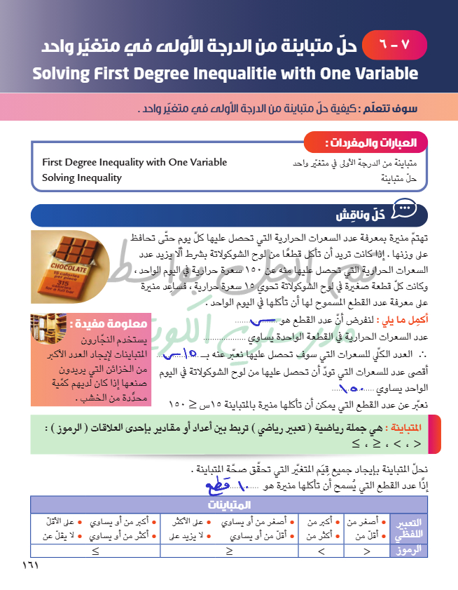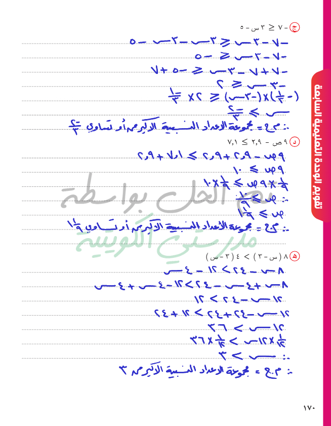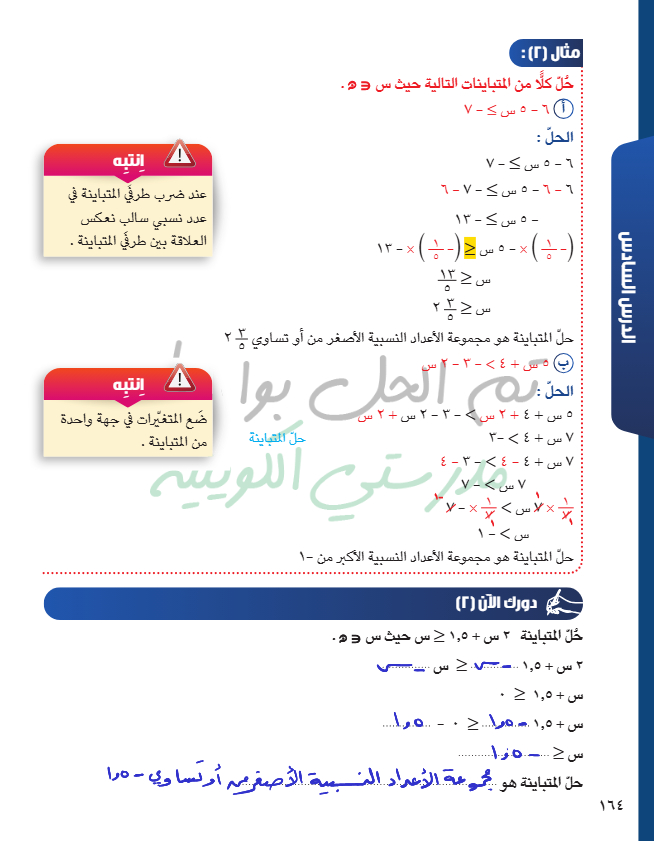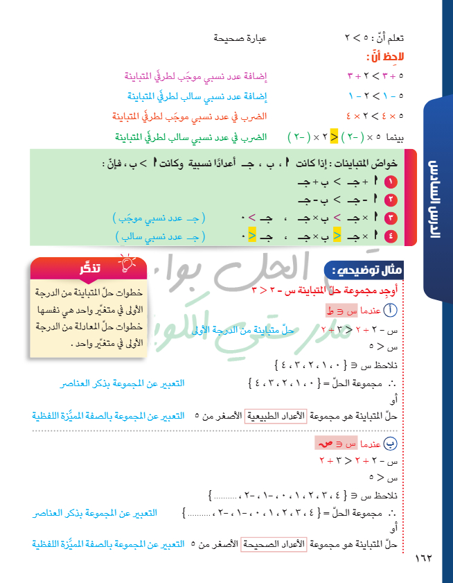 حل متباينة من الدرجة الأولى في متغير واحد