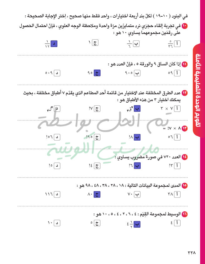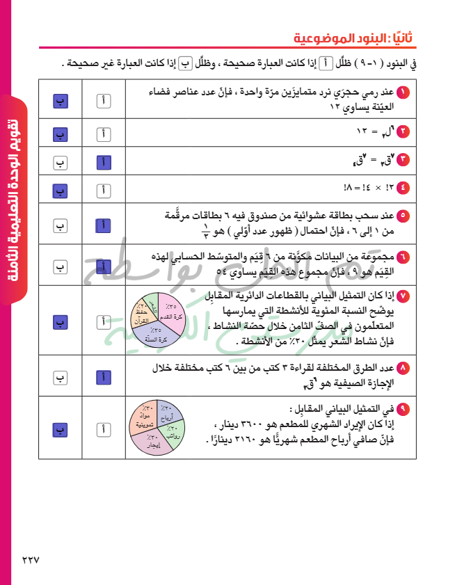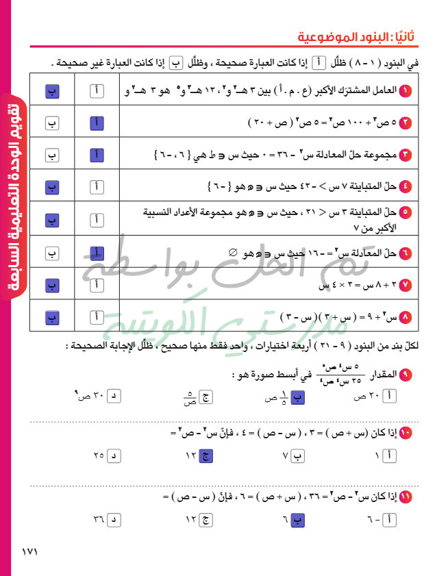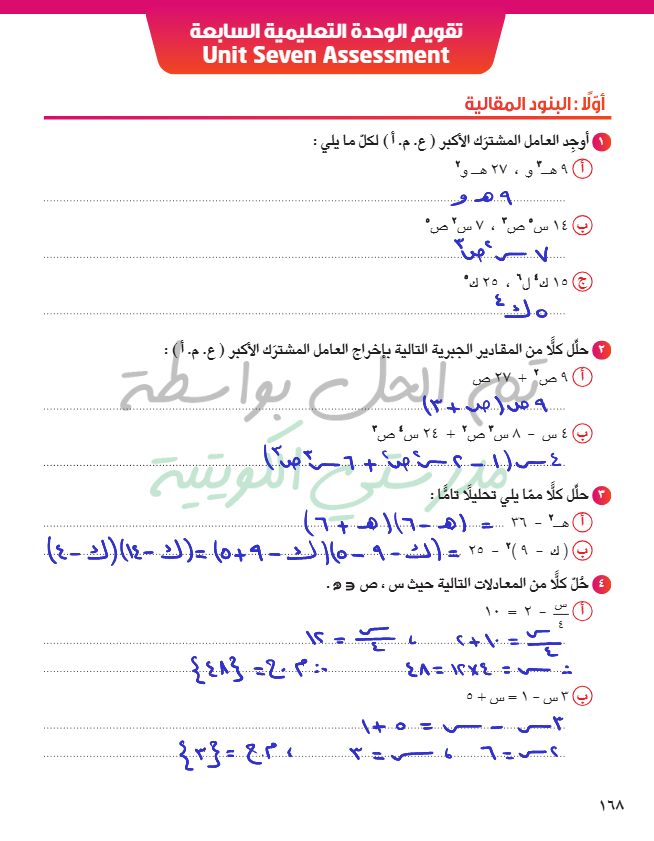 تقويم الوحدة السابعة