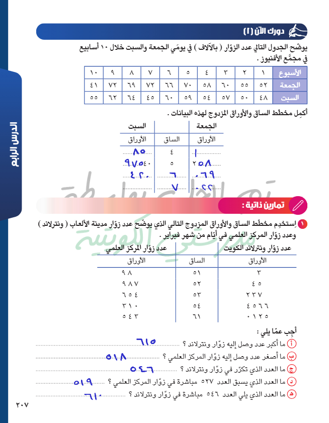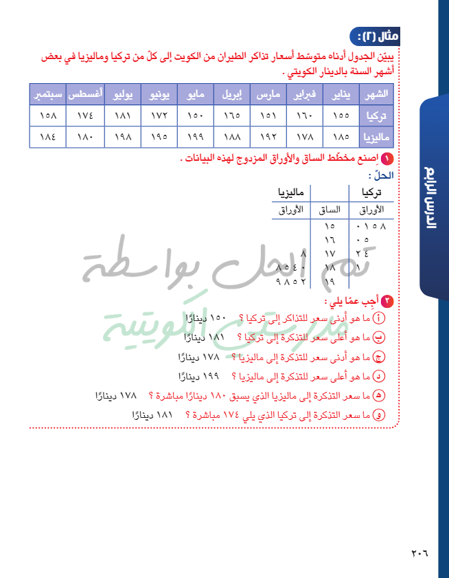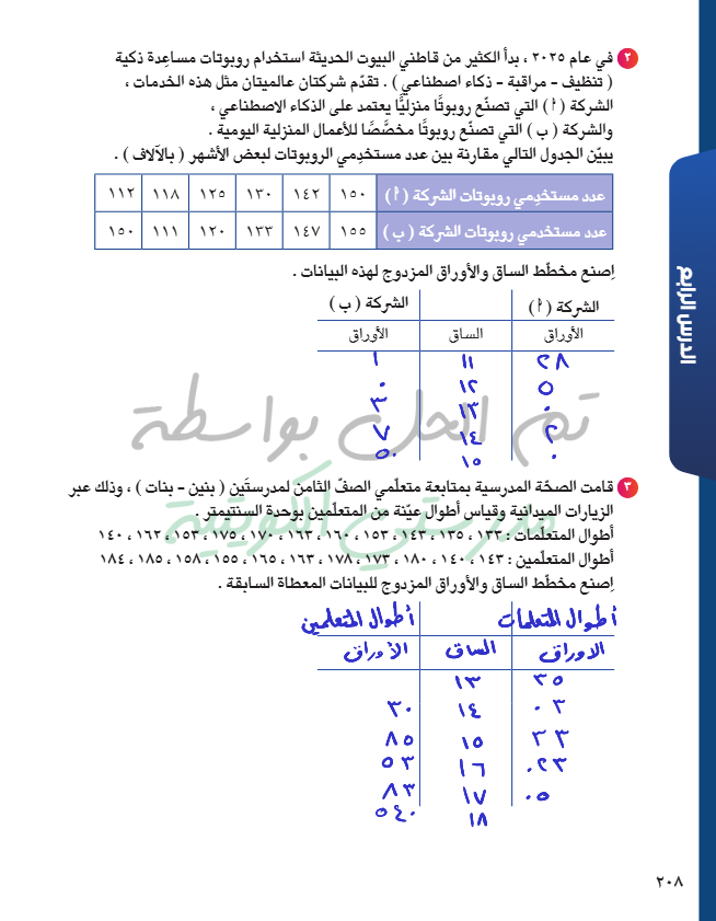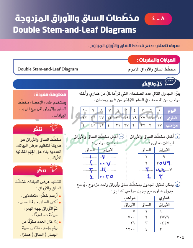 مخططات الساق والأوراق المزدوجة