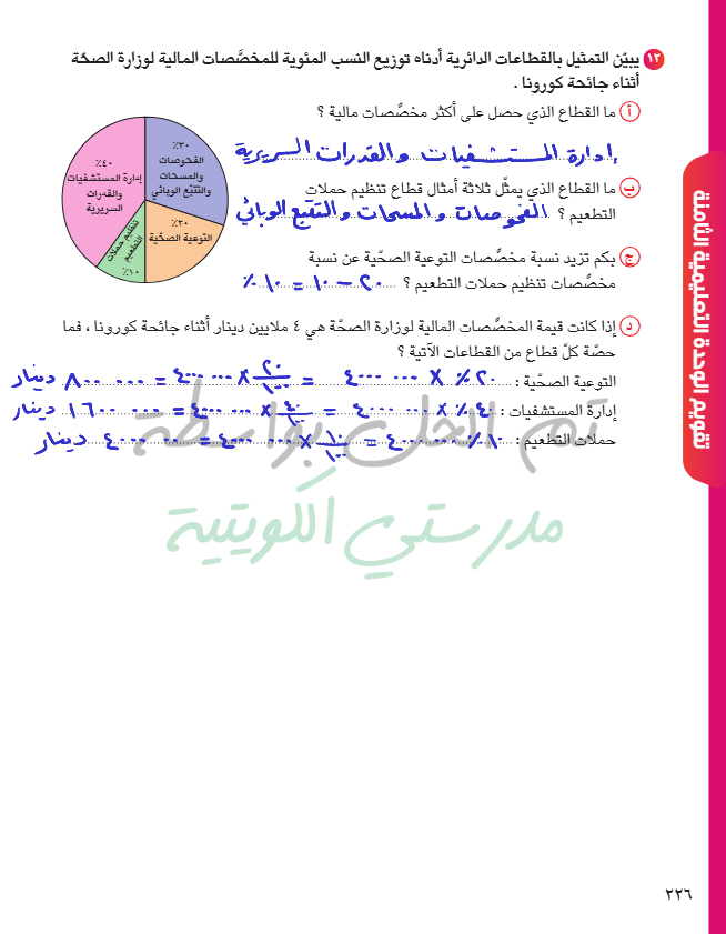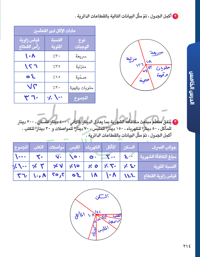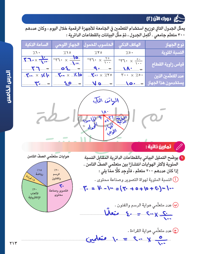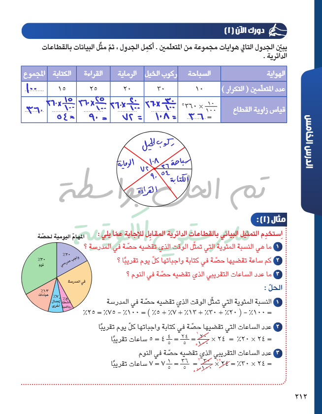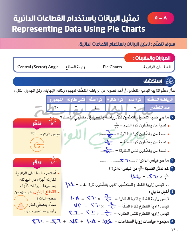 تمثيل البيانات باستخدام القطاعات الدائرية