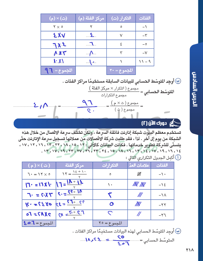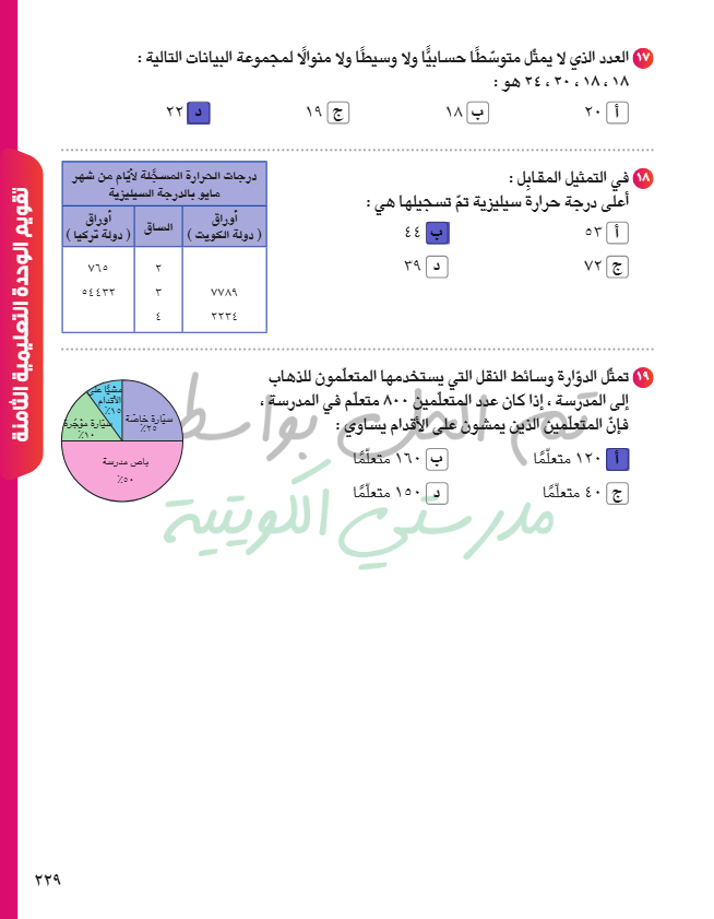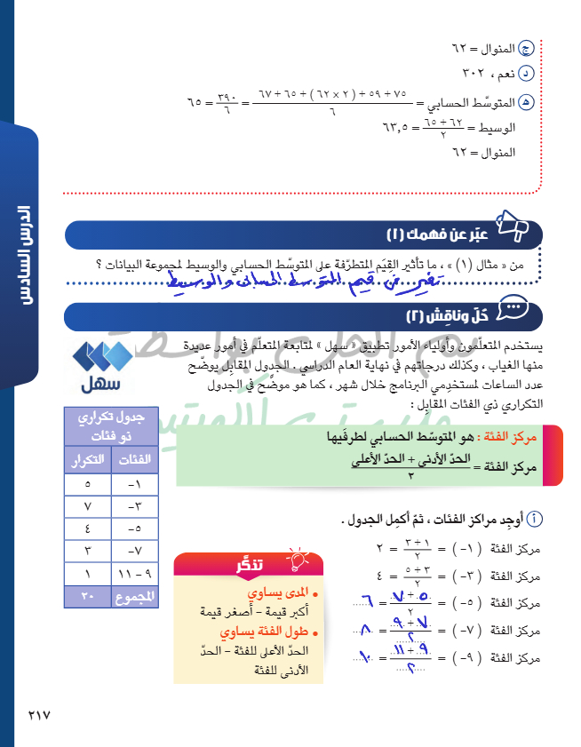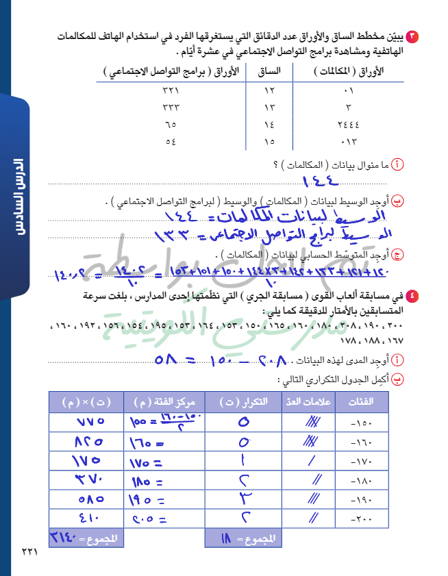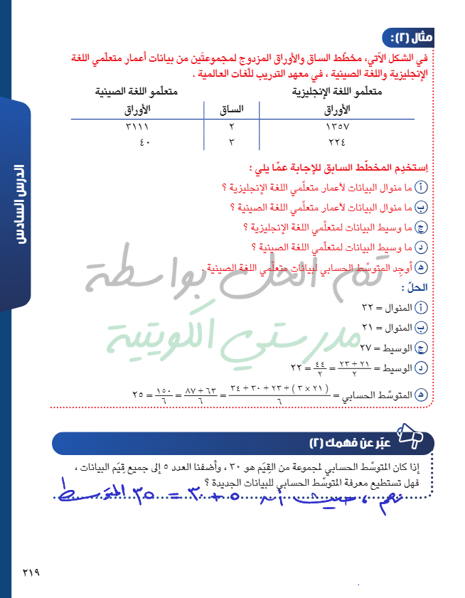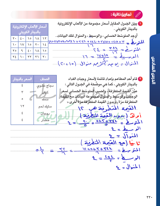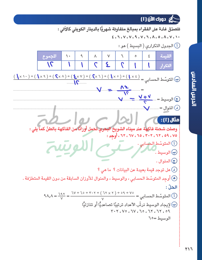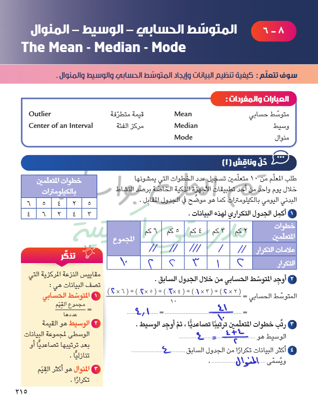 المتوسط الحسابي - الوسيط - المنوال