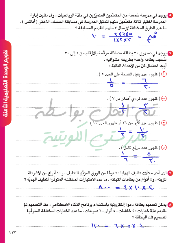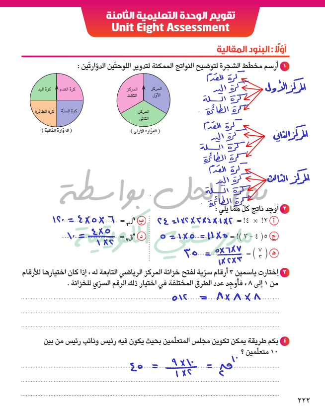 تقويم الوحدة الثامنة