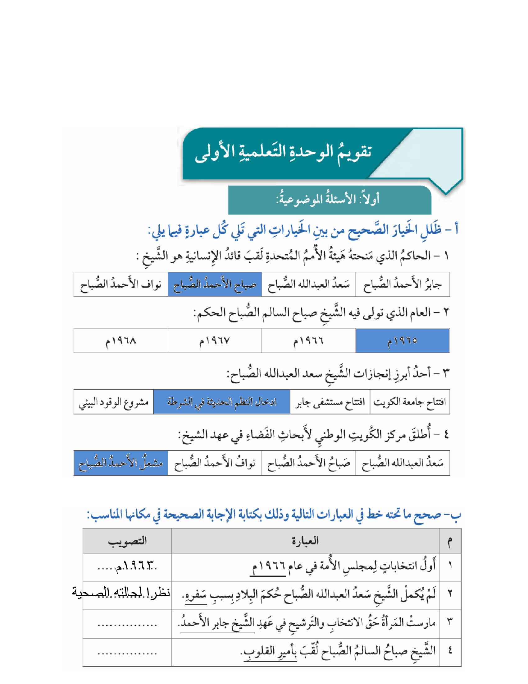 تقويم الوحدة الأولى