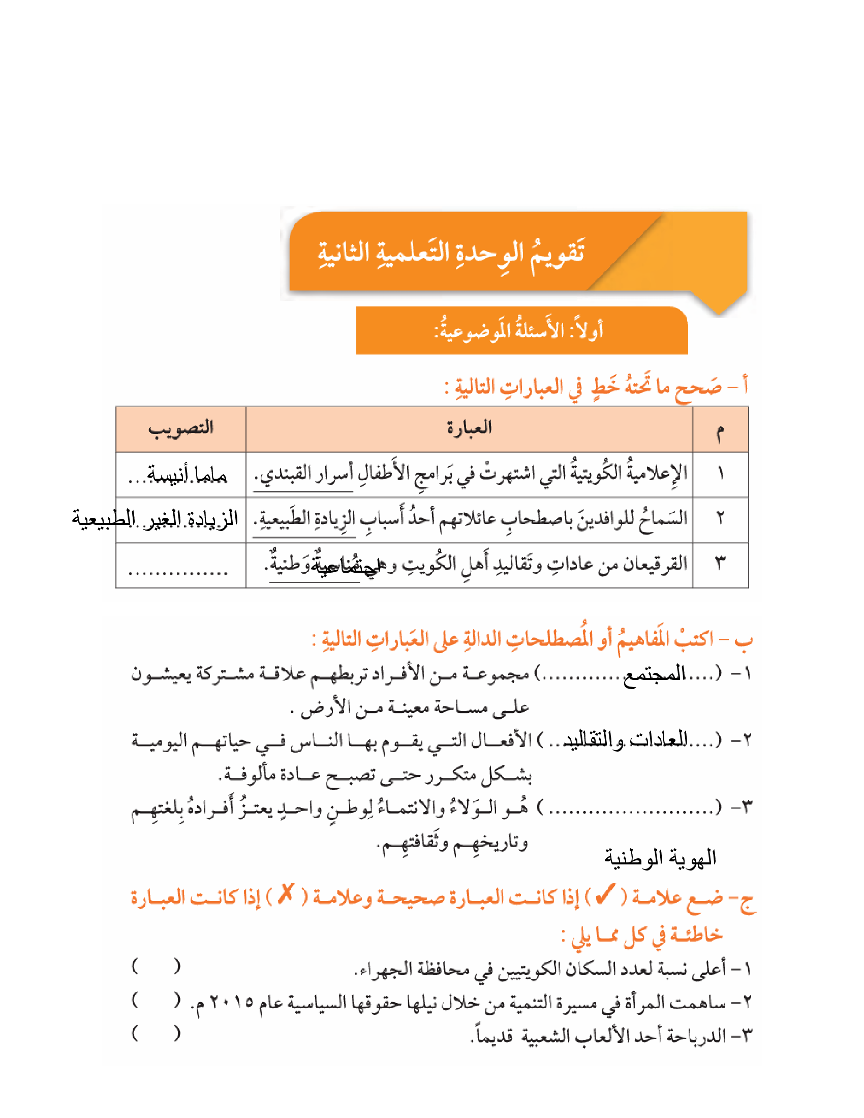 تقويم الوحدة الثانية