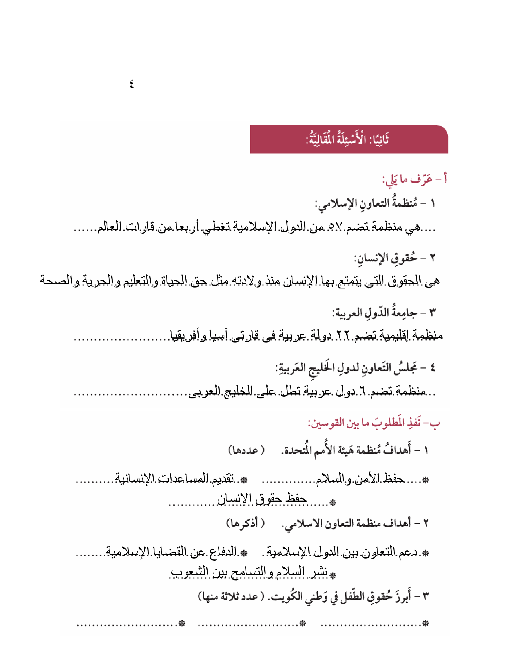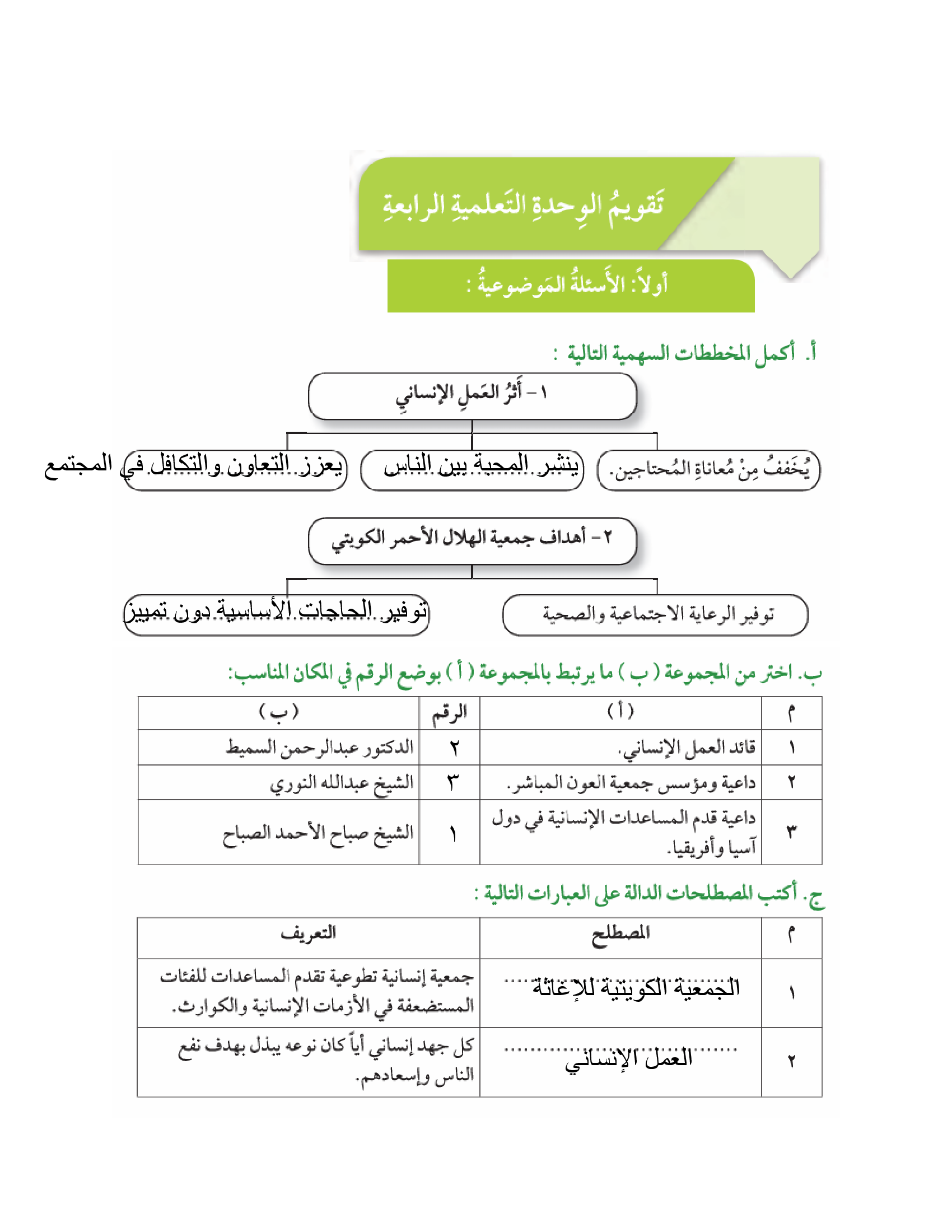 تقويم الوحدة الرابعة