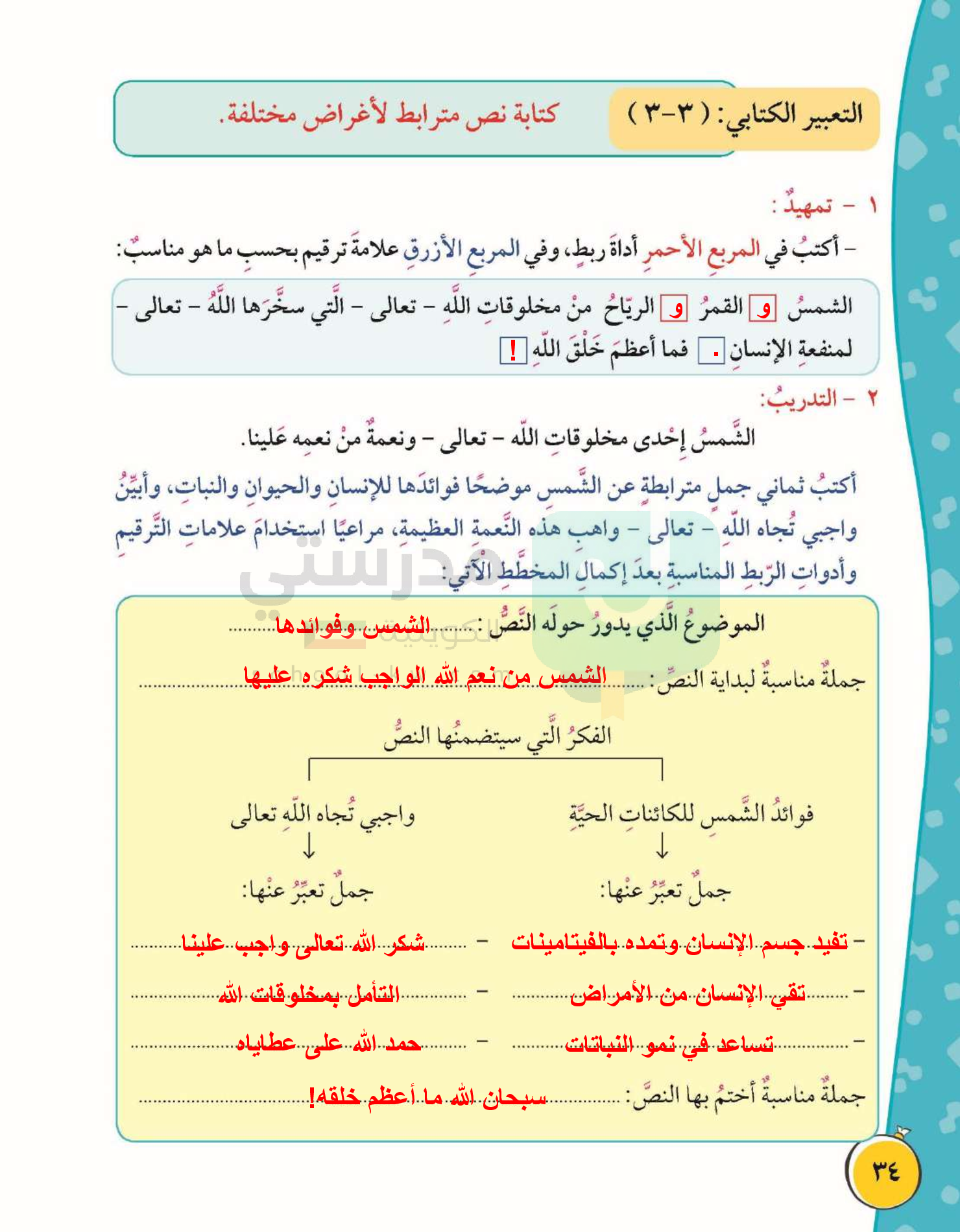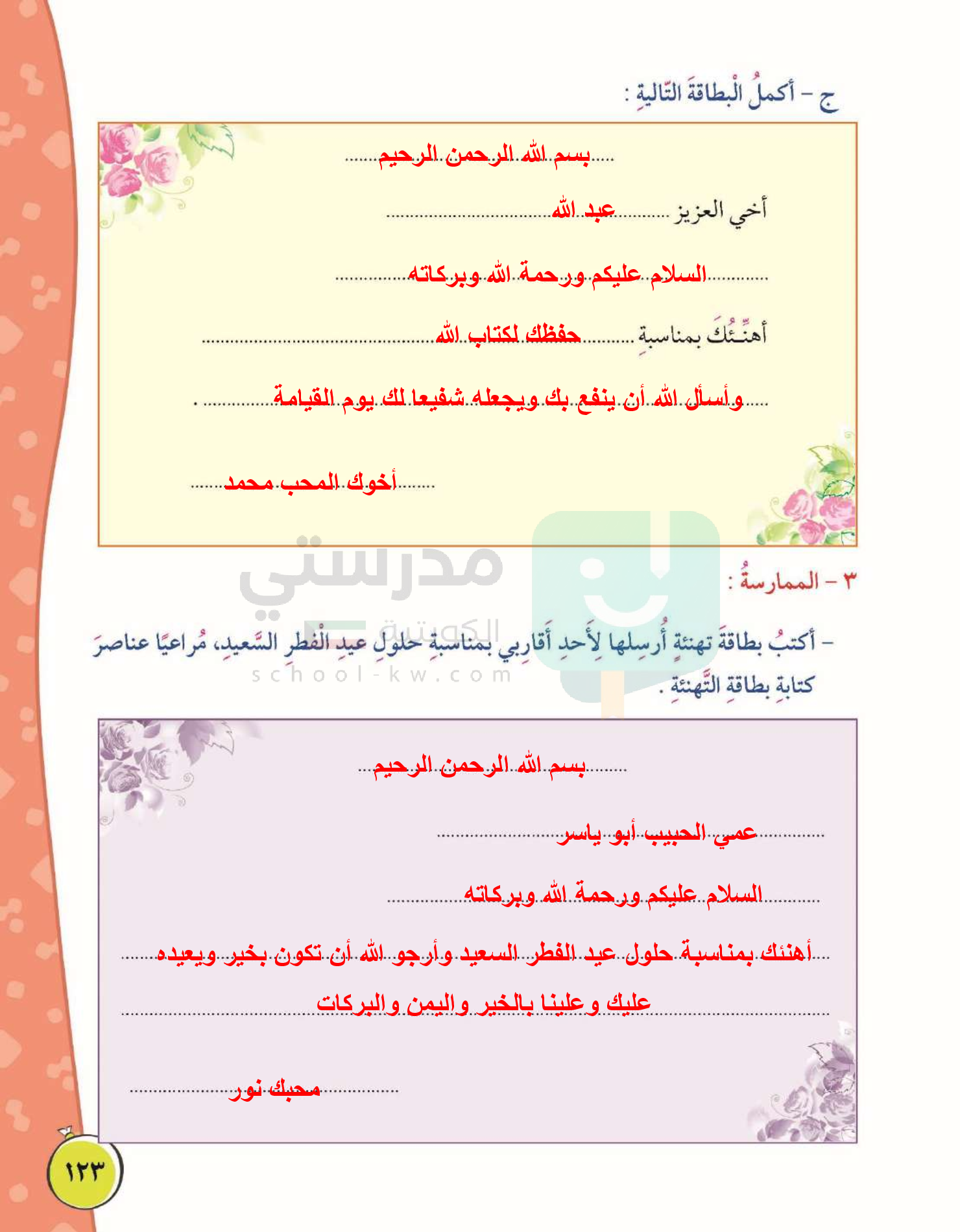 كتابة نص مترابط لأغراض مختلفة (بطاقة تهنئة)