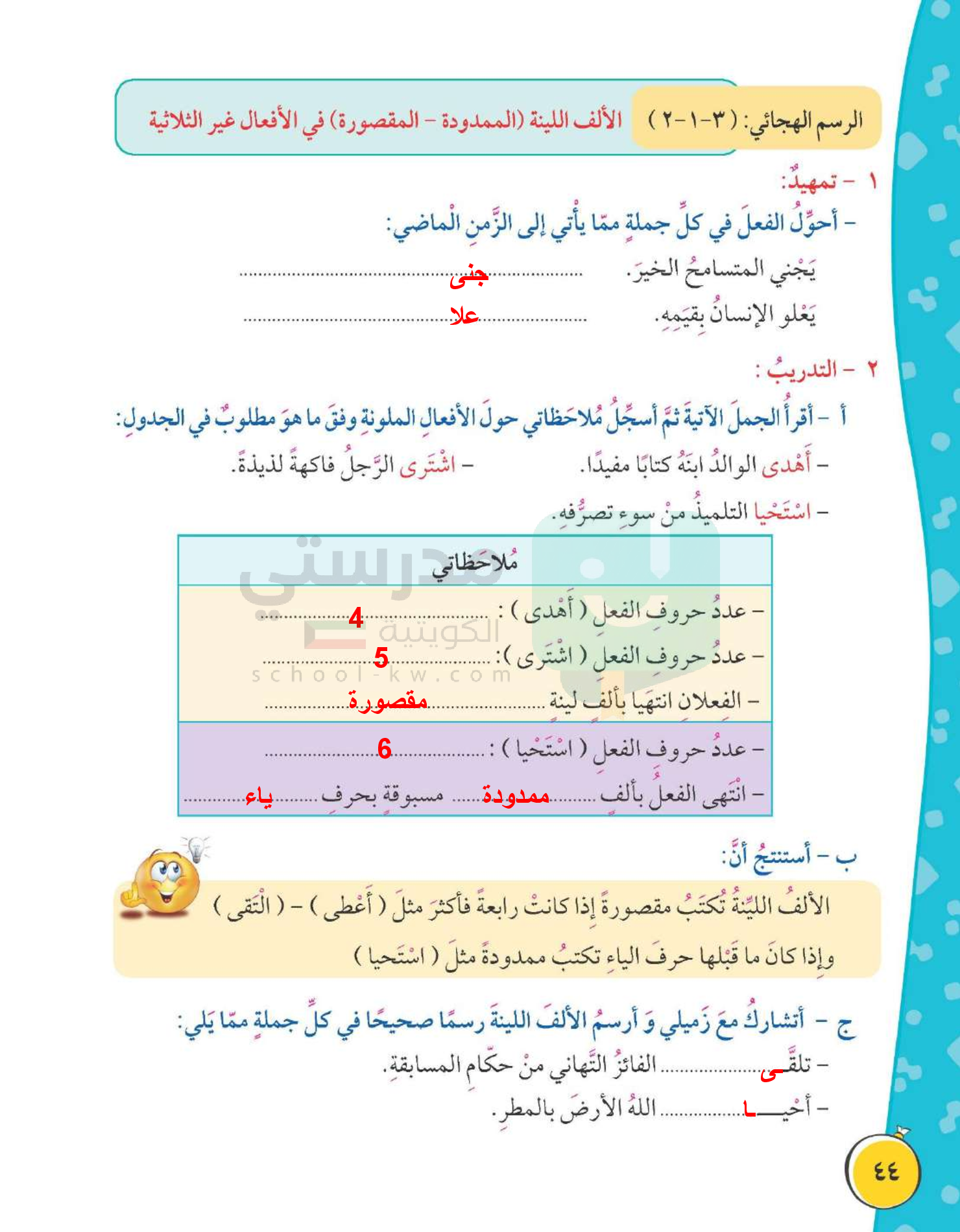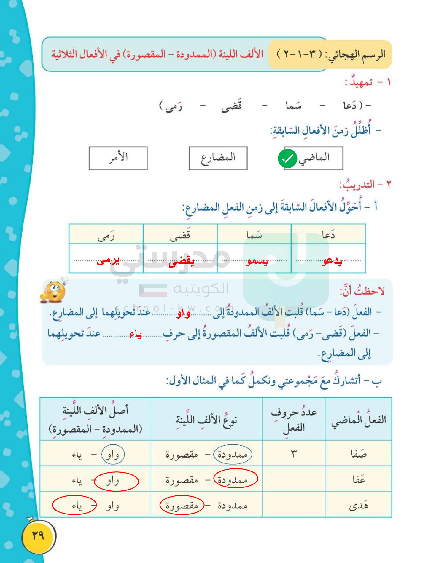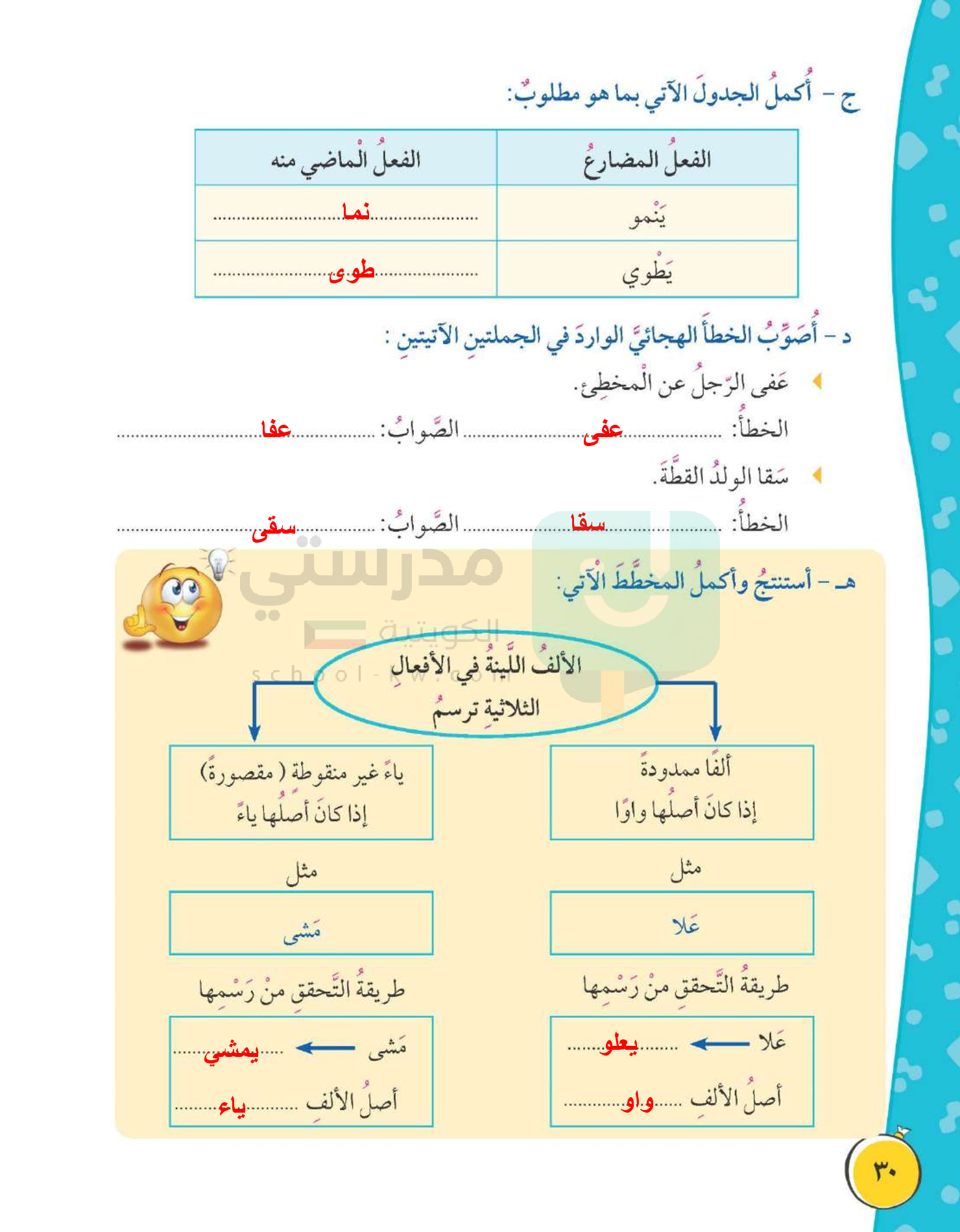 الألف اللينة (الممدودة - المقصورة) في الأفعال الثلاثية
