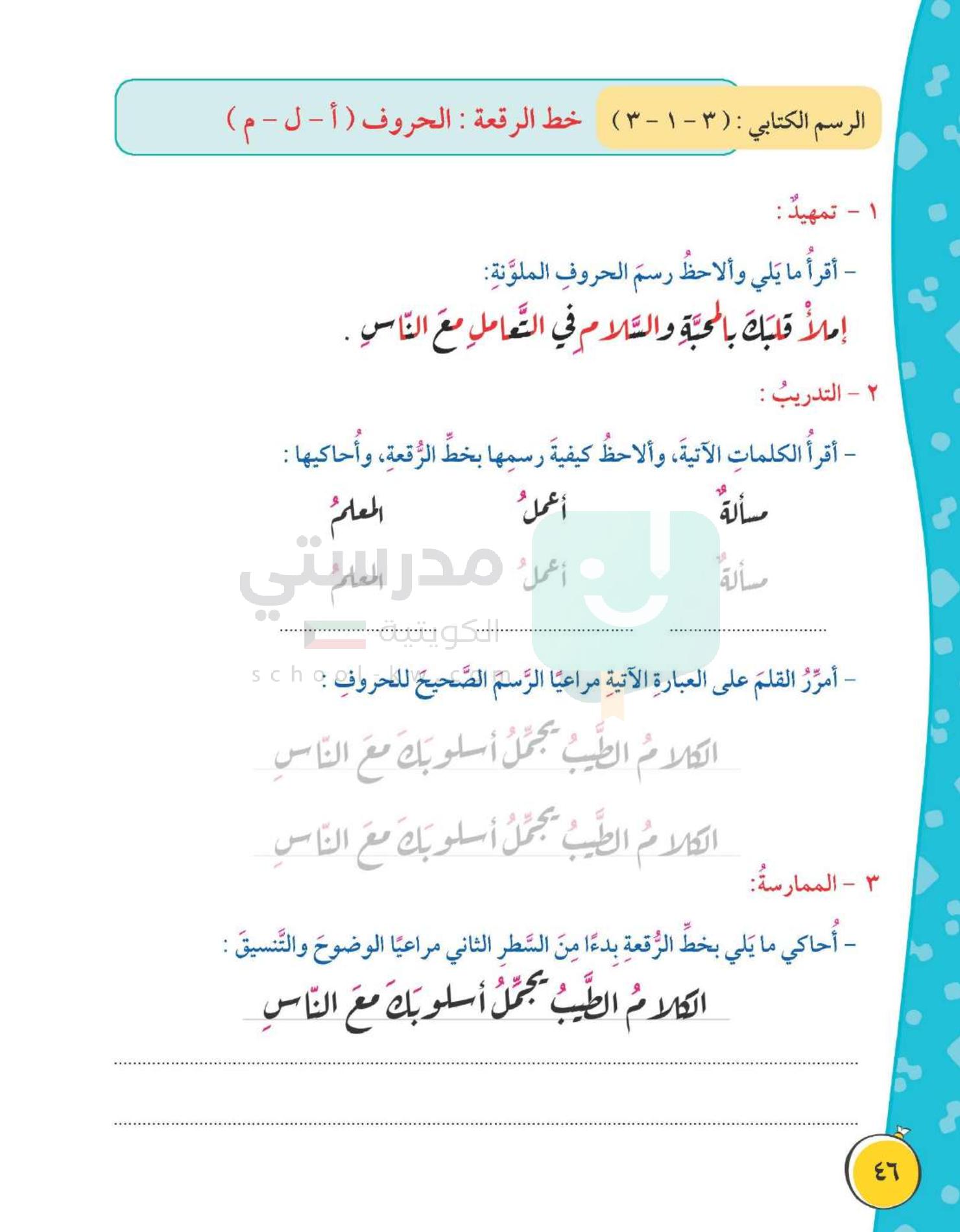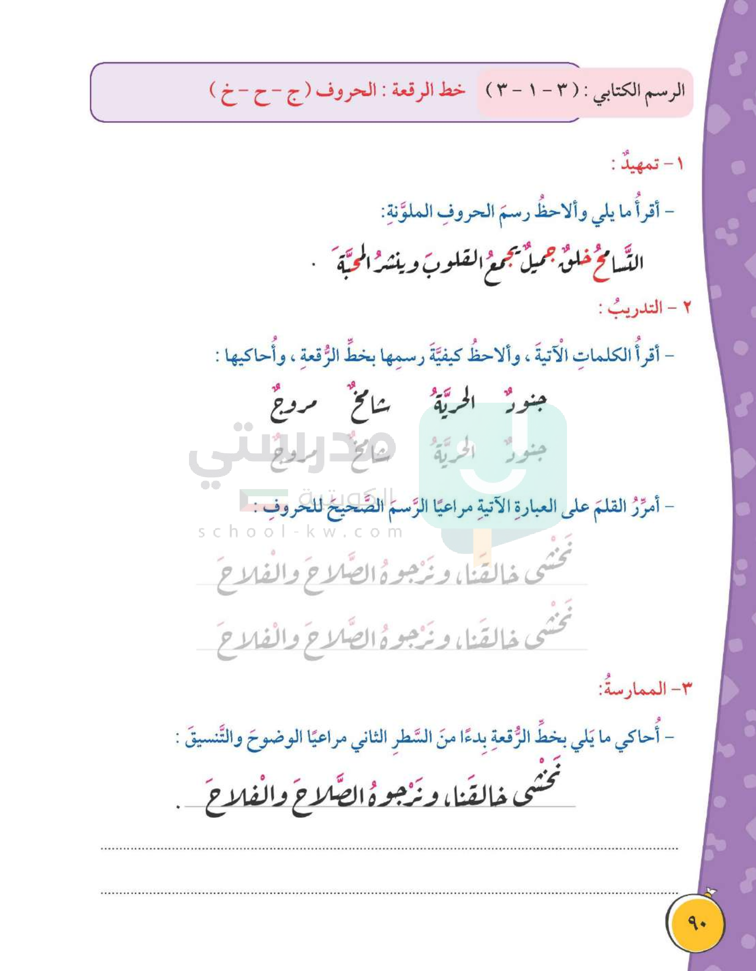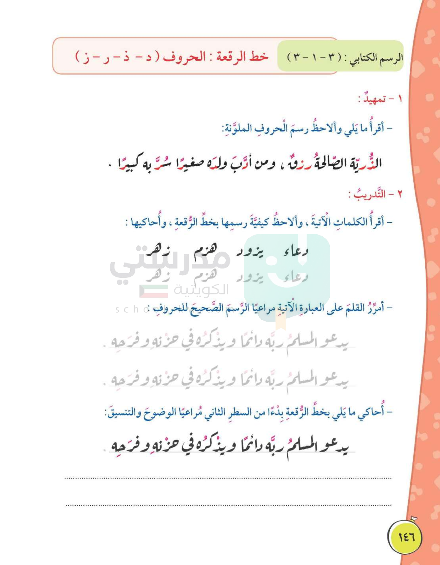 خط الرقعة: الحروف (د - ذ- ر - ز)